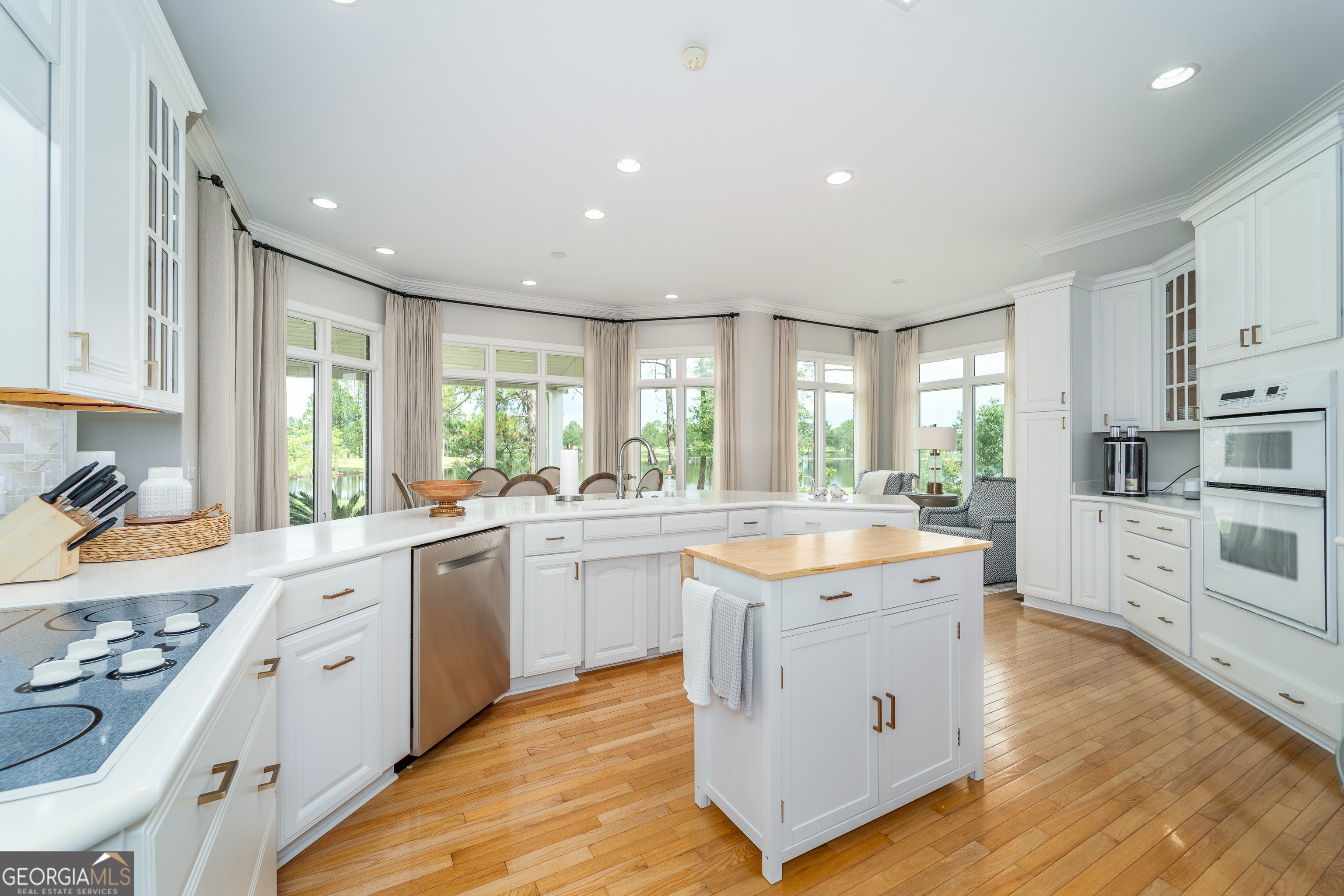 Experience luxury living in this architect-customized Southern Living floor plan with breathtaking lake views. This 3BR, 3BA masterpiece boasts real hardwood floors, Corian countertops, custom Smith Design drapes, and elegant living spaces built for entertaining. The primary suite is pure indulgence with a multi-function shower, jetted tub, and double walk-in closets. Each bedroom offers its own private bath for ultimate comfort. Work from home in the private office, enjoy the attached 2-car garage plus heated/cooled garage perfect for extra parking, a workshop, or hobby space, and envision endless possibilities in the 350 sq ft unfinished bonus room. A Generac backup generator keeps you comfortable year-round. Step onto the expansive covered back porch and take in the serene lake views-perfect for morning coffee or sunset gatherings. Every detail is crafted to impress-schedule your private tour today before this rare gem is gone!