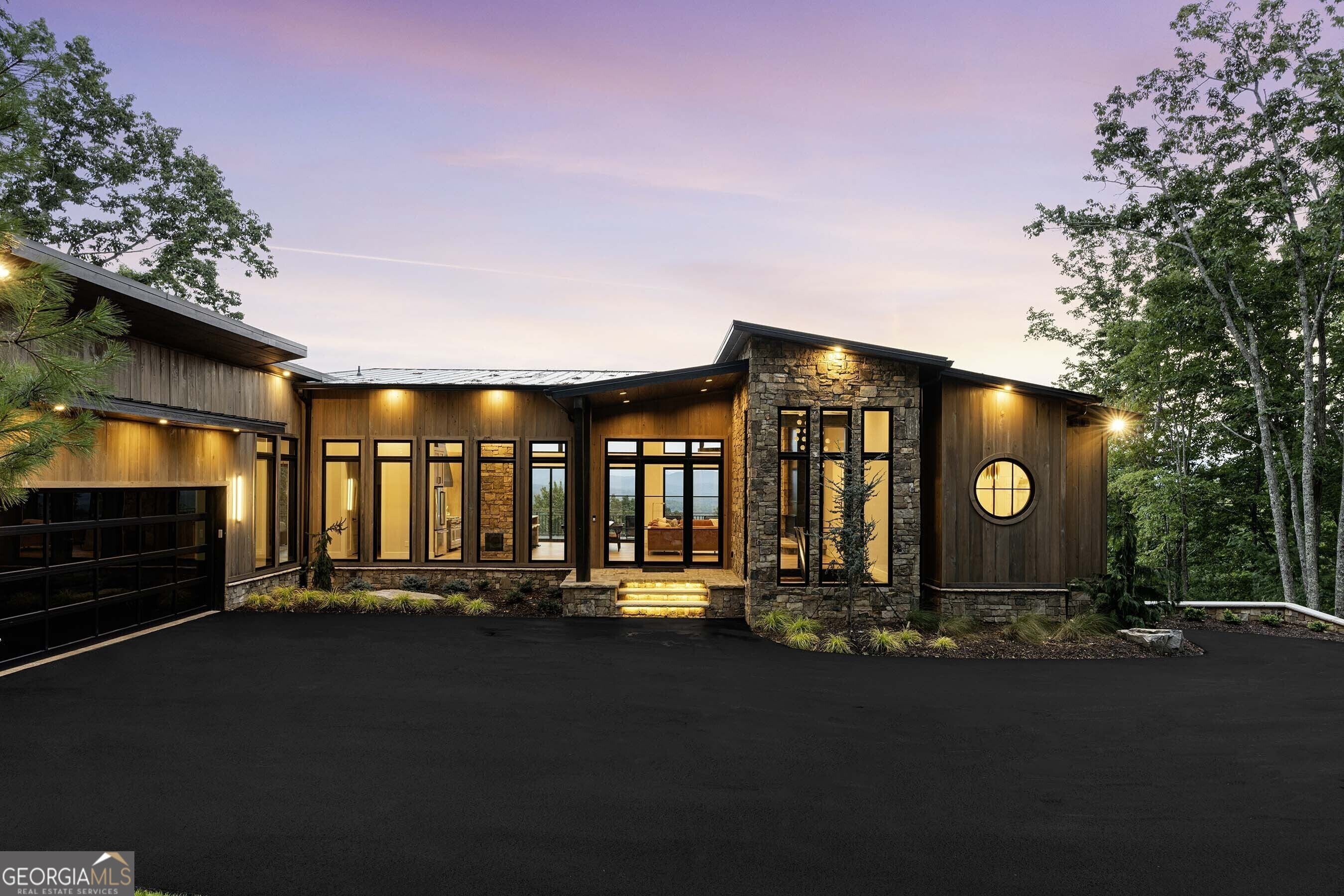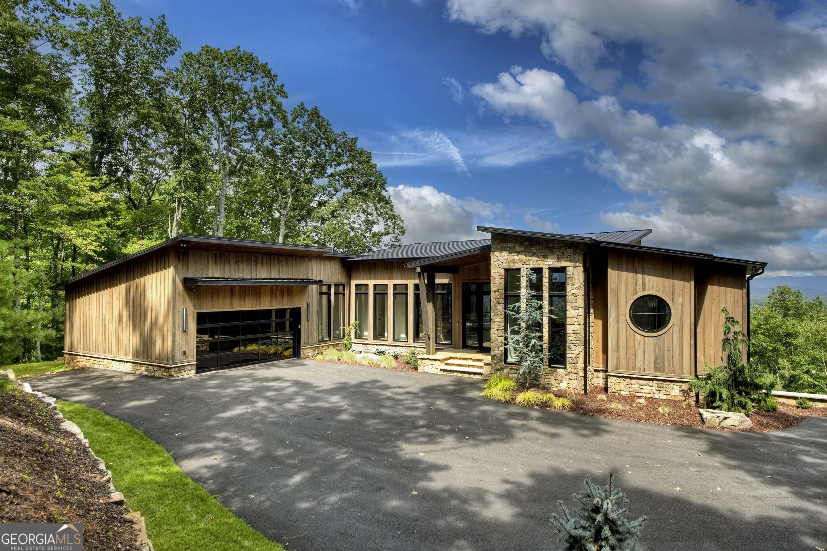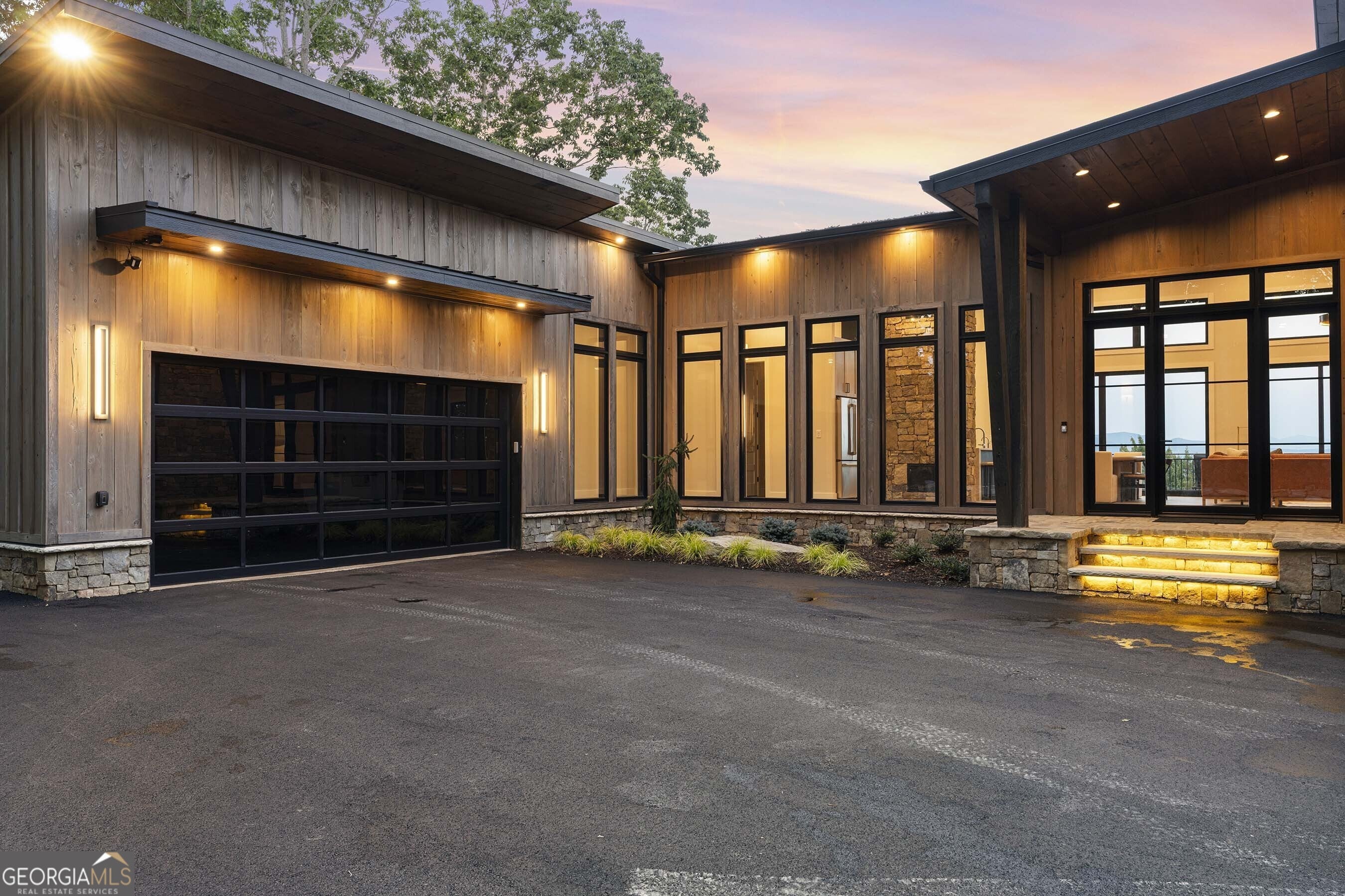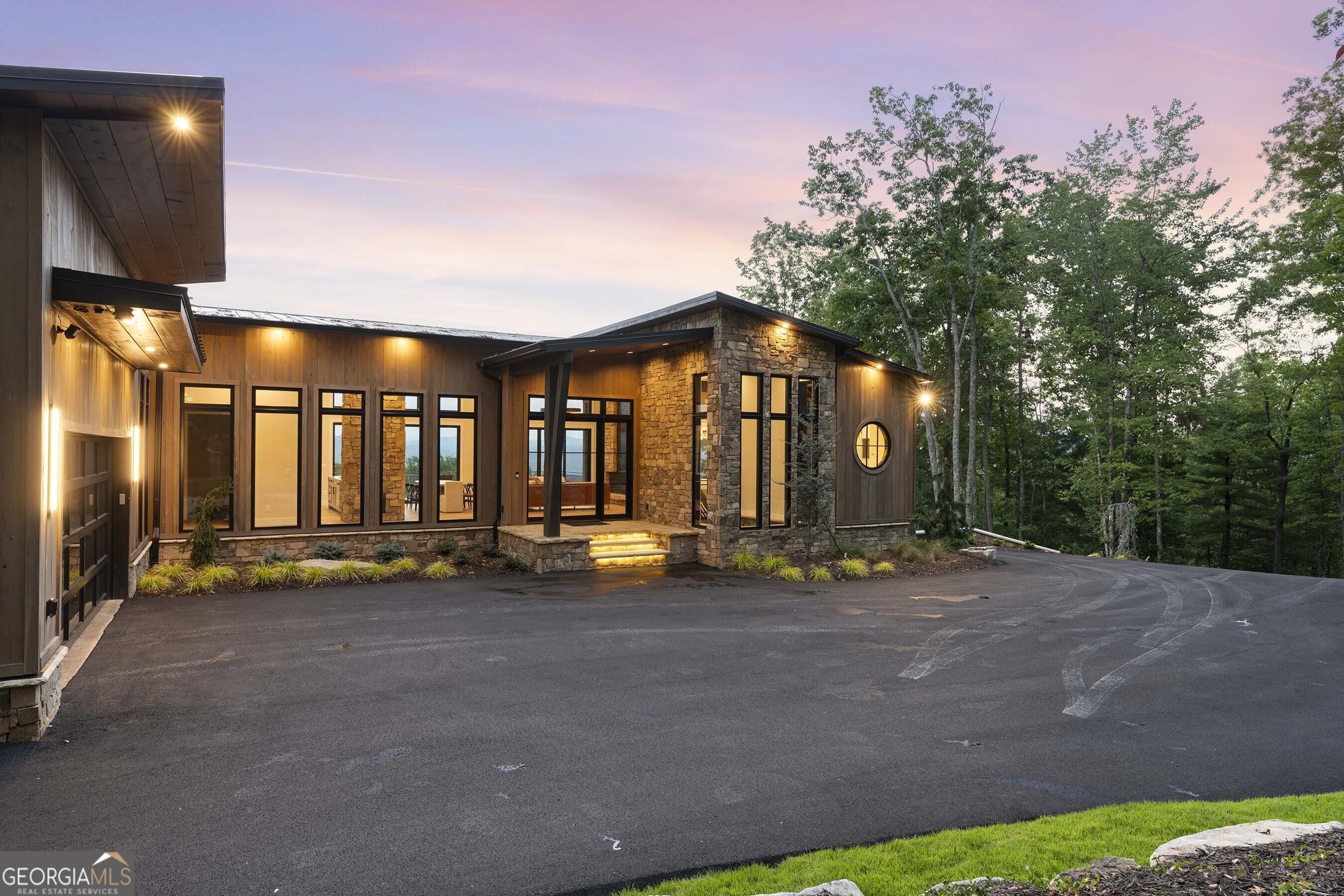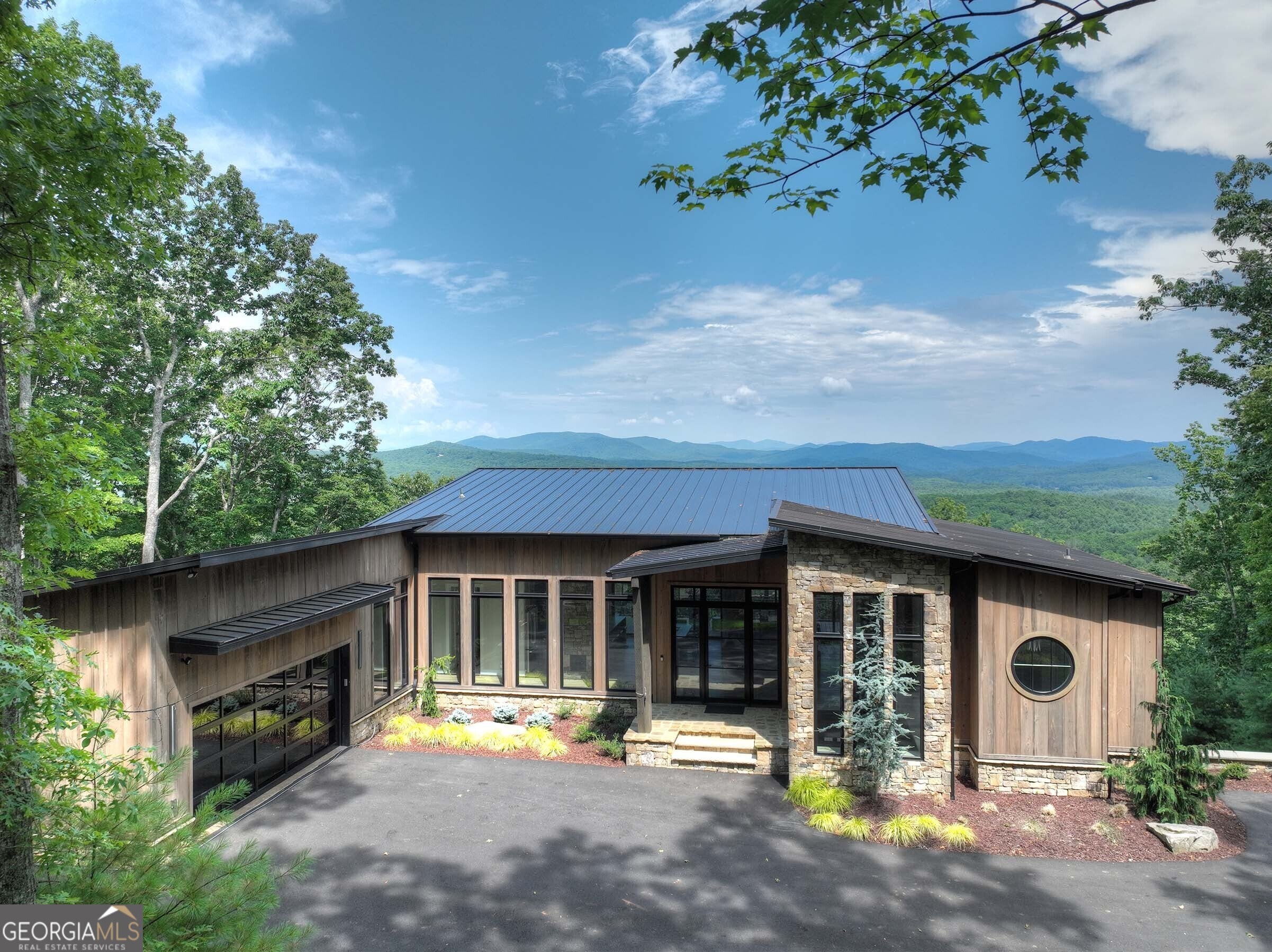 Seamlessly blending contemporary elegance with the timeless rustic warmth of a true mountain chalet, The Lodge at Little Creek Overlook beckons for a redefined luxury mountain lifestyle one of its kind. Tennessee field stone, cypress wood siding and rolled steel blend harmoniously with walls of glass as you're greeted with the front facade of the home. Gaze through the front door and see through the home and out towards the layered mountain views and panoramic scenery atop the mountain. Backing up to acres of USNF land, this home is completely private and tucked away. On the interior, find it complete with five bedroom suites and two powder rooms. The main level is a stunning open-concept with a large living room accented by a custom masonry stone and steel fireplace. Dining and kitchen make for the perfect entertainer's home. Sliders off the living, dining and even butler's pantry from the kitchen open the outdoors and invite the mountains inside. Find the gourmet kitchen adorned with custom cabinetry and quartz countertops with waterfall edges. Home is fully equipped and stocked for the chef at heart. Main level has a large laundry room, a powder room, two primary suites, and a wing leading to the fully-finished two car garage. Main level deck is built with TREX decking and steel railings. On the terrace level, find a large den area with fireplace, full bar, three additional bedroom suites, bountiful storage and utility areas. Walk-out terrace deck is set up with a jacuzzi overlooking the lush mountain scenery. Home has been equipped with two generators, two buried propane tanks, a TESLA charger, and sold fully furnished! Located in the highly sought-after Aska Adventure Area and minutes from the Toccoa River, Lake Blue Ridge, and the best hiking and biking trails all while gated w/ all paved access. The fine details of this home are at length -- reach out for more information. Discover the contemporary mountain lifestyle today!