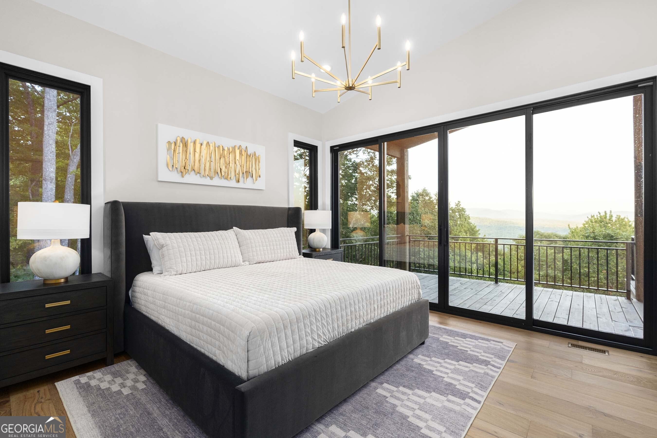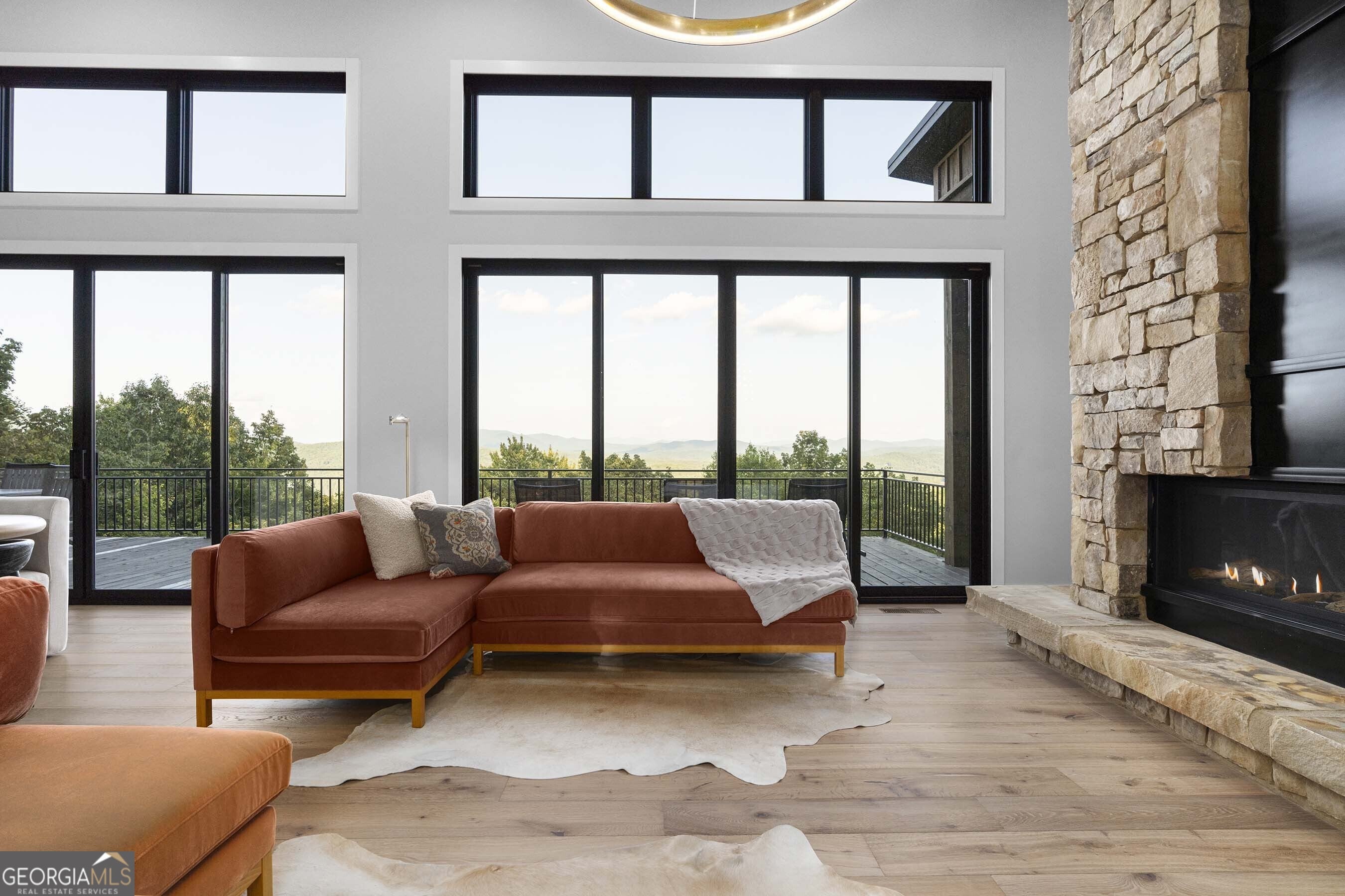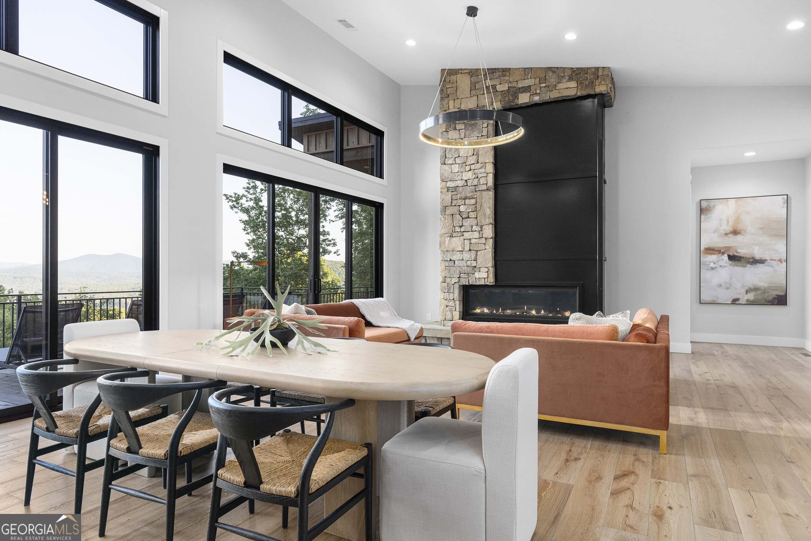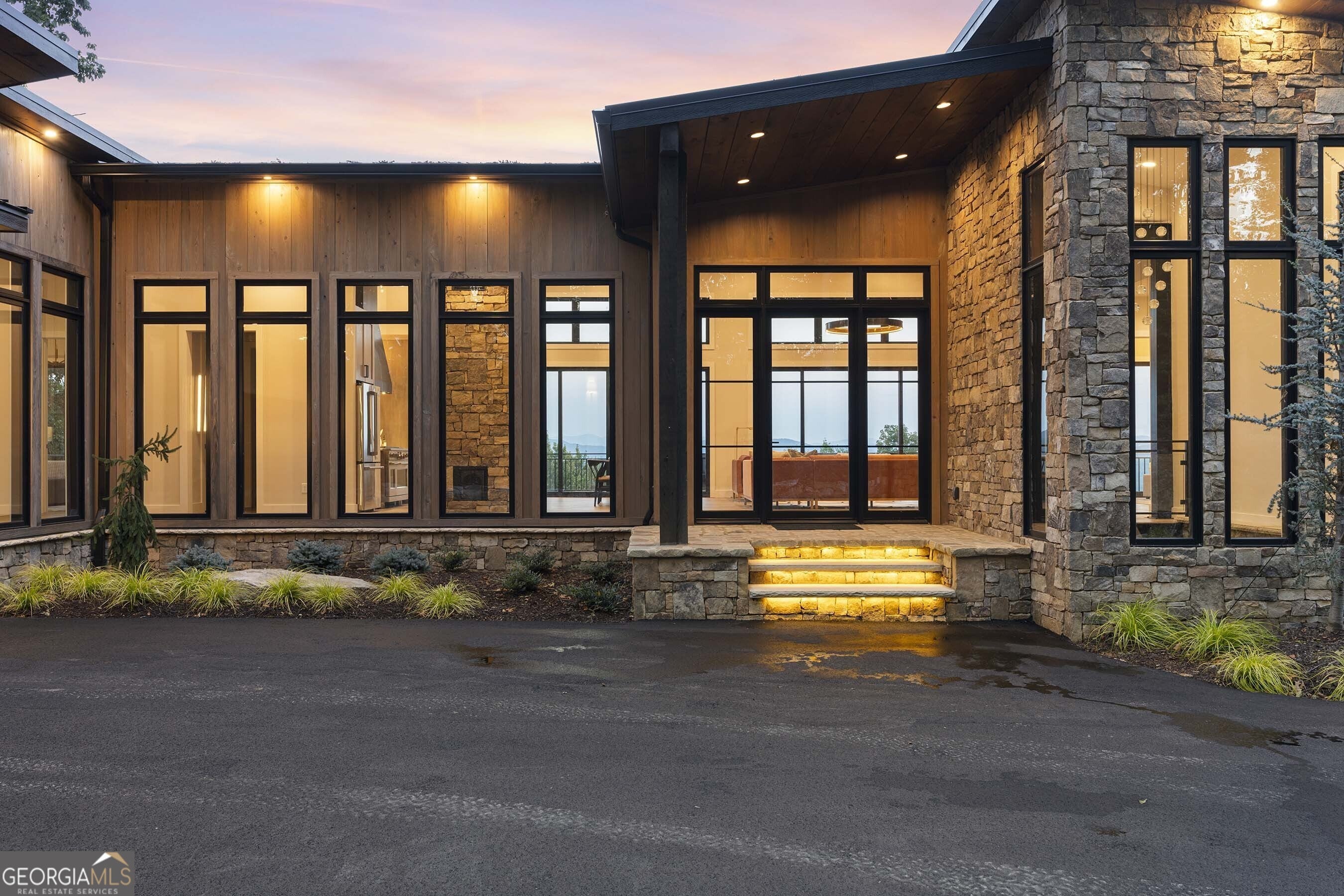 Seamlessly blending contemporary elegance with the timeless rustic warmth of a true mountain chalet, The Lodge at Little Creek Overlook beckons for a redefined luxury mountain lifestyle one of its kind. Tennessee field stone, cypress wood siding and rolled steel blend harmoniously with walls of glass as you're greeted with the front facade of the home. Gaze through the front door and see through the home and out towards the layered mountain views and panoramic scenery atop the mountain. Backing up to acres of USNF land, this home is completely private and tucked away. On the interior, find it complete with five bedroom suites and two powder rooms. The main level is a stunning open-concept with a large living room accented by a custom masonry stone and steel fireplace. Dining and kitchen make for the perfect entertainer's home. Sliders off the living, dining and even butler's pantry from the kitchen open the outdoors and invite the mountains inside. Find the gourmet kitchen adorned with custom cabinetry and quartz countertops with waterfall edges. Home is fully equipped and stocked for the chef at heart. Main level has a large laundry room, a powder room, two primary suites, and a wing leading to the fully-finished two car garage. Main level deck is built with TREX decking and steel railings. On the terrace level, find a large den area with fireplace, full bar, three additional bedroom suites, bountiful storage and utility areas. Walk-out terrace deck is set up with a jacuzzi overlooking the lush mountain scenery. Home has been equipped with two generators, two buried propane tanks, a TESLA charger, and sold fully furnished! Located in the highly sought-after Aska Adventure Area and minutes from the Toccoa River, Lake Blue Ridge, and the best hiking and biking trails all while gated w/ all paved access. The fine details of this home are at length -- reach out for more information. Discover the contemporary mountain lifestyle today!