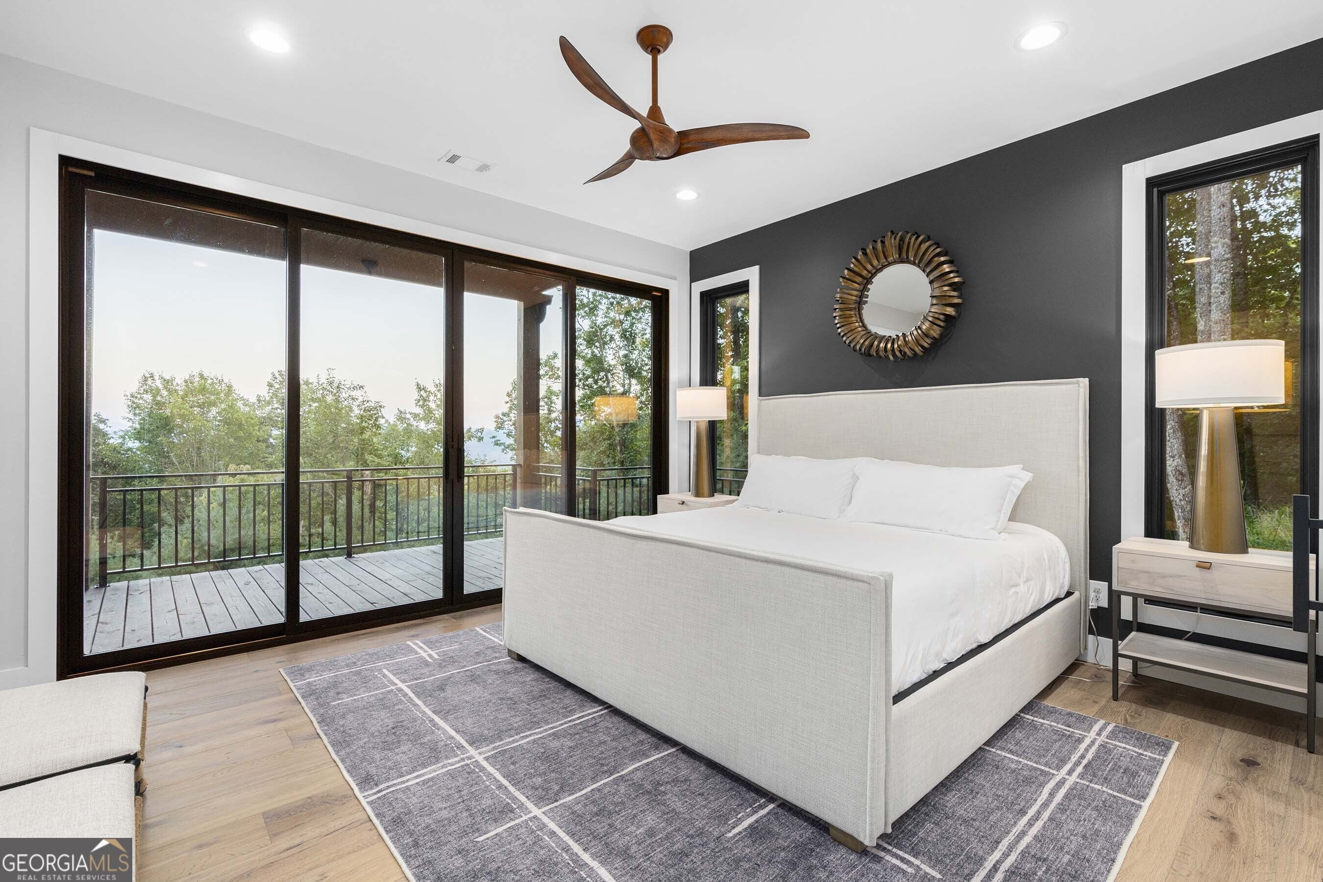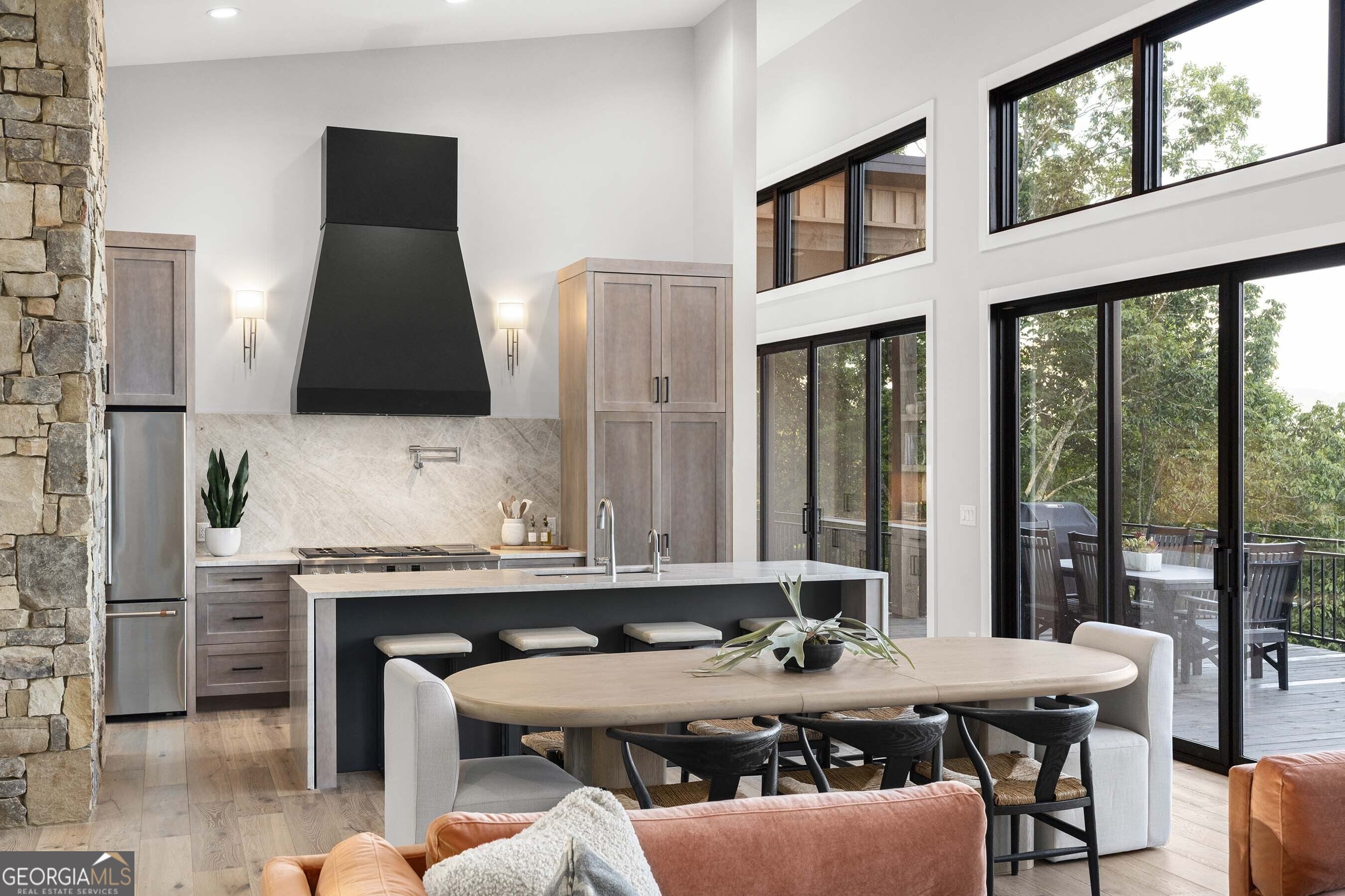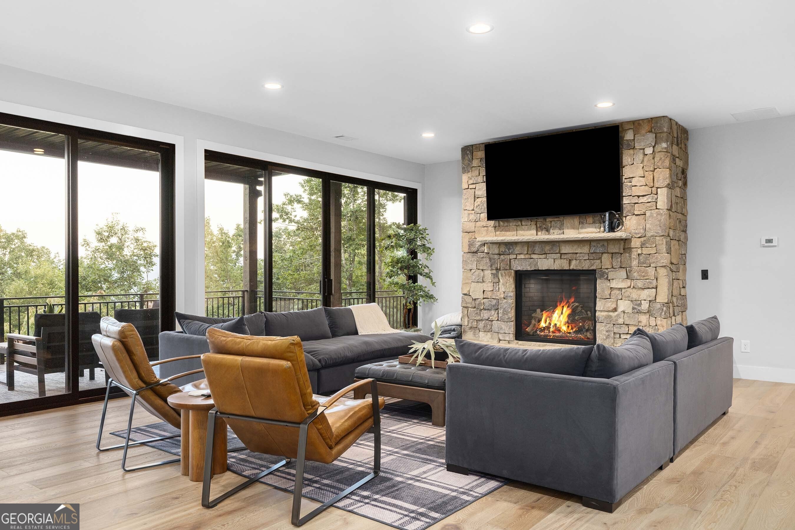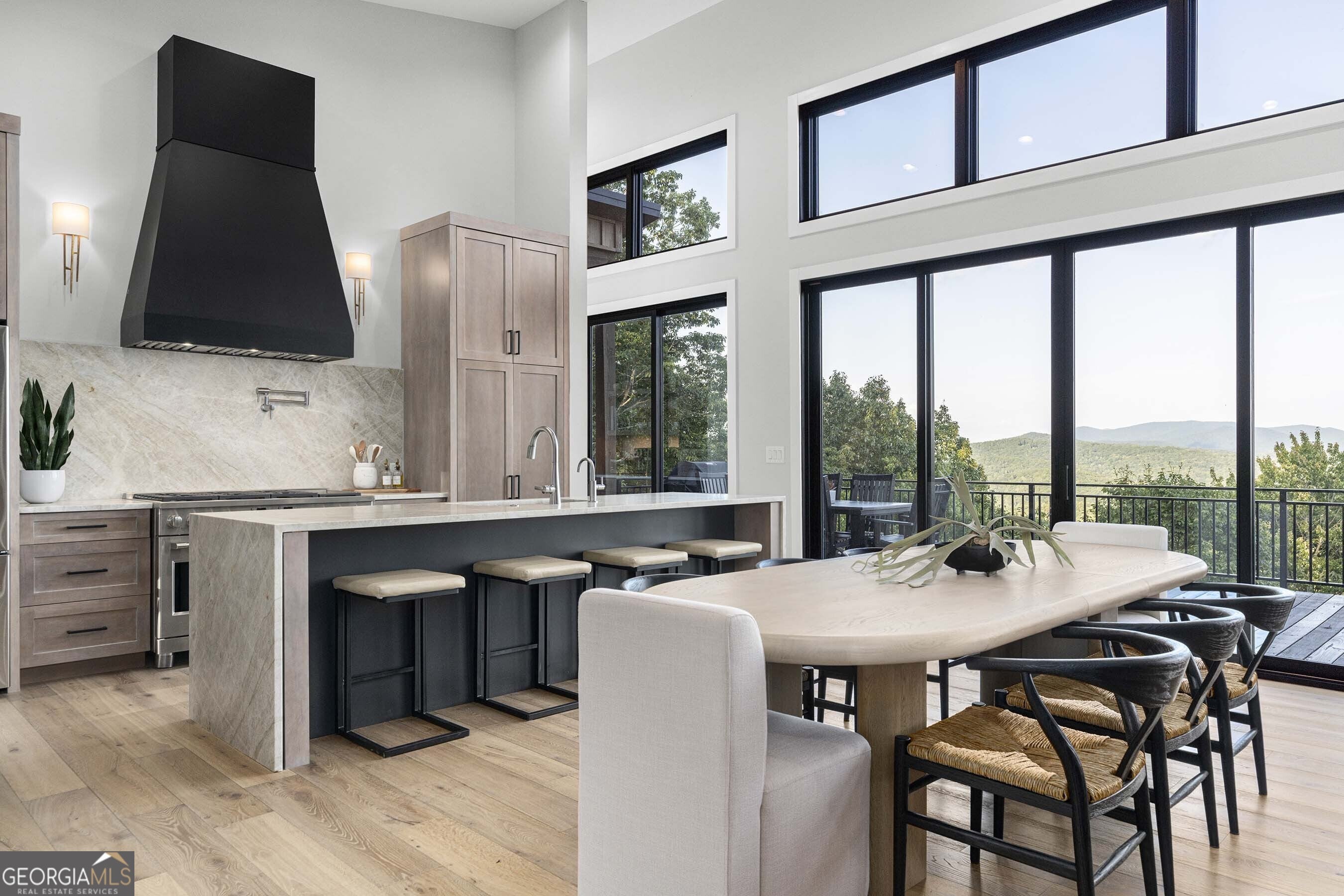 Seamlessly blending contemporary elegance with the timeless rustic warmth of a true mountain chalet, The Lodge at Little Creek Overlook beckons for a redefined luxury mountain lifestyle one of its kind. Tennessee field stone, cypress wood siding and rolled steel blend harmoniously with walls of glass as you're greeted with the front facade of the home. Gaze through the front door and see through the home and out towards the layered mountain views and panoramic scenery atop the mountain. Backing up to acres of USNF land, this home is completely private and tucked away. On the interior, find it complete with five bedroom suites and two powder rooms. The main level is a stunning open-concept with a large living room accented by a custom masonry stone and steel fireplace. Dining and kitchen make for the perfect entertainer's home. Sliders off the living, dining and even butler's pantry from the kitchen open the outdoors and invite the mountains inside. Find the gourmet kitchen adorned with custom cabinetry and quartz countertops with waterfall edges. Home is fully equipped and stocked for the chef at heart. Main level has a large laundry room, a powder room, two primary suites, and a wing leading to the fully-finished two car garage. Main level deck is built with TREX decking and steel railings. On the terrace level, find a large den area with fireplace, full bar, three additional bedroom suites, bountiful storage and utility areas. Walk-out terrace deck is set up with a jacuzzi overlooking the lush mountain scenery. Home has been equipped with two generators, two buried propane tanks, a TESLA charger, and sold fully furnished! Located in the highly sought-after Aska Adventure Area and minutes from the Toccoa River, Lake Blue Ridge, and the best hiking and biking trails all while gated w/ all paved access. The fine details of this home are at length -- reach out for more information. Discover the contemporary mountain lifestyle today!