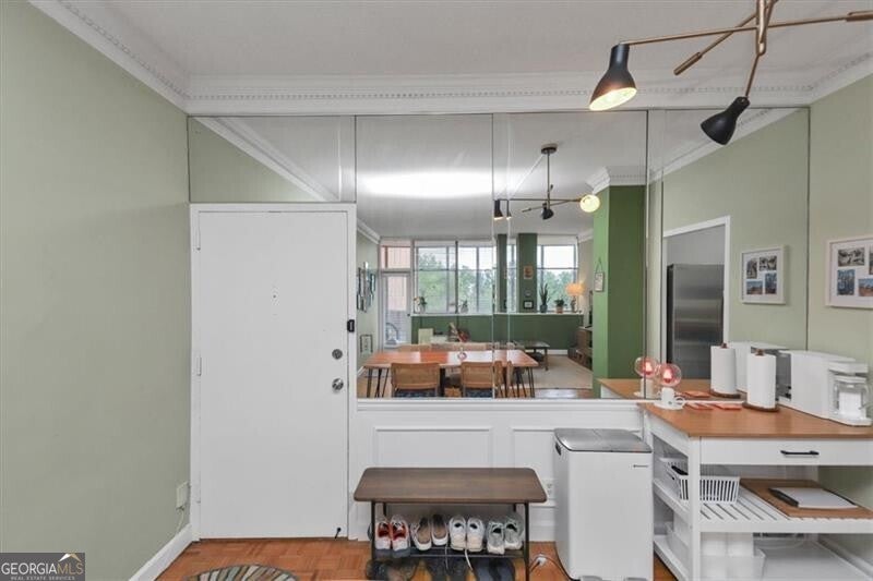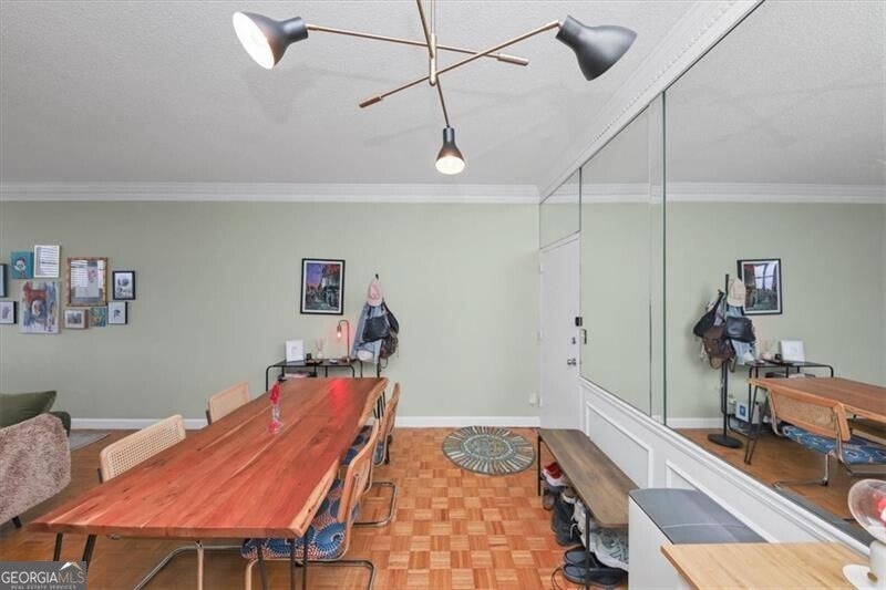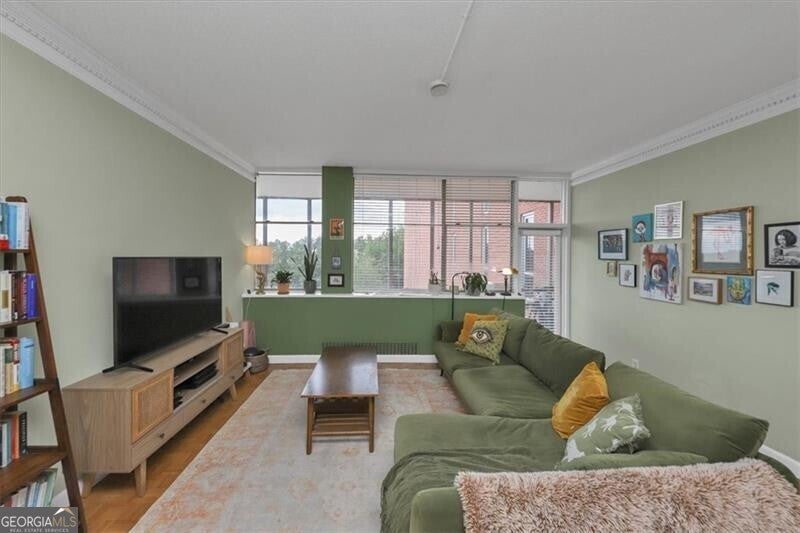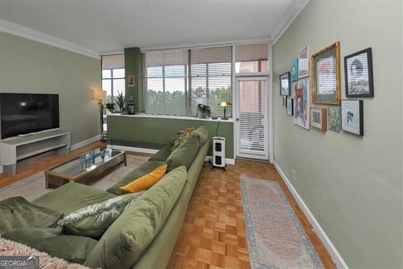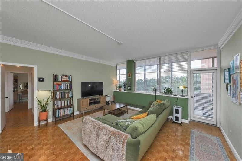 UTILITIES INCLUDED! Walk to all Buckhead has to offer at this incredible price point. This oversized 2 bedroom unit is tucked away on private cul-de-sac in the center of Buckhead and is not to be missed! Tall ceilings with parquet flooring enhances the European Styling and gives you Parisian vibes. This unit has tree top view of northwest Buckhead with tons of windows for great light enhancing the spacious screened porch that runs the full length of the condo. HOA fee is basically all inclusive and includes all utilities (power, heat & air, water, trash, sewer) & this is a no pet building. Comes with a dedicated dry storage space on the same floor as the unit. Additional fee for possible 1 designated gated garage parking in a parking deck or extra parking may be available for additional fee. Building has daily on site management, a maintenance team, library conference room, gym, pool, grilling area garden area with gazebo and special secure pedestrian access to Saint Regis Drive, Whole Foods and all the dinning or night life options Buckhead offers.