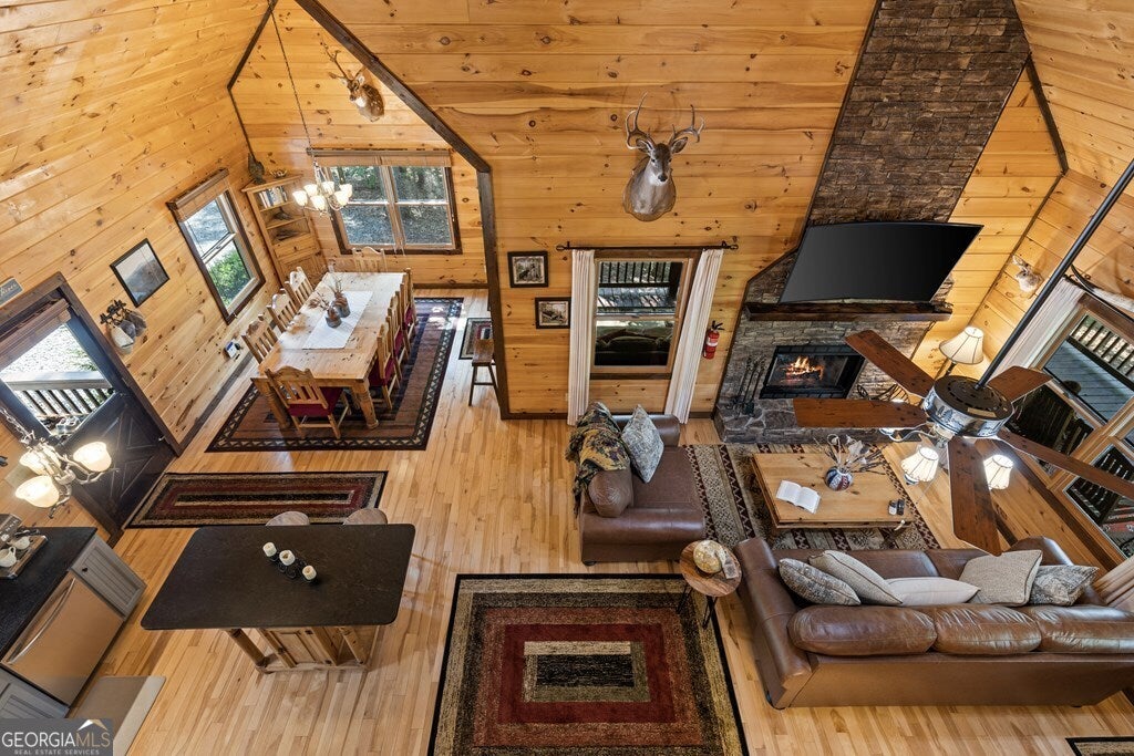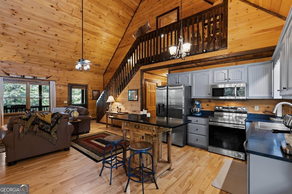 Tucked away in the heart of Blue Ridge's natural beauty, 4 Shalom offers a private mountain retreat in a sought-after gated community. Set on a serene lot with paved roads from start to finish-perfect for motorcycles and mountain cruisers-this home blends comfort, convenience, and adventure. Inside, you'll find three bedrooms thoughtfully arranged on separate levels, giving everyone their own private space. The kitchen has been updated with striking new granite countertops and freshly painted cabinets, while all major appliances remain under warranty until spring 2026-adding confidence and value for the next owner. Downstairs, new plush carpeting creates a warm, inviting feel in the game room and bedroom, ideal for cozy nights or family fun. Practical features include a small garage for motorcycles, ATVs, or mountain toys, plus an RV parking pad with accessible power. Offered fully furnished, this home is truly turn-key, making it an excellent short-term rental investment or personal mountain escape. Beyond the home itself, residents enjoy a private community common area along the sparkling Toccoa River-perfect for fishing, tubing, or simply relaxing by the water. And just minutes away, the charming town of Blue Ridge awaits with its award-winning wineries, craft breweries, and gourmet restaurants, offering a perfect balance of rustic adventure and refined indulgence. Whether you're seeking a private getaway, an income-producing property, or a home base for endless North Georgia adventures, 4 Shalom delivers a lifestyle where mountain living meets modern comfort.