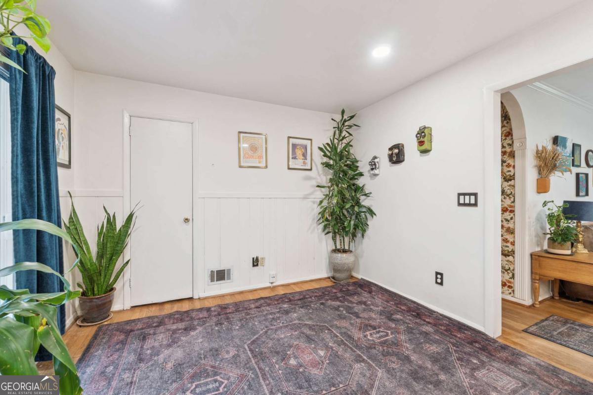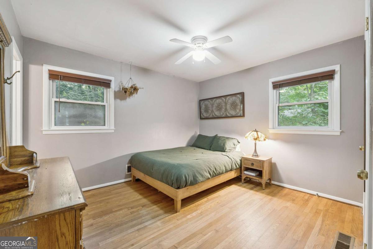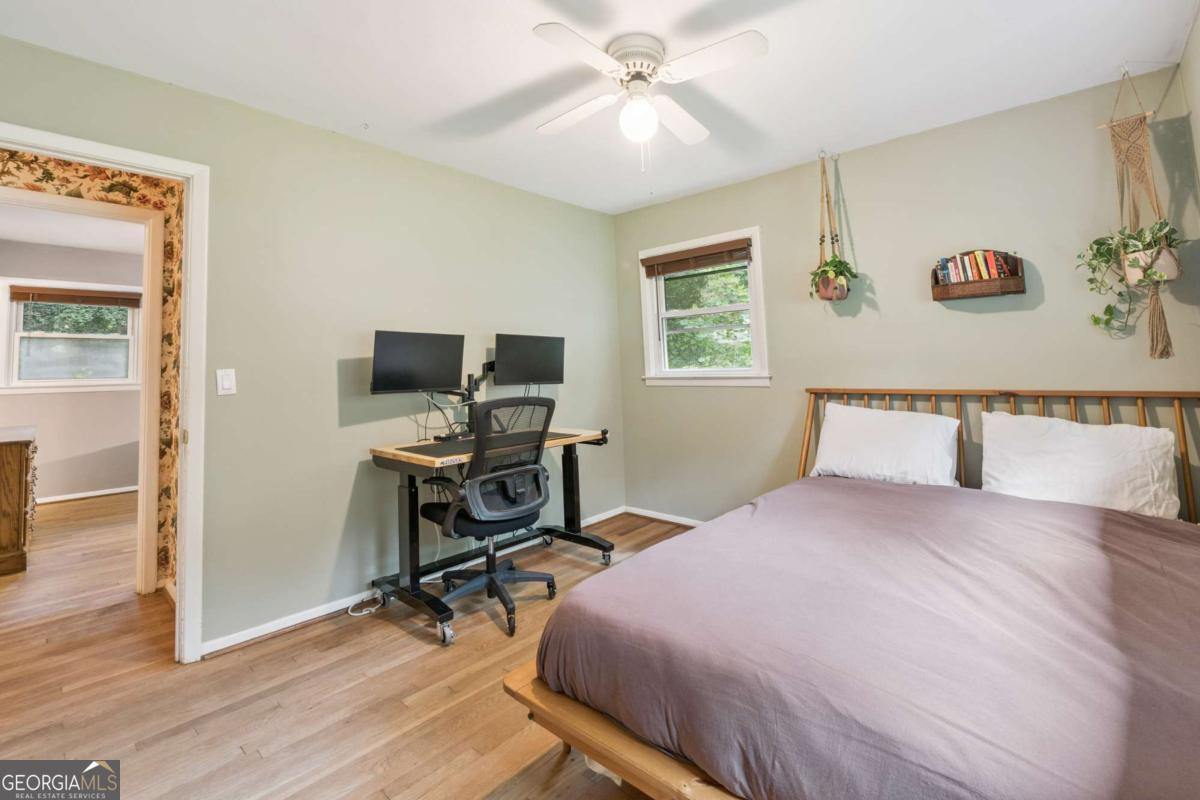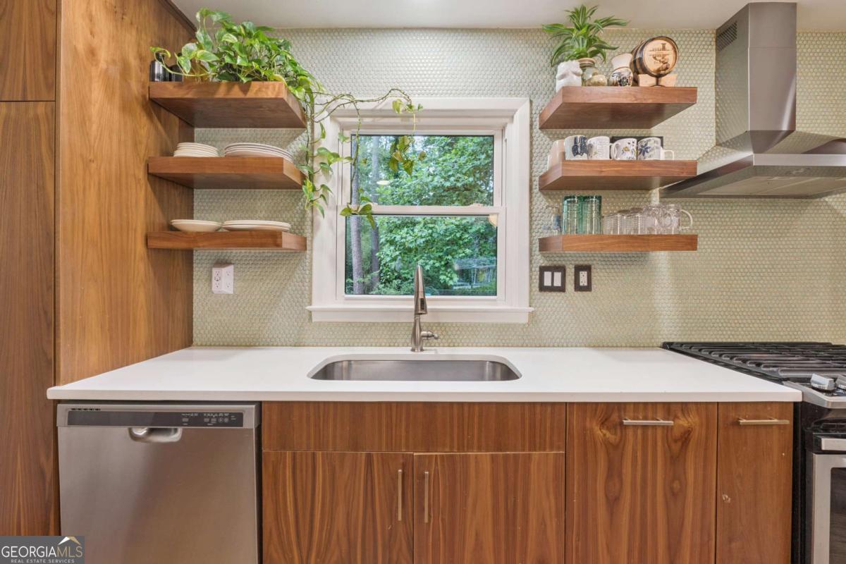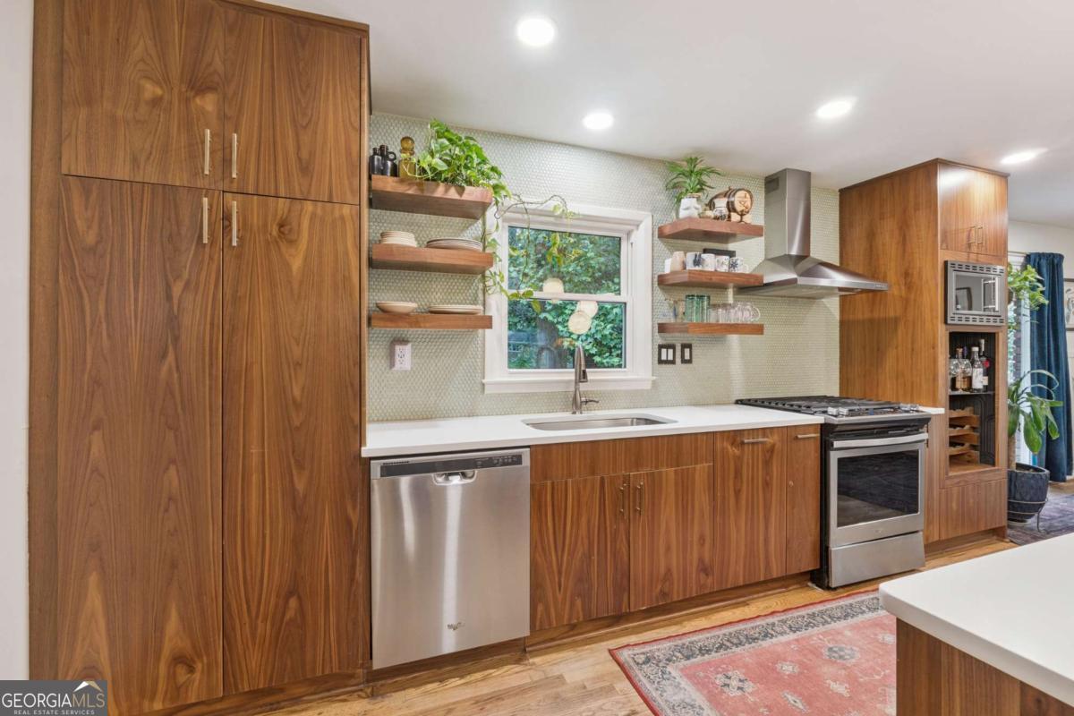 From the moment you pull up to this stunning mid-century modern home, you'll be captivated by its undeniable curb appeal. Nestled on a spacious and level half-acre lot, the lush green lawn, freshly painted exterior, and new shutters make a striking first impression. Step inside and you'll find a home that beautifully blends preserved mid-century touches with modern updates that elevate the home's timeless style. True to mid-century modern design, the owners have maintained the architectural charm while introducing thoughtful upgrades that make this home both elegant and functional. The living room, filled with light from the large floor to ceiling portrait window, flows seamlessly into a show-stopping, fully renovated kitchen - straight out of a magazine. Featuring floor-to-ceiling cabinetry, a statement aqua backsplash that runs counter to ceiling, and a massive 9-foot island, this space is perfect for both cooking enthusiasts and entertainers. The island currently doubles as a dining table, but there's also ample room to add a more traditional table in the adjacent space if desired. As you move through the home, you'll be delighted by a hallway adorned with designer House of Hackney wallpaper, bringing a whimsical, garden-inspired feel indoors. This enchanting touch hints at the botanical paradise waiting outside. Garden lovers, take note! The yard has been meticulously curated and maintained by passionate owners. From March through July, enjoy five months of continuous blooms: hundreds of towering lilies (some over 6 feet tall), vibrant purple liatris, iris, gladiolus, multiple varieties of peonies with flowers as large as dinner plates, and so much more. Spring welcomes massive azalea bushes in both front and back, while Chinese fringe trees provide year-round color and texture. In winter, the large camellia tree bursts with red blooms from December to February. And let's not forget the fruiting peach trees in the front yard-producing hundreds of peaches each season. Inside, all bedrooms have been freshly painted, and the home is accented with stylish new light fixtures and modern blinds throughout. The primary bedroom features its own private half-bath with a new vanity. Location-wise, you couldn't ask for more. You're just a 5-minute drive to vibrant downtown Chamblee, home to hip restaurants, breweries, distilleries, and boutiques. A foodie's dream, you're also minutes from the world-renowned Buford Highway culinary corridor. Enjoy walking access to Dynamo Swim Club, CDC Chamblee, and proximity to Mercer University, I-85, the highly anticipated Dresden Park upgrade, and more. Top it all off with wonderful neighbors and a peaceful, garden-like setting, and you've found a truly special home that's the best of both past and present.