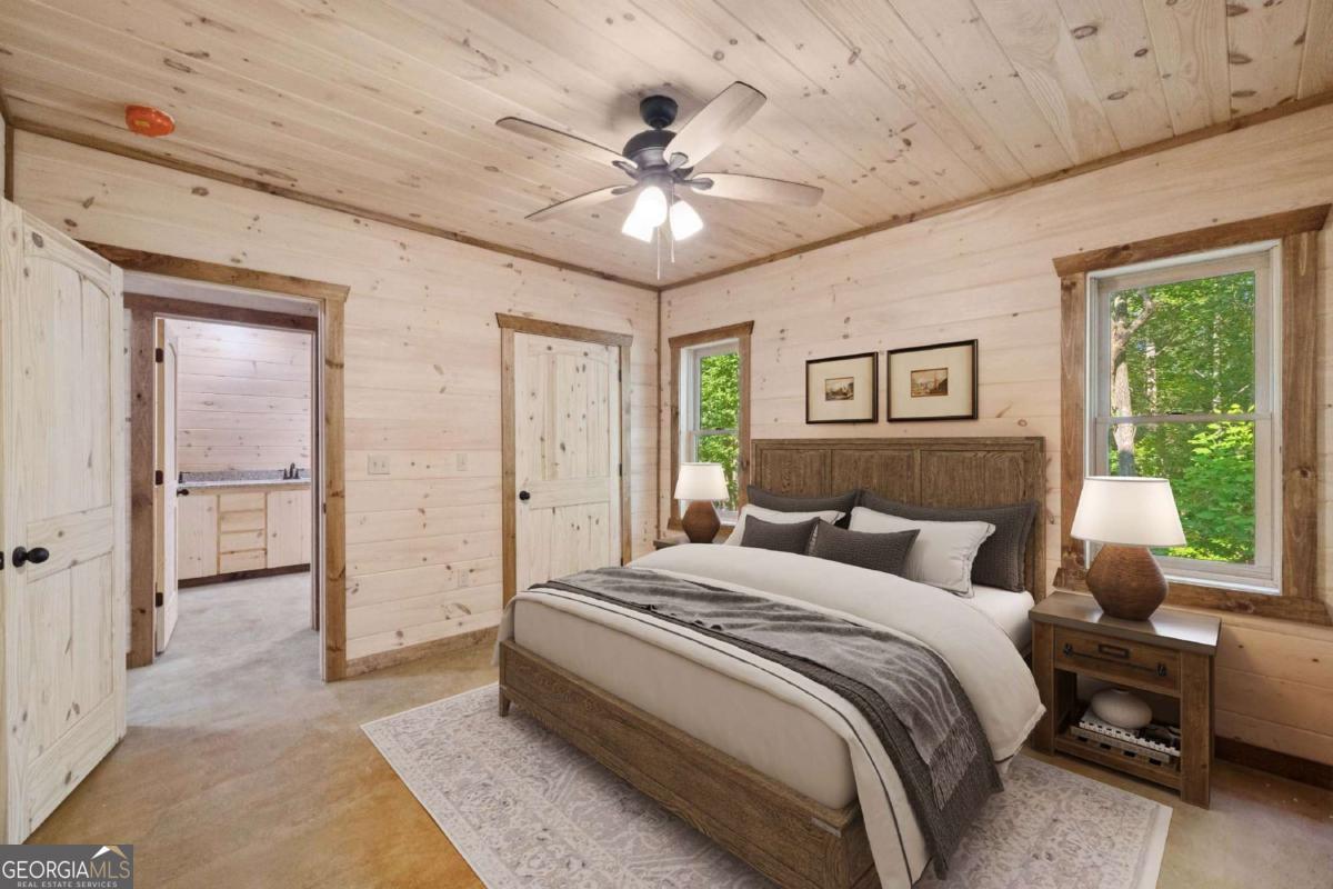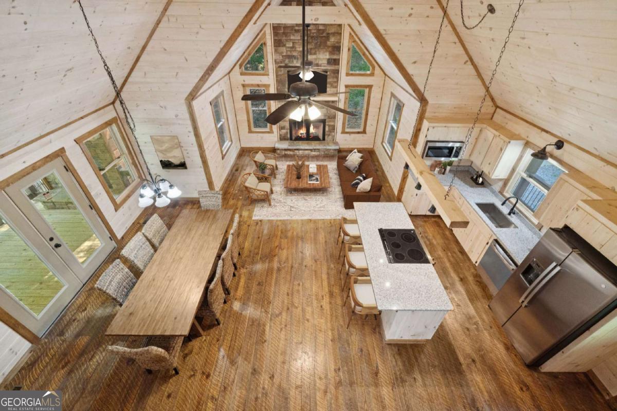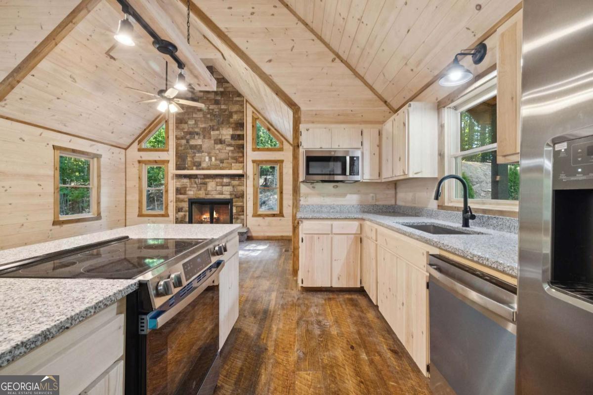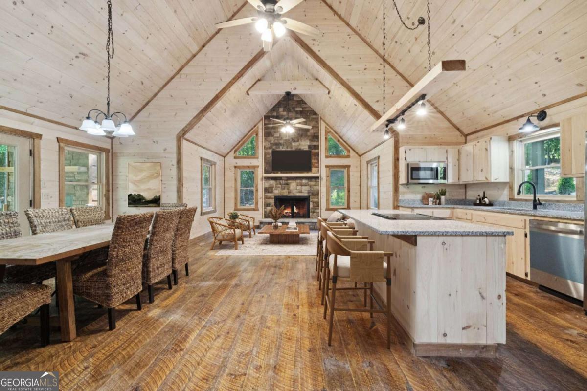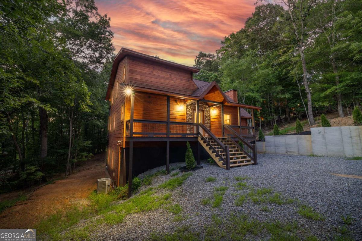 MOUNTAIN MAGIC! This brand-new Blue Ridge gem is your ticket to adventure and chill. Two plush en suites pamper with spa-like vibes-cozy bedrooms and private baths scream relaxation! The heart? A sprawling great room, amped up by the extended floor plan. Its towering stack rock fireplace crackles, framed by huge windows that pull in forest views like a nature hug. Cook up a storm in the dreamy kitchen, flaunting a massive island for snack spreads or cocktail showdowns. Glossy granite counters shine, paired with custom cabinets hiding all your gear. Rough sawn wood floors add rustic charm underfoot, while a main-floor half bath and tucked-away laundry keep life easy-peasy. Outside, covered porches wrap you in cozy vibes-perfect for morning coffee or epic BBQs. The exterior fireplace sparks epic nights under twinkling stars, with mountain breezes whispering secrets. The finished terrace level is your fun zone! A full bath keeps it comfy, while the game/media room rocks a cozy fireplace and swanky wet bar for movie marathons or late-night dance-offs. Best part? You are minutes from downtown Blue Ridge's buzz-quirky shops, tasty eats, and trails galore. This isn't just a house; it's your mountain memory maker!