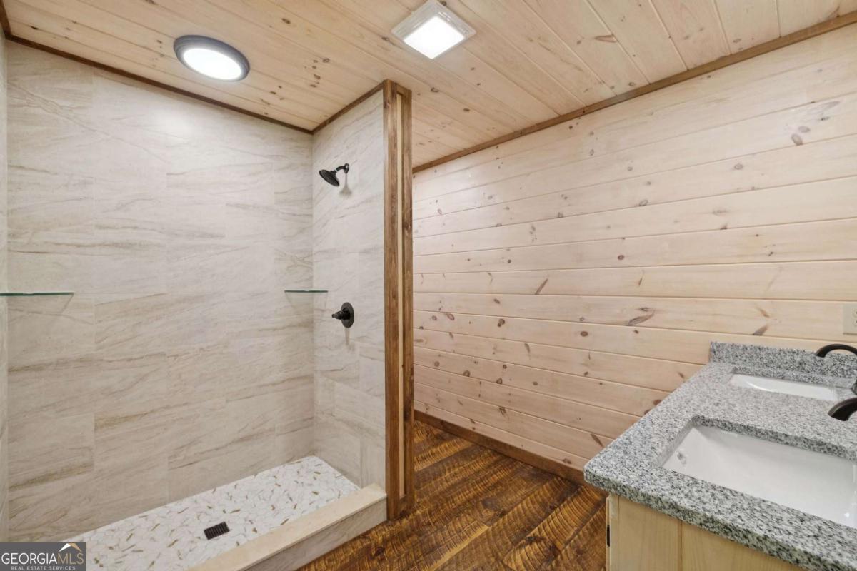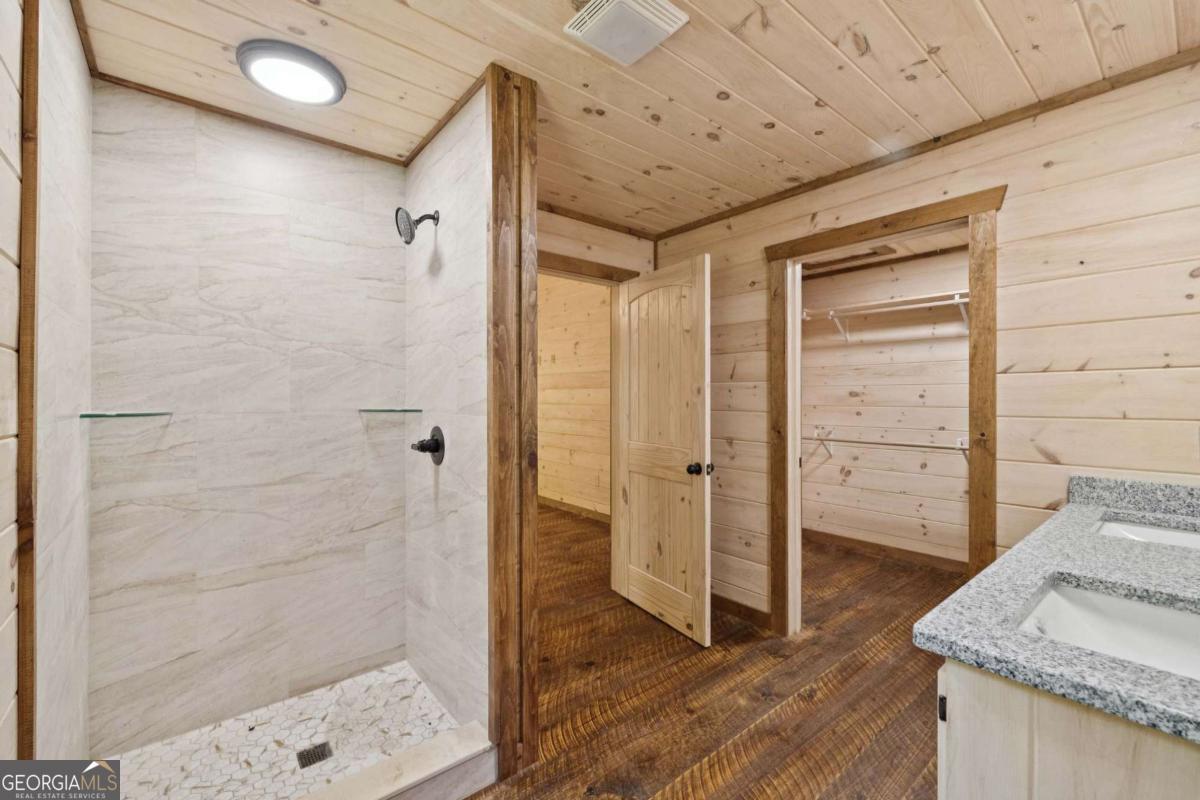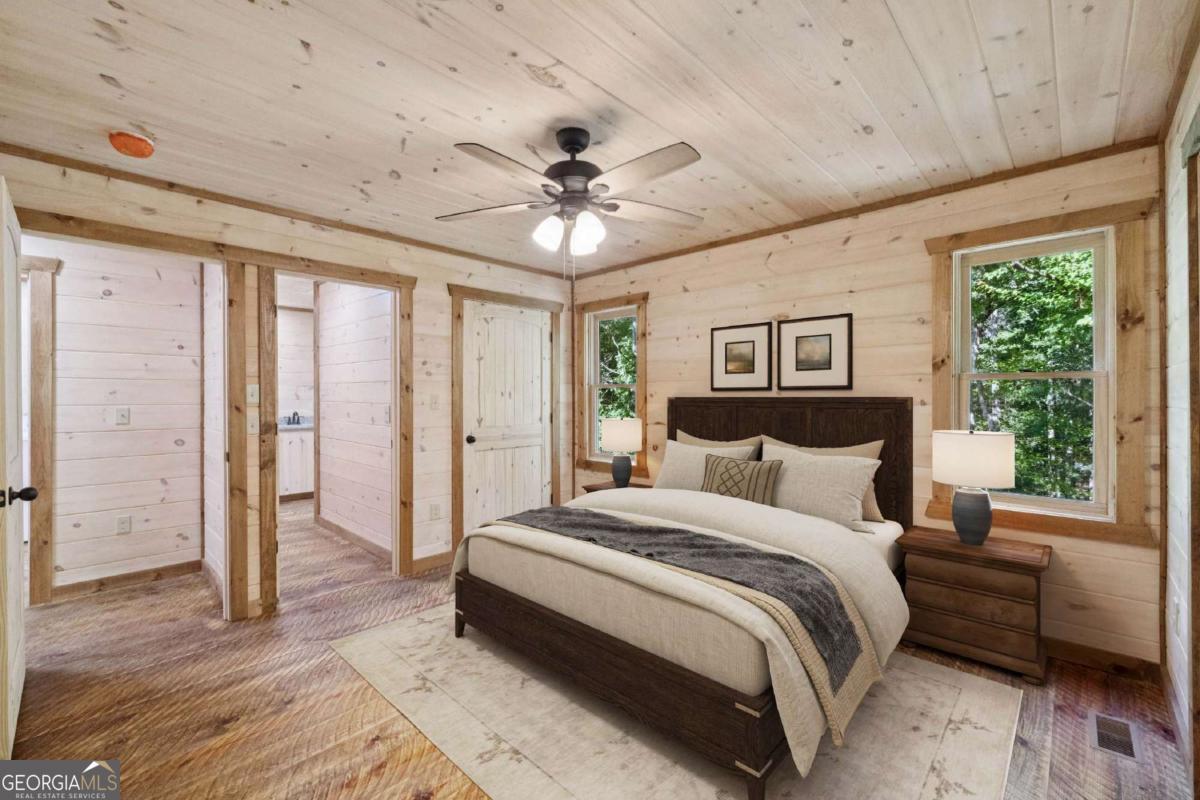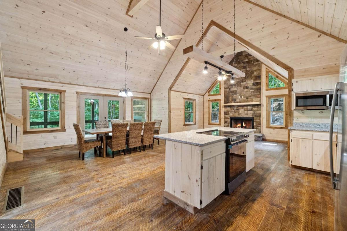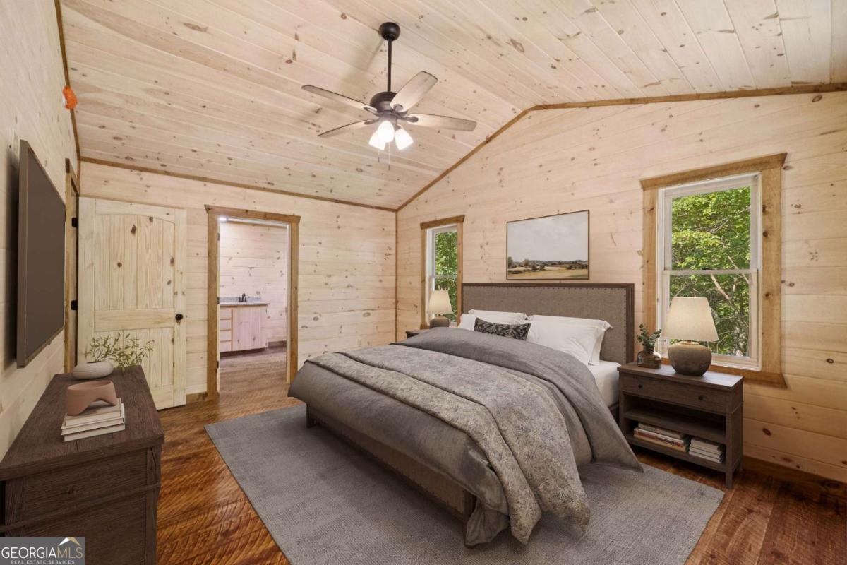 MOUNTAIN MAGIC! This brand-new Blue Ridge gem is your ticket to adventure and chill. Two plush en suites pamper with spa-like vibes-cozy bedrooms and private baths scream relaxation! The heart? A sprawling great room, amped up by the extended floor plan. Its towering stack rock fireplace crackles, framed by huge windows that pull in forest views like a nature hug. Cook up a storm in the dreamy kitchen, flaunting a massive island for snack spreads or cocktail showdowns. Glossy granite counters shine, paired with custom cabinets hiding all your gear. Rough sawn wood floors add rustic charm underfoot, while a main-floor half bath and tucked-away laundry keep life easy-peasy. Outside, covered porches wrap you in cozy vibes-perfect for morning coffee or epic BBQs. The exterior fireplace sparks epic nights under twinkling stars, with mountain breezes whispering secrets. The finished terrace level is your fun zone! A full bath keeps it comfy, while the game/media room rocks a cozy fireplace and swanky wet bar for movie marathons or late-night dance-offs. Best part? You are minutes from downtown Blue Ridge's buzz-quirky shops, tasty eats, and trails galore. This isn't just a house; it's your mountain memory maker!
