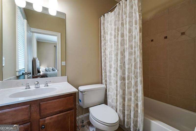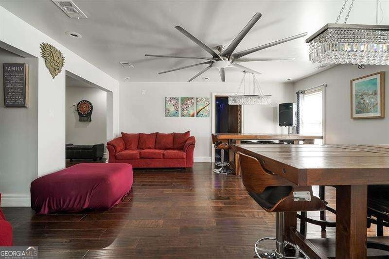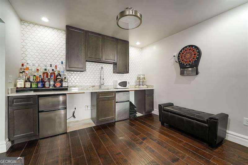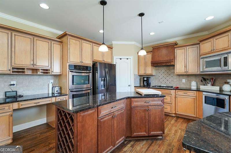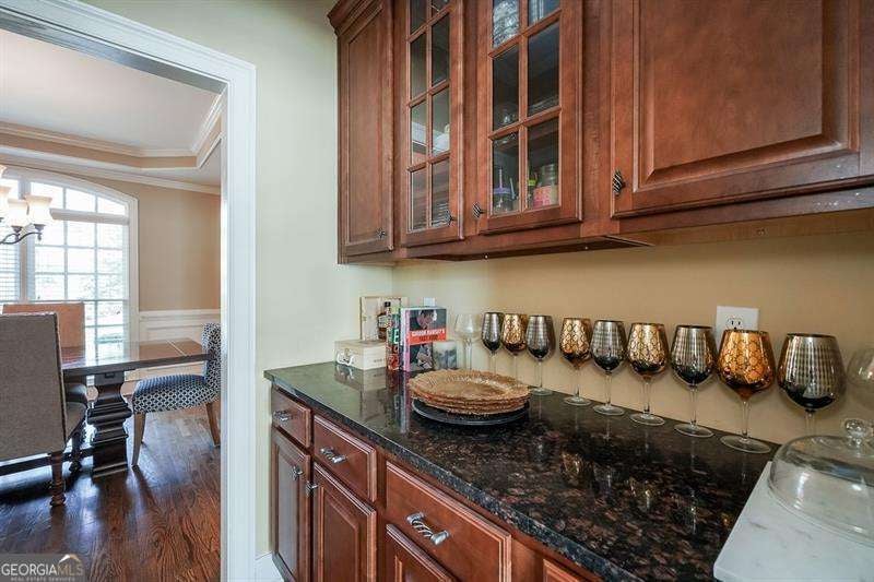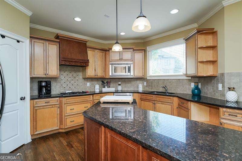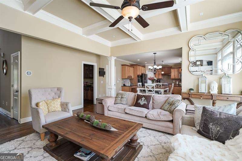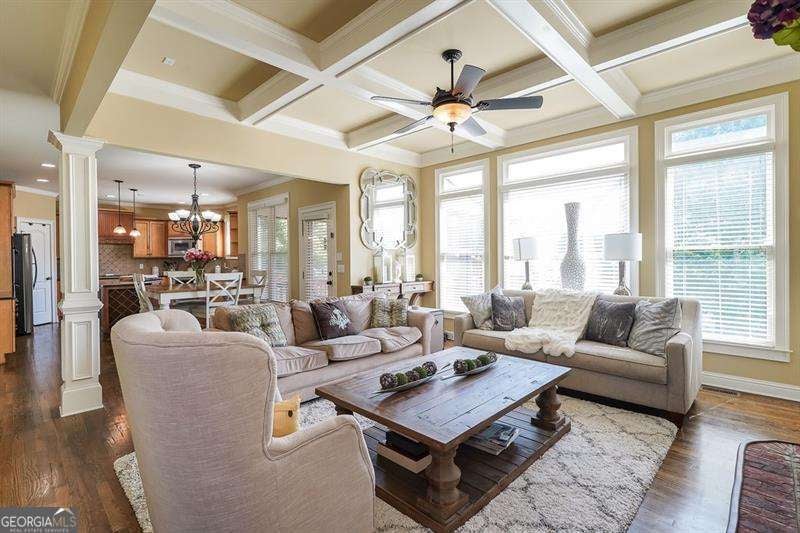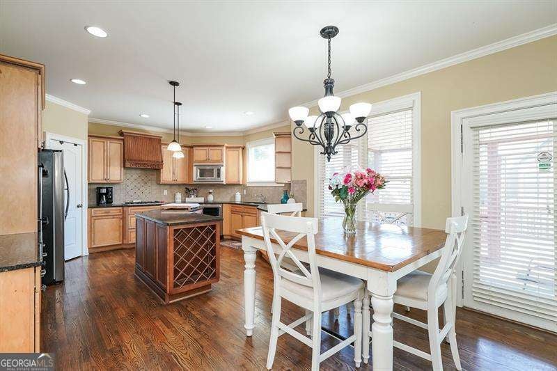 Move in ready within West Cobb perimeter. 3 sided brick, full/finished basement with tons of sq. footage and hardwood floors throughout main level. Open view from kitchen to family room w/ built in bookshelves is what you've been looking for! The basement has all your stay-cation needs. Full bar ready, exercise room w/ Dolby Atmos theater w/ 150" screen smart lighting. Security system already set up for you, including the Ring system. This is your one shot to move on up! Hurry, moving fast! The photos show well but you will be WOW'd in person! ELIGIBLE BUYERS MAY QUALIFY FOR GEORGIA DREAM DOWN PAYMENT ASSISTANCE.
