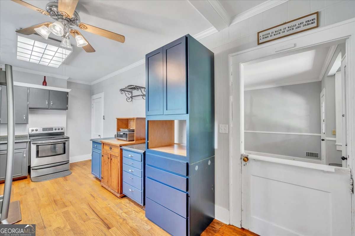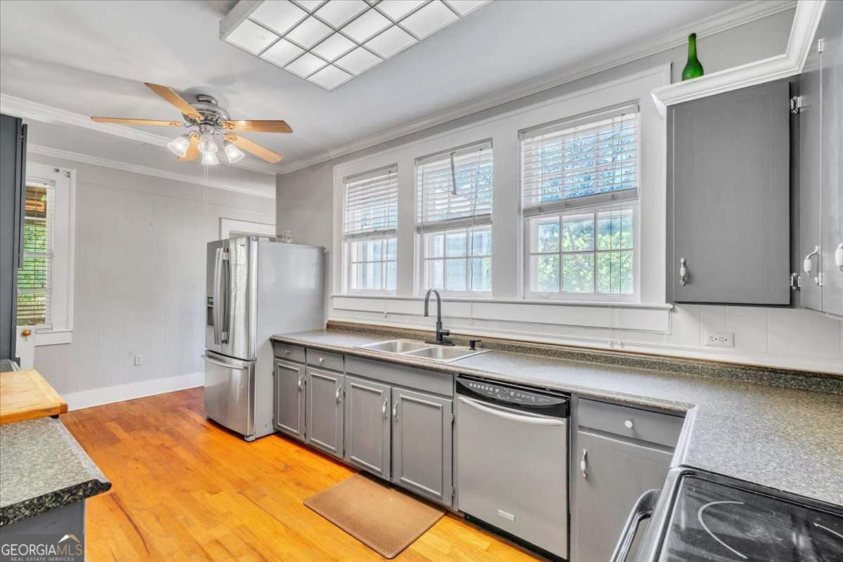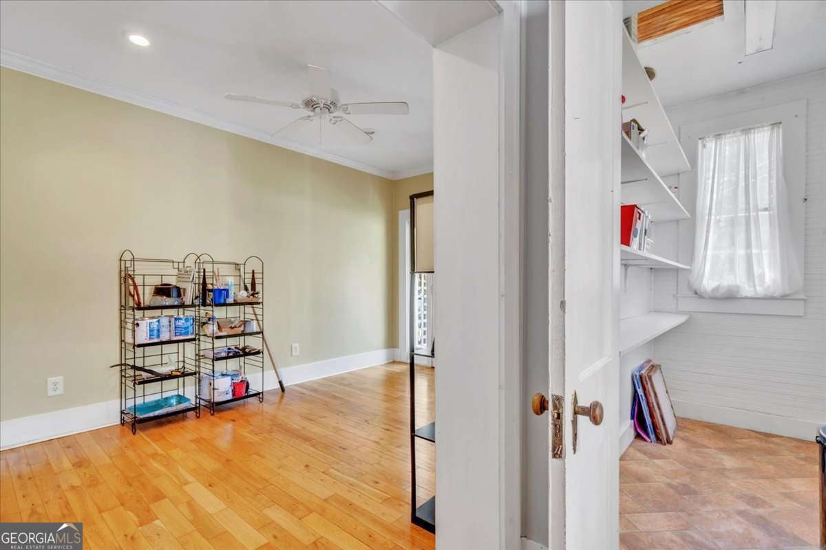 Recently painted inside and out, this two-story 4-bedroom, 2.5-bath home located off Bell St. near the historic district area of Americus offers a fresh feel while retaining the home's original classic charm. Beautiful Hardwood Floors compliment the majority of the 3191 sq. ft. of space, & the main level features a living area with fireplace, a formal dining room, master suite with an enormous closet, an additional bedroom, bonus rooms or areas that can be used as an office/craft/play room, & a REMODELED Kitchen with NEW APPLIANCES & Painted Cabinetry. Upstairs, you'll find the additional two bedrooms, including a bathroom & plenty of attic storage space. The landscaped yard adds to the home's curb appeal with palm trees offering a welcoming space for outdoor entertaining. The partially screened in porch is perfect & is surrounded by a privacy fenced backyard, a detached workshop for storing your tools, and a chain link fenced area for your pets. With its ideal blend of comfort, style, and updates, this home is MOVE-IN READY and waiting for its next owners.