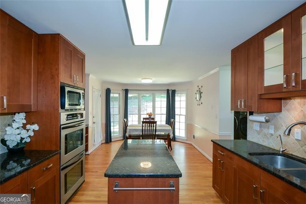 Top-Ranked North Fulton Schools! Prime Location!! An outstanding opportunity in one of Alpharetta's most sought after neighborhoods-just minutes from GA 400, North Point Mall, top-rated schools, and the Big Creek Greenway. This home offers a flexible floor plan, and timeless curb appeal. Featuring a three-car side-entry garage. Inside, a bright two-story foyer welcomes you with hardwood floors throughout much of the main level and upper hallway, adding warmth and character. The kitchen offers granite countertops, stainless steel appliances, and ample cabinetry, and provides an opportunity for future expansion or redesign to create a more open, updated space. Upstairs, you'll find six well-proportioned bedrooms and three full baths, providing generous space for family, guests, or home office needs. The finished basement extends the living area and includes unfinished storage space allowing you to personalize it to your taste. Enjoy outdoor living on two covered patios overlooking a tiered, landscaped, and fenced backyard, perfect for relaxation, play, or entertaining. The lower patio could easily be converted into a screened-in porch, adding even more year-round living space. Neighborhood amenities include a club house, pool and tennis courts, plus easy access to Big Creek Greenway, Waters Road Park, and Ocee Park. Conveniently located near Avalon, downtown Alpharetta, North Point Mall, the Verizon Amphitheatre, and GA 400, this home offers unmatched location and potential. Whether you're an investor, renovator, or homeowner eager to personalize a home this one presents a rare chance to add your vision and value in one of Alpharetta's most sought-after communities. Full of potential, and ready for its next chapter! Sellers including a 2-10 Home Buyers Warranty.