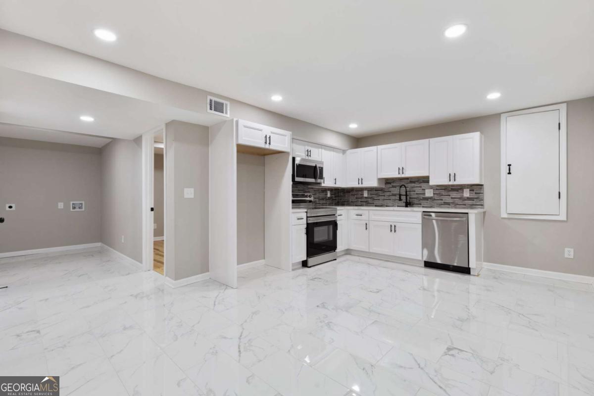 BACK ON MARKET DUE TO BUYER'S LOAN FALLING THROUGH! MOVE-IN READY AND FULLY RENOVATED 5 BEDROOM, 3 BATH, 4-SIDED BRICK RANCH WITH A FULLY FINISHED BASEMENT FEATURING 2 BEDROOMS, 1 FULL BATH, SEPARATE KITCHEN, AND LAUNDRY. LOCATED IN HIGHLY SOUGHT-AFTER LAWRENCEVILLE. THIS HOME HAS BEEN EXTENSIVELY UPDATED WITH NEW SIDING, NEW ROOF, NEW WINDOWS, NEW GARAGE, NEW DRIVEWAY, NEW HVAC SYSTEM, NEW WATER HEATER, NEW LVP FLOORING, NEW STAINLESS STEEL APPLIANCES, AND FRESH INTERIOR PAINT. THE DOUBLE KITCHEN DESIGN OFFERS QUARTZ COUNTERTOPS, BEAUTIFUL BACKSPLASHES, NEW CABINETS WITH AMPLE STORAGE, AND PREMIUM FINISHES. ALL BATHROOMS ARE MODERNIZED WITH GLASS TILE WORK, NEW VANITIES, UPDATED FIXTURES, AND FRAMELESS GLASS SHOWER DOORS. WITH 2 KITCHENS AND 2 LAUNDRIES, THIS PROPERTY IS PERFECT FOR MULTIGENERATIONAL LIVING OR POTENTIAL RENTAL INCOME FROM THE BASEMENT APARTMENT. PRIME LOCATION CLOSE TO SCHOOLS, SHOPPING, DINING, POST OFFICE, AND ENTERTAINMENT. NO HOA AND NO RENTAL RESTRICTIONS. A RARE FIND-SCHEDULE YOUR SHOWING TODAY!