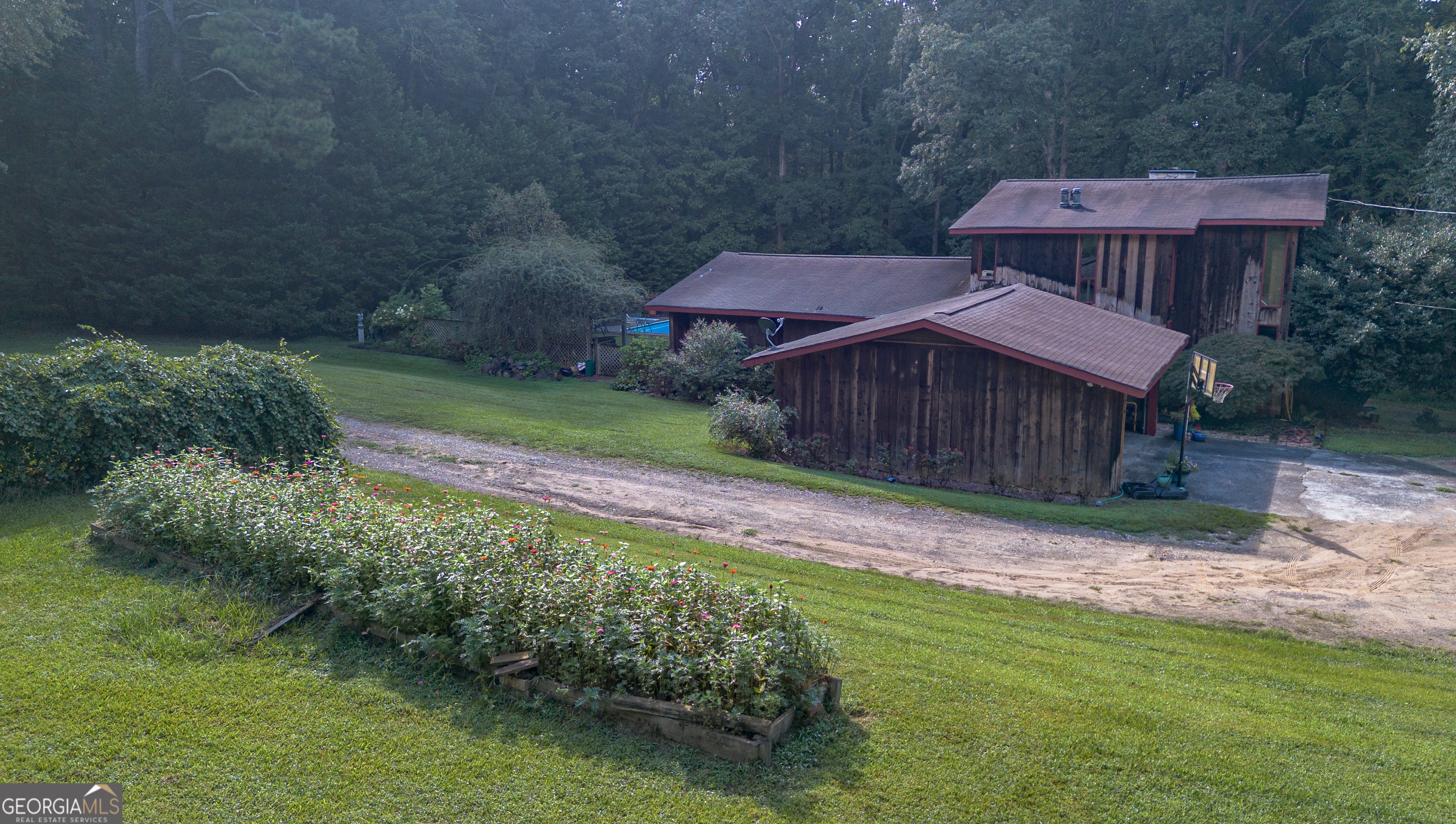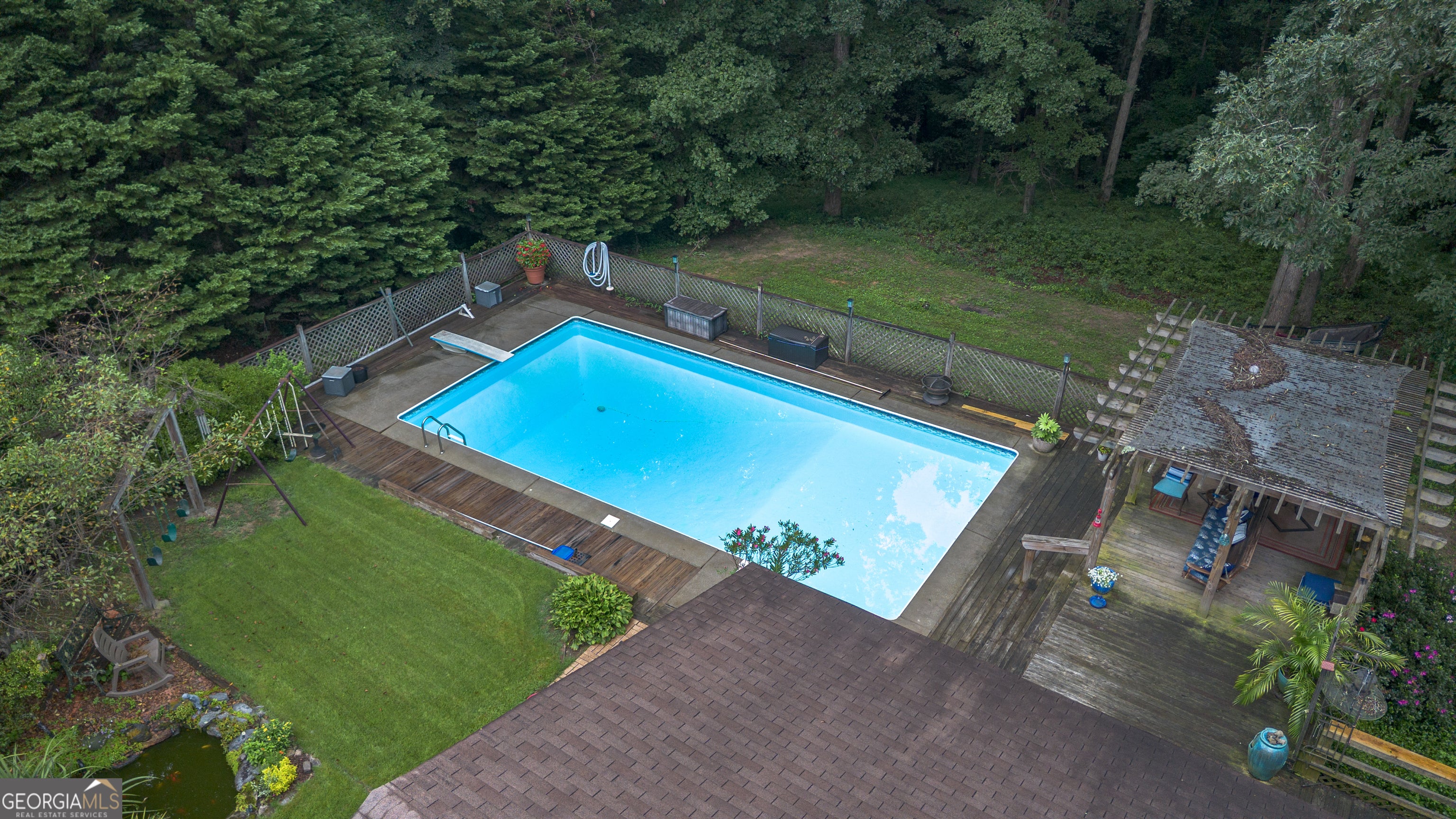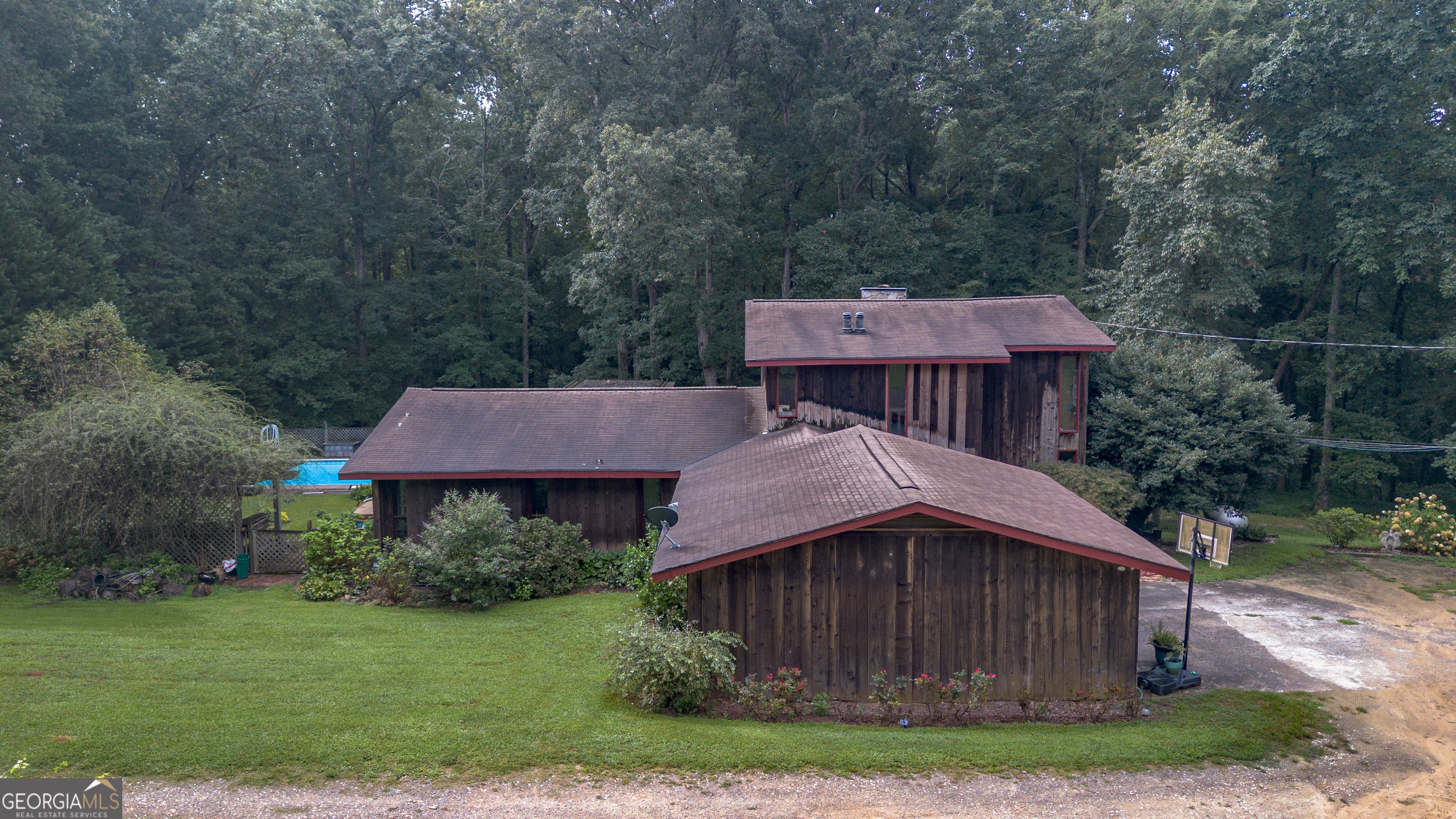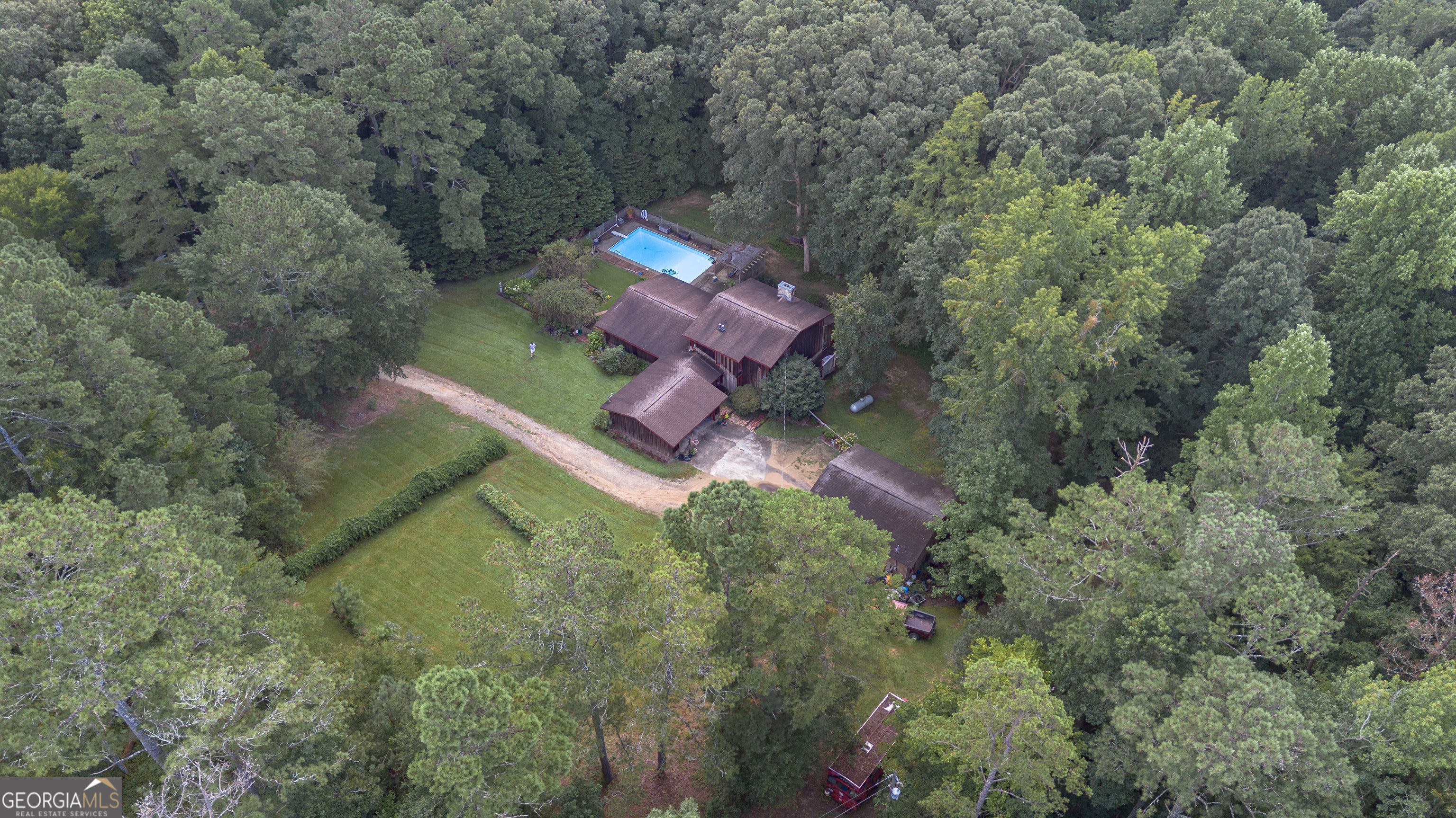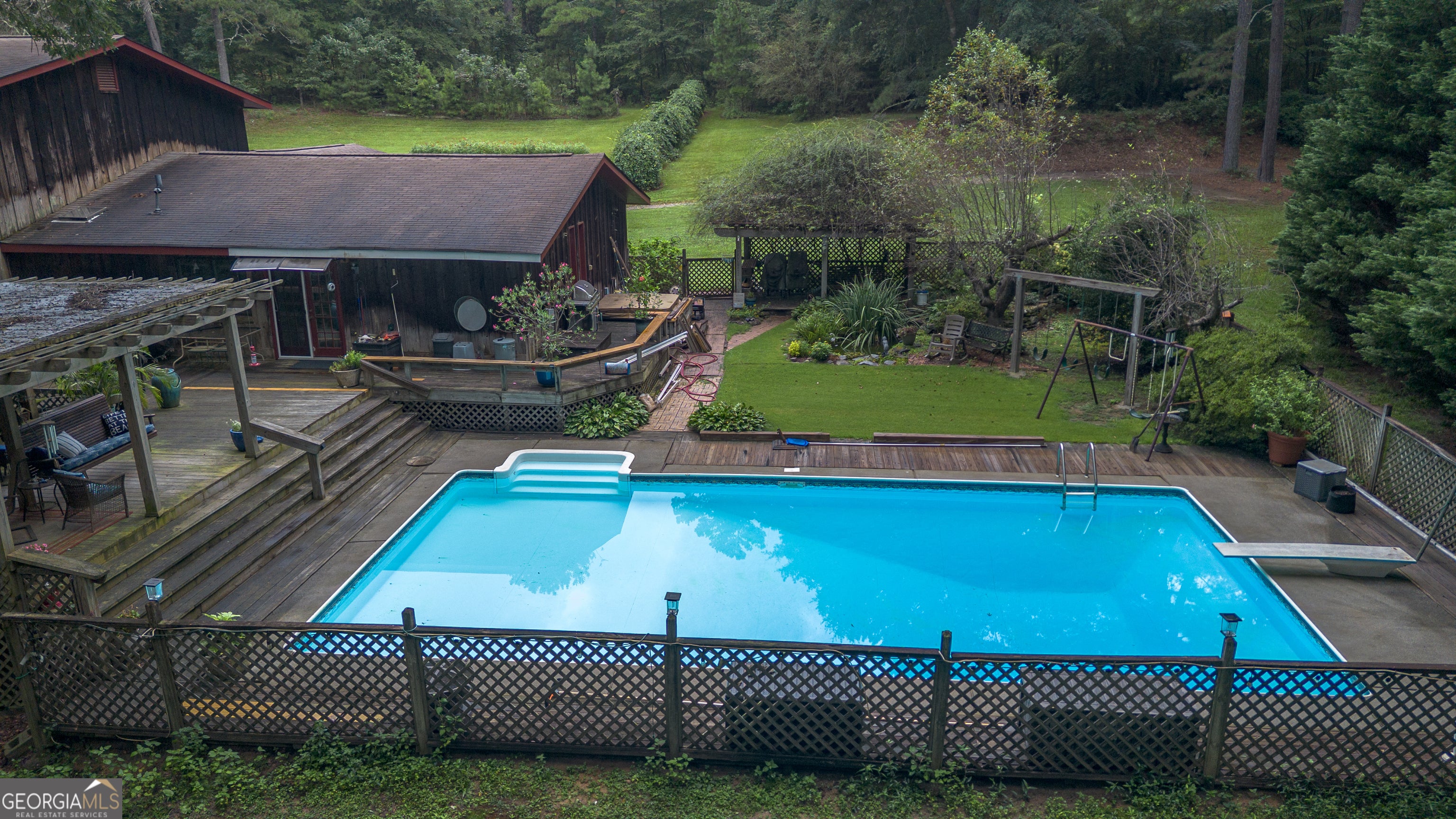 Rustic Country Home on 8+ Acres with Natural Views. Welcome to your private oasis! Nestled on over 8 acres of beautifully landscaped grounds, this rustic country home offers a perfect blend of tranquility and modern comforts. With breathtaking expansive views of lush natural woods, a serene creek, and abundant wildlife, you'll feel a world away while still enjoying convenient access to nearby amenities. This inviting 3-bedroom, 2-bath residence features a spacious primary suite complete with an en suite bathroom that boasts a jetted garden tub and French doors leading out to the back deck. The heart of the home is the Great Room, highlighted by soaring 20-foot ceilings, a stunning stone fireplace with gas logs, and built-ins that create a warm and inviting atmosphere. Step outside to your private paradise! Enjoy sunny days lounging by the impressive 20x40 saltwater pool with a durable vinyl liner, or unwind under the pergola with a hot tub that overlooks the pool area. For those who appreciate nature, a separate pergola harbors a Koi pond, providing a perfect spot for relaxation. The property also features a well-equipped woodworking shop/garage, complete with heating and air conditioning in the office area-ideal for hobbyists or those needing extra workspace. The full basement is partially finished, offering endless possibilities for additional living space or storage. Outdoor enthusiasts will appreciate the large fenced-in dog pen, making this home perfect for pet lovers. Additional highlights include a screened-in back porch, ideal for enjoying those warm summer evenings without pesky bugs. Don't miss this rare opportunity to own a slice of country paradise with all the comforts of home. Schedule your private showing today and experience the serenity this property has to offer! The possibilities are endless.