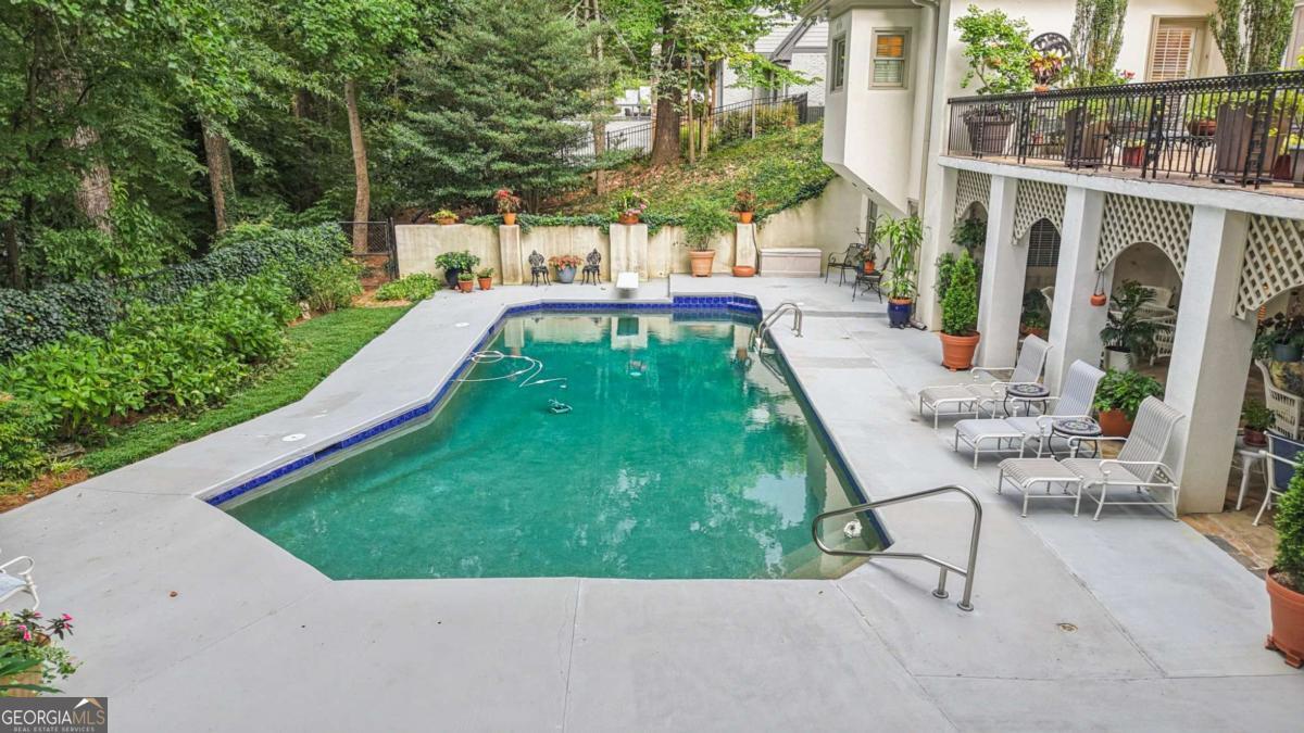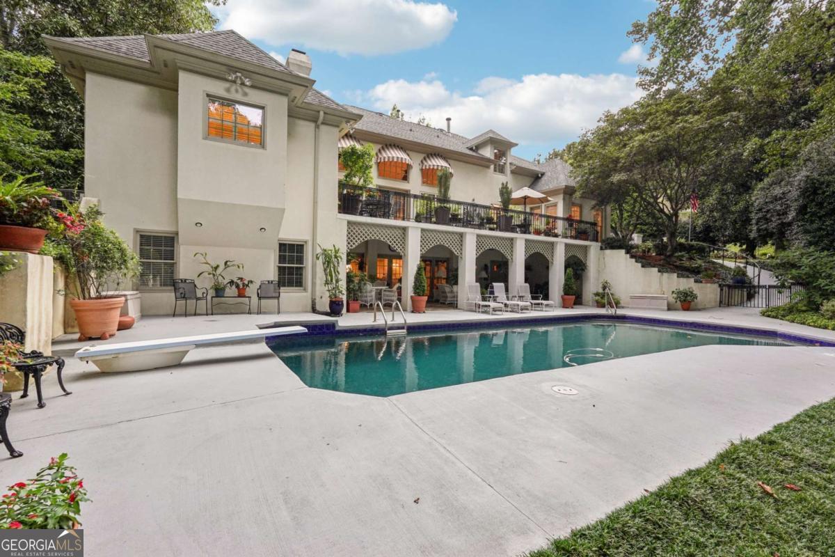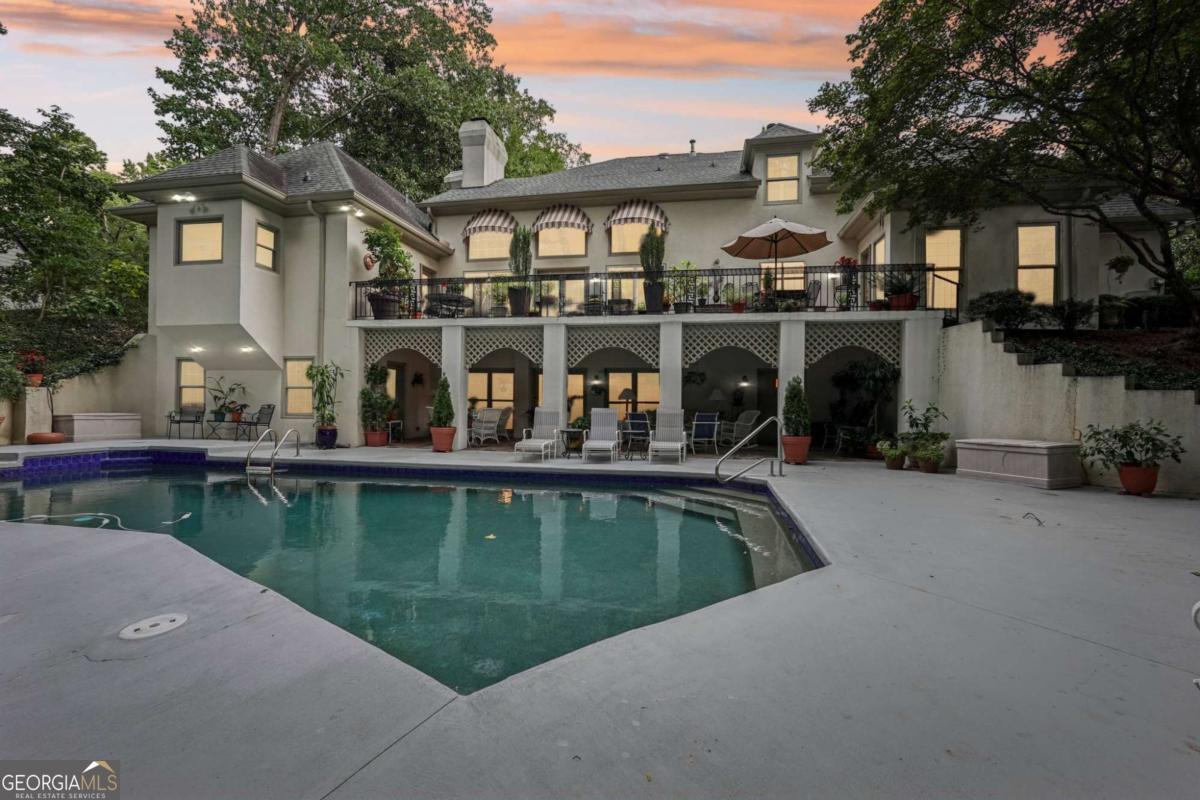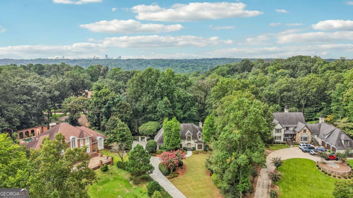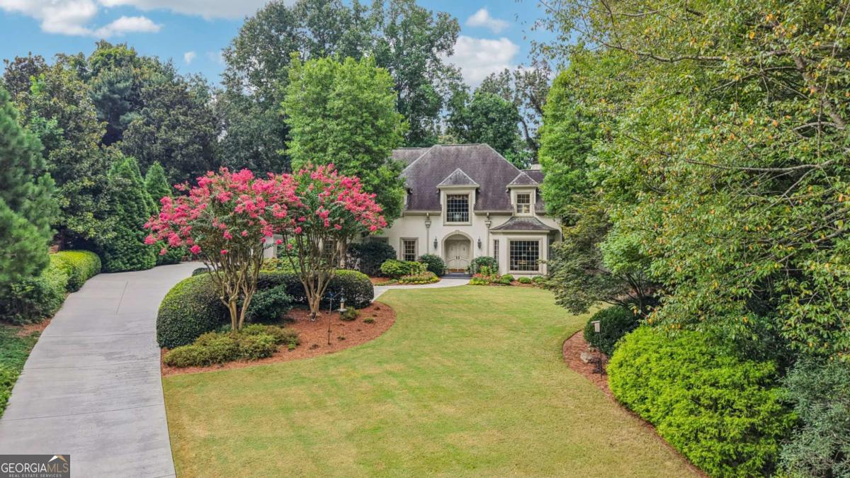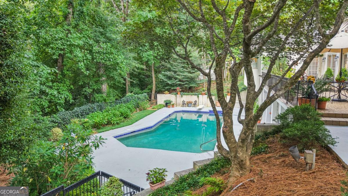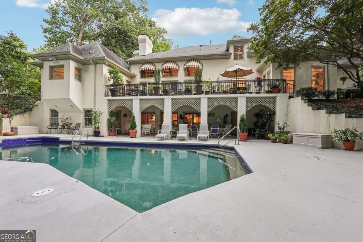 Resort-style living in the heart of Sandy Springs! This timeless European-style home is tucked away on a quiet cul-de-sac and offers 1.3 private acres with a heated saltwater pool, greenhouse, and turf side yard. A two-story foyer welcomes you into a bright, open layout. The updated kitchen features white cabinetry, quartz countertops, double ovens, two pantries, and a large island, opening to a sun filled keeping room. The vaulted family room boasts a brick fireplace, custom built-ins, and a chic beverage bar with storage and wine fridge. The main-level primary suite is a true retreat with its own fireplace, deck access, dual vanities, whirlpool tub, and steam shower. Formal living and dining rooms, a private home office, two half baths, and a spacious laundry room complete the main floor. Upstairs, generously sized bedrooms all have walk-in closets, while the finished basement offers a large rec room, fireplace, kitchenette, gym, bedroom, full bath, and a covered terrace overlooking the pool. Perfect for entertaining, the outdoor spaces feature a resort-style pool, expansive deck, and peaceful garden areas. Ideally located minutes from Chastain Park, The Battery, shopping, dining, hospitals, top schools, and major highways, this home blends space, privacy, and convenience in one of Sandy Springs most desirable locations.