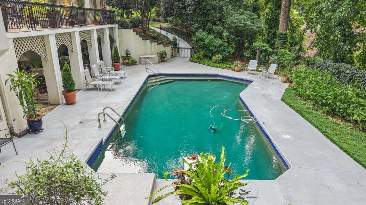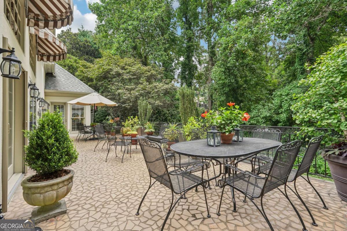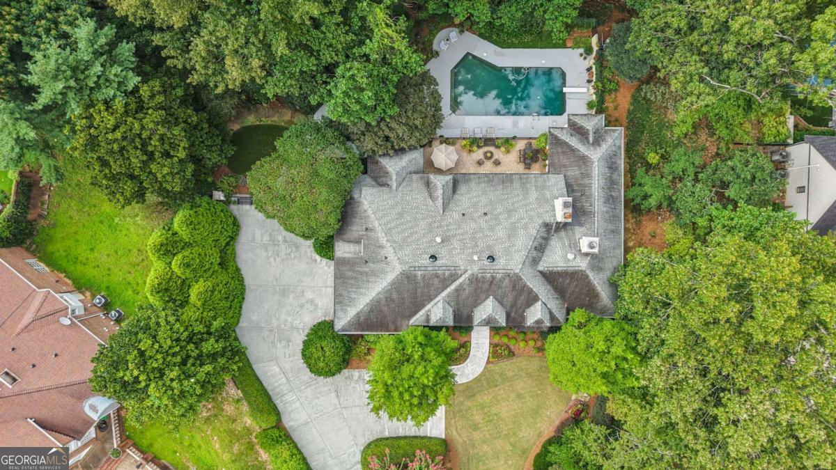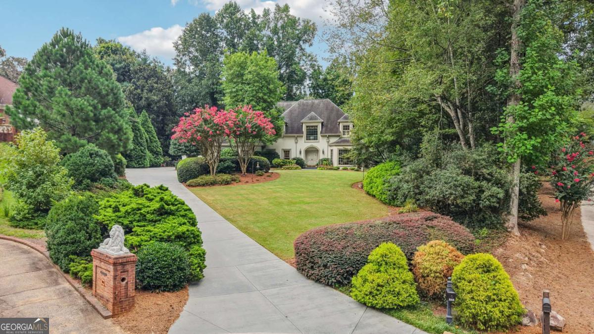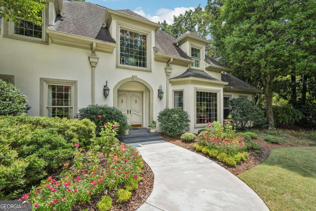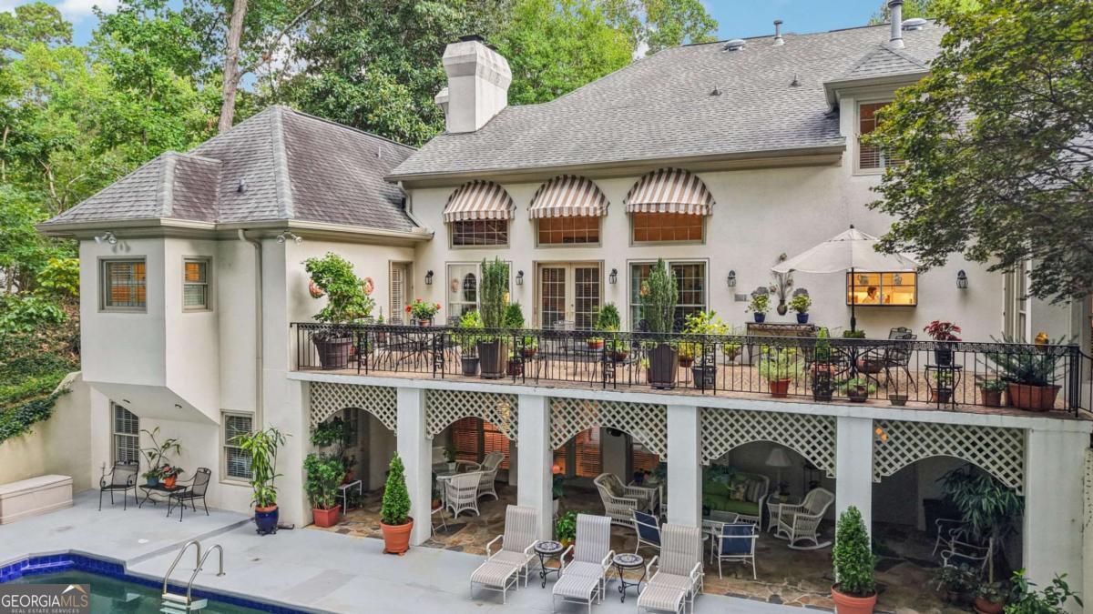 Resort-style living in the heart of Sandy Springs! This timeless European-style home is tucked away on a quiet cul-de-sac and offers 1.3 private acres with a heated saltwater pool, greenhouse, and turf side yard. A two-story foyer welcomes you into a bright, open layout. The updated kitchen features white cabinetry, quartz countertops, double ovens, two pantries, and a large island, opening to a sun filled keeping room. The vaulted family room boasts a brick fireplace, custom built-ins, and a chic beverage bar with storage and wine fridge. The main-level primary suite is a true retreat with its own fireplace, deck access, dual vanities, whirlpool tub, and steam shower. Formal living and dining rooms, a private home office, two half baths, and a spacious laundry room complete the main floor. Upstairs, generously sized bedrooms all have walk-in closets, while the finished basement offers a large rec room, fireplace, kitchenette, gym, bedroom, full bath, and a covered terrace overlooking the pool. Perfect for entertaining, the outdoor spaces feature a resort-style pool, expansive deck, and peaceful garden areas. Ideally located minutes from Chastain Park, The Battery, shopping, dining, hospitals, top schools, and major highways, this home blends space, privacy, and convenience in one of Sandy Springs most desirable locations.