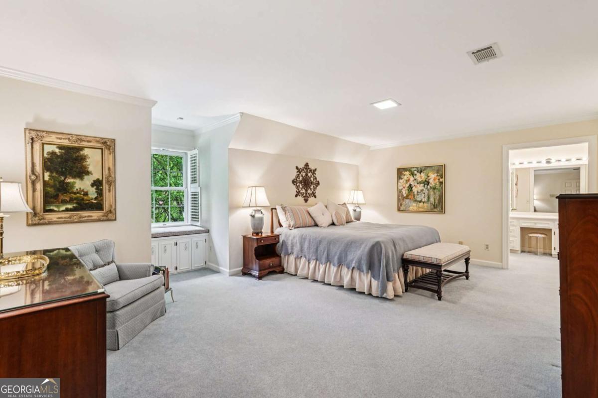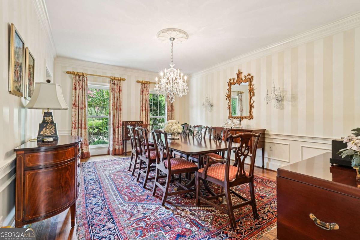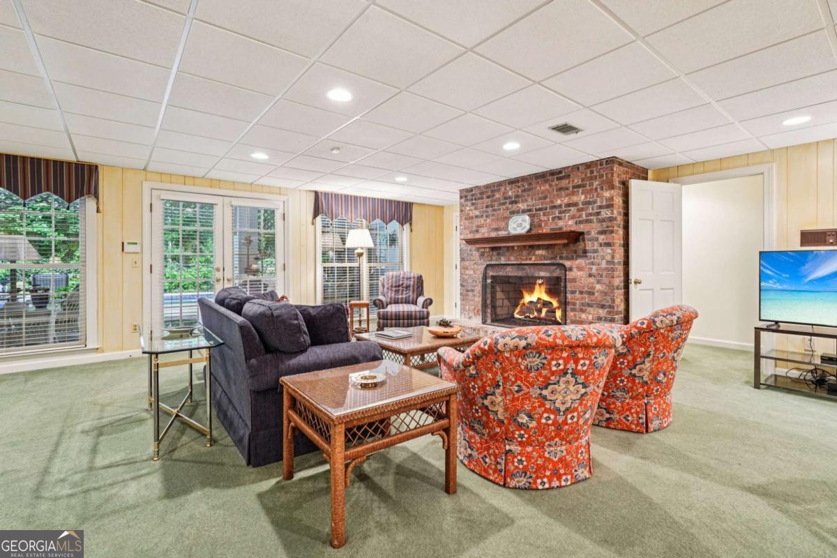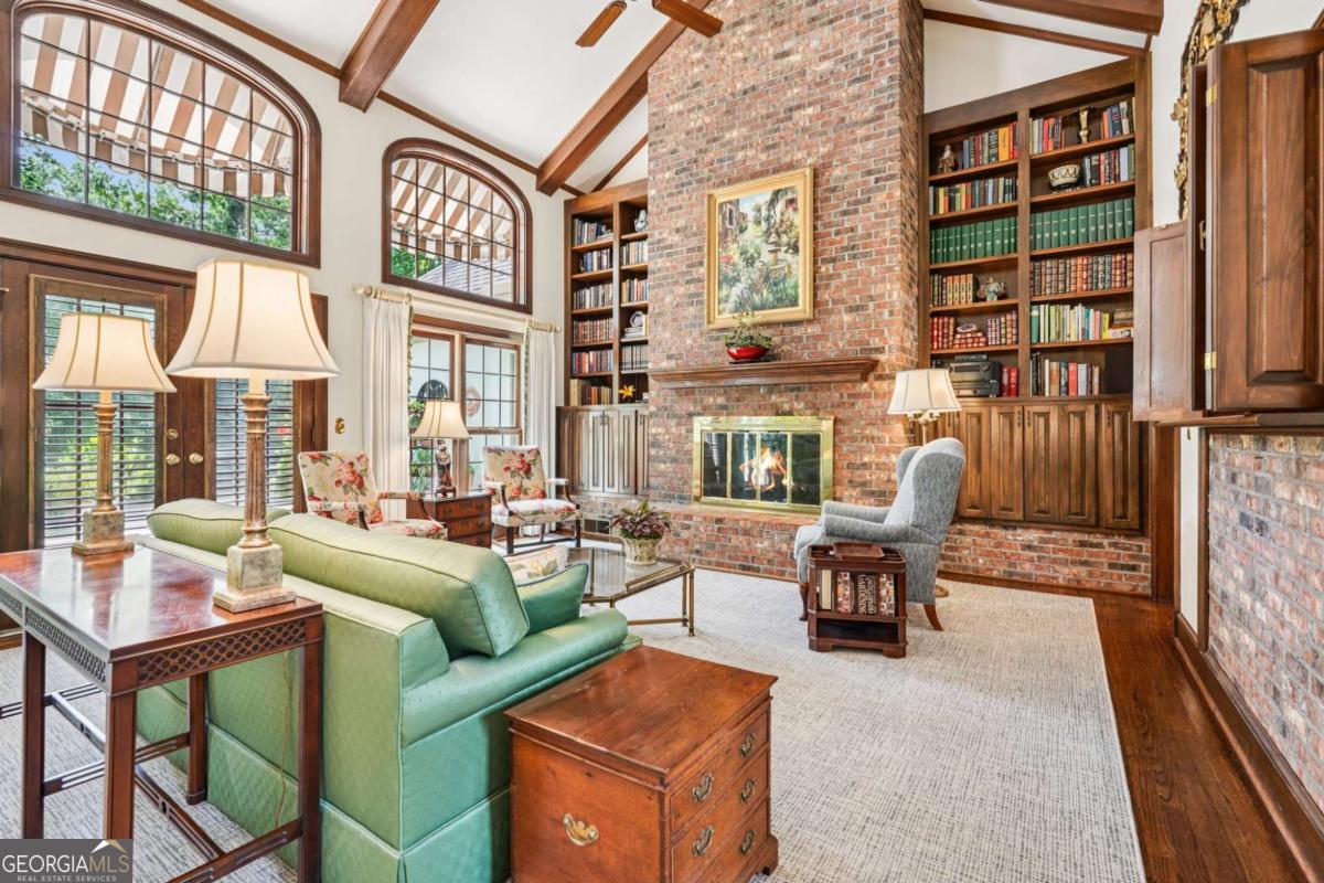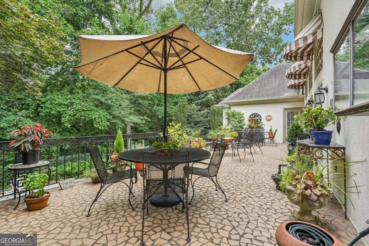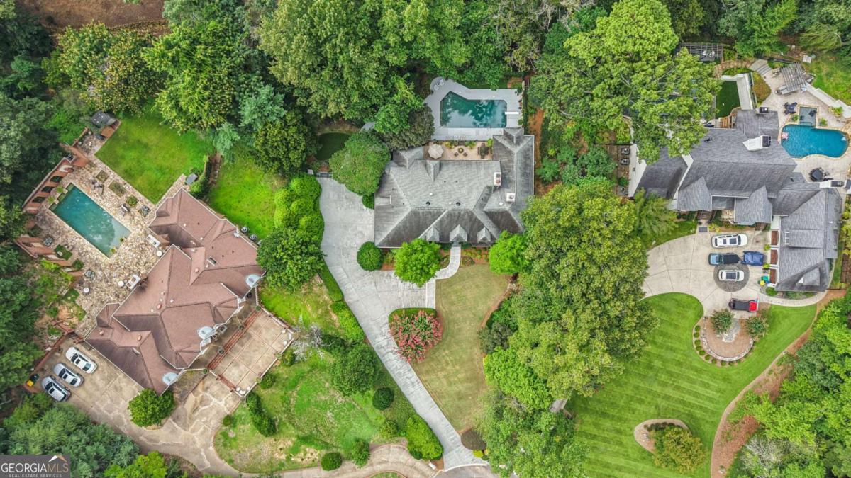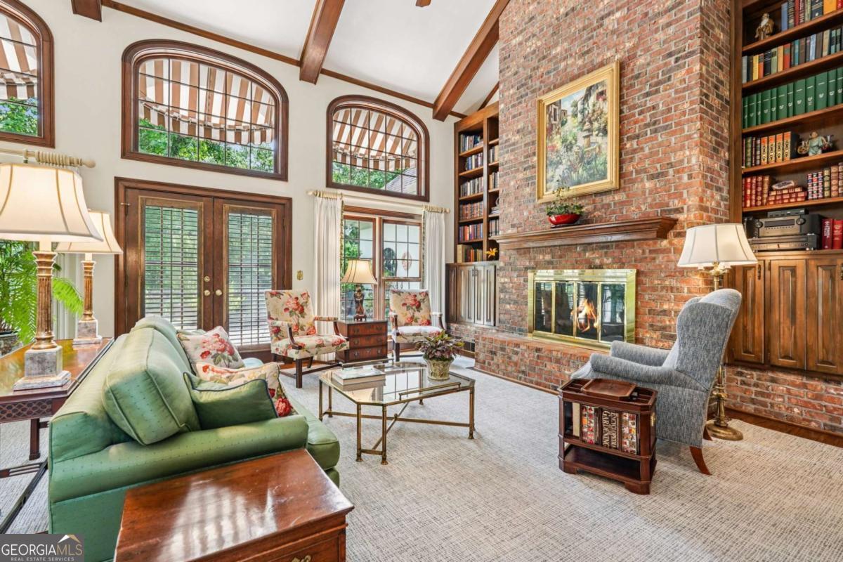 Resort-style living in the heart of Sandy Springs! This timeless European-style home is tucked away on a quiet cul-de-sac and offers 1.3 private acres with a heated saltwater pool, greenhouse, and turf side yard. A two-story foyer welcomes you into a bright, open layout. The updated kitchen features white cabinetry, quartz countertops, double ovens, two pantries, and a large island, opening to a sun filled keeping room. The vaulted family room boasts a brick fireplace, custom built-ins, and a chic beverage bar with storage and wine fridge. The main-level primary suite is a true retreat with its own fireplace, deck access, dual vanities, whirlpool tub, and steam shower. Formal living and dining rooms, a private home office, two half baths, and a spacious laundry room complete the main floor. Upstairs, generously sized bedrooms all have walk-in closets, while the finished basement offers a large rec room, fireplace, kitchenette, gym, bedroom, full bath, and a covered terrace overlooking the pool. Perfect for entertaining, the outdoor spaces feature a resort-style pool, expansive deck, and peaceful garden areas. Ideally located minutes from Chastain Park, The Battery, shopping, dining, hospitals, top schools, and major highways, this home blends space, privacy, and convenience in one of Sandy Springs most desirable locations.