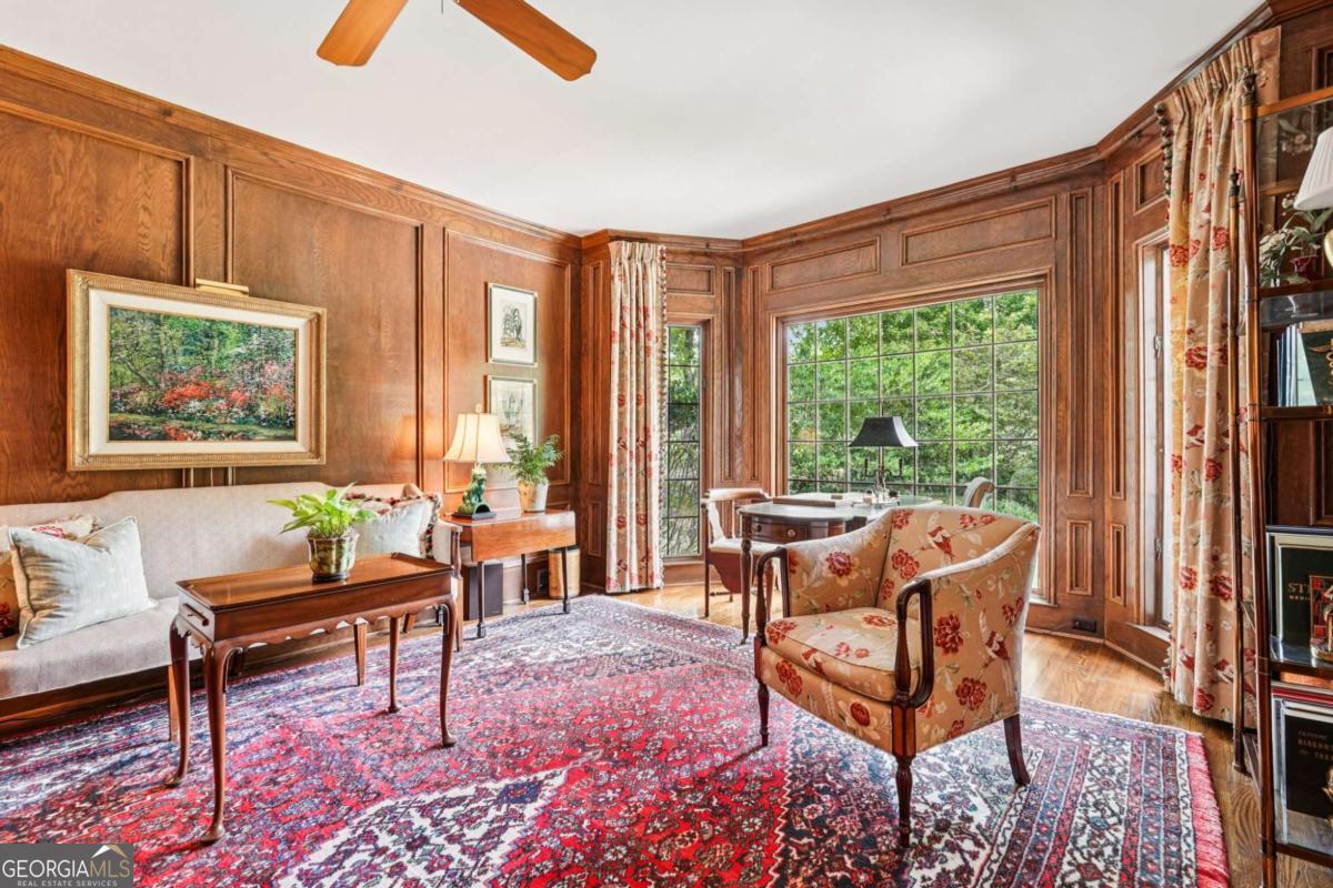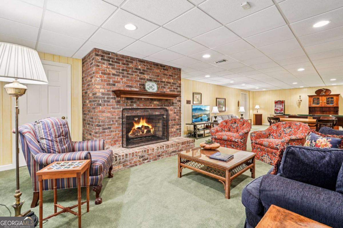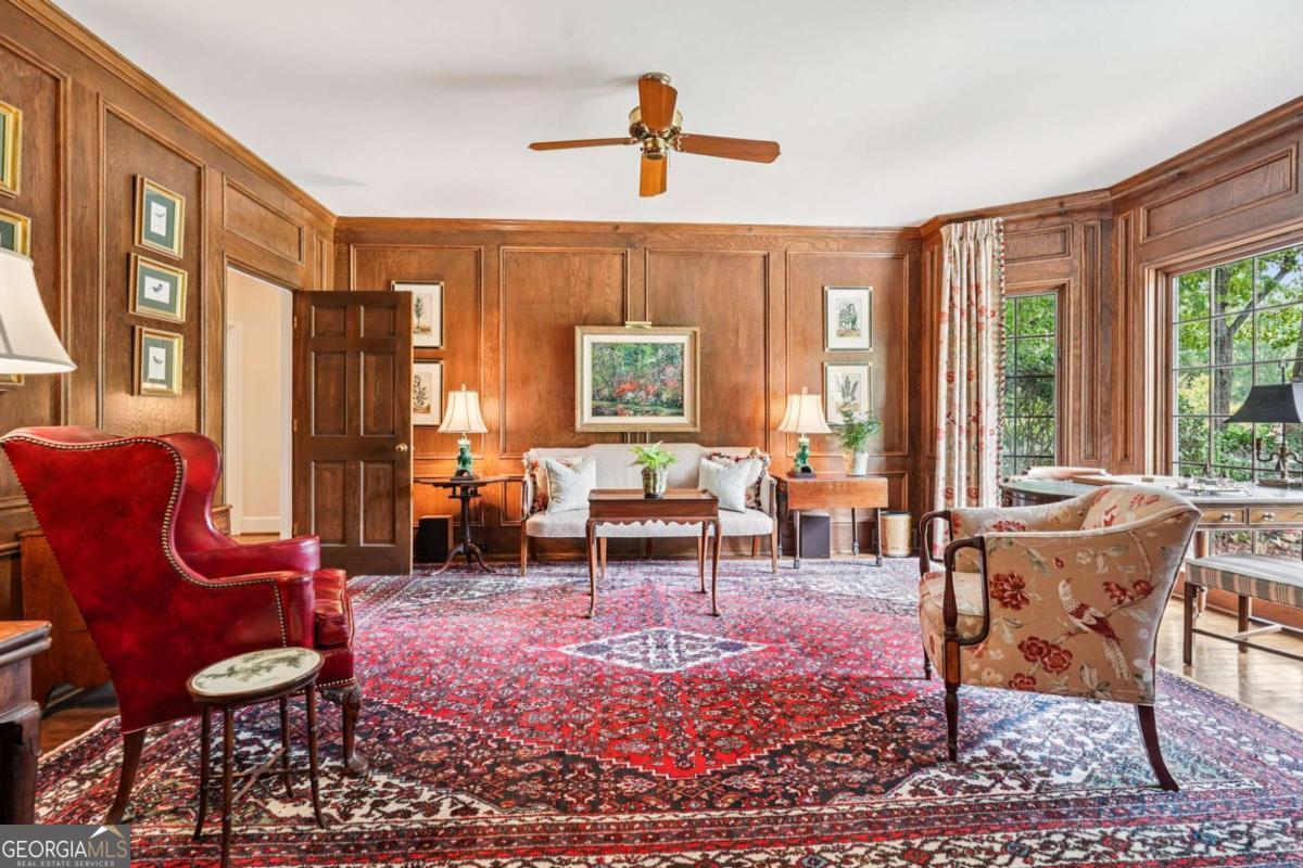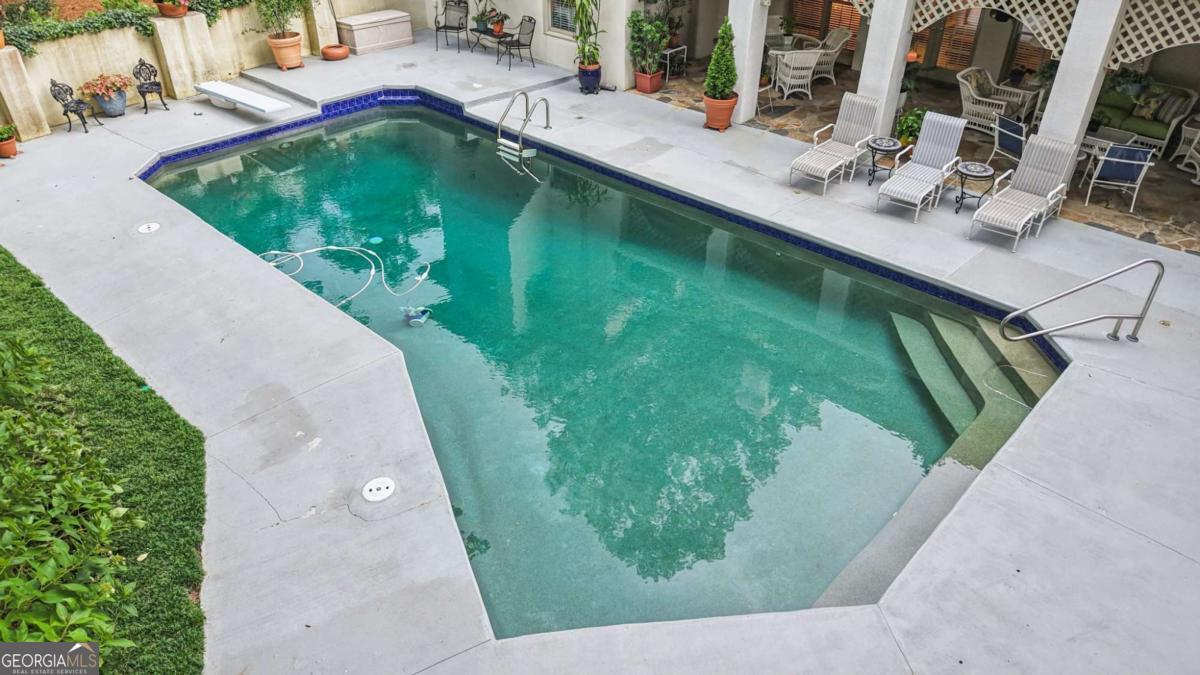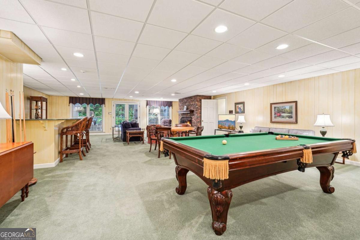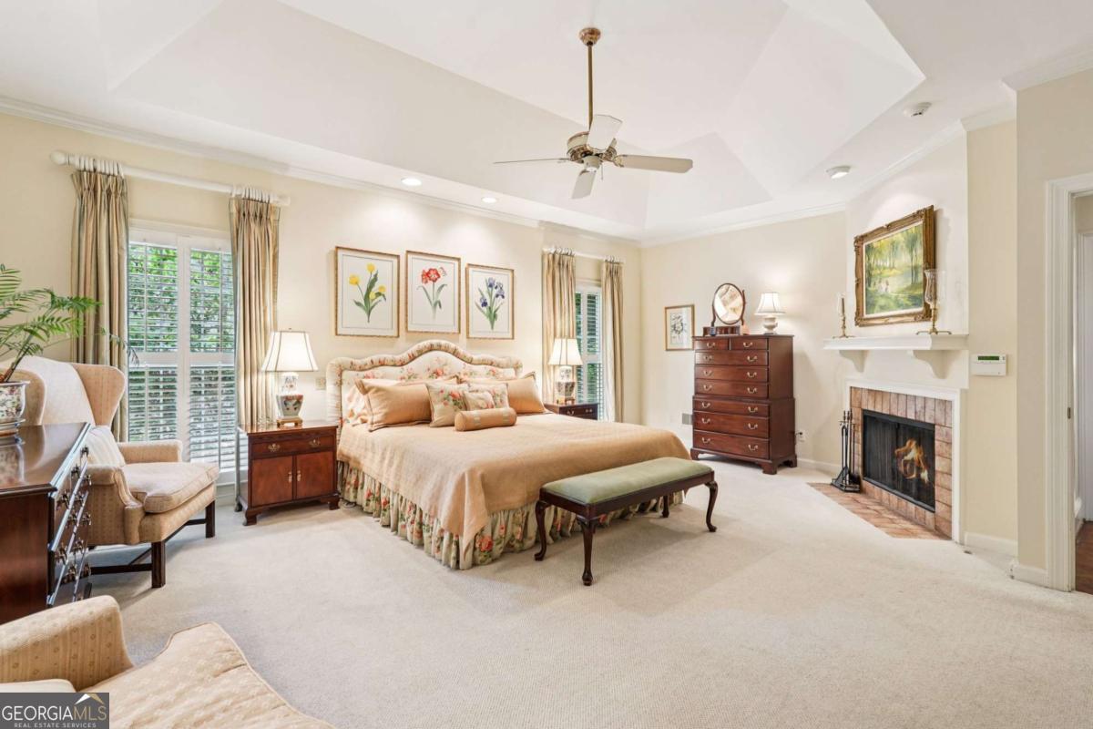 Resort-style living in the heart of Sandy Springs! This timeless European-style home is tucked away on a quiet cul-de-sac and offers 1.3 private acres with a heated saltwater pool, greenhouse, and turf side yard. A two-story foyer welcomes you into a bright, open layout. The updated kitchen features white cabinetry, quartz countertops, double ovens, two pantries, and a large island, opening to a sun filled keeping room. The vaulted family room boasts a brick fireplace, custom built-ins, and a chic beverage bar with storage and wine fridge. The main-level primary suite is a true retreat with its own fireplace, deck access, dual vanities, whirlpool tub, and steam shower. Formal living and dining rooms, a private home office, two half baths, and a spacious laundry room complete the main floor. Upstairs, generously sized bedrooms all have walk-in closets, while the finished basement offers a large rec room, fireplace, kitchenette, gym, bedroom, full bath, and a covered terrace overlooking the pool. Perfect for entertaining, the outdoor spaces feature a resort-style pool, expansive deck, and peaceful garden areas. Ideally located minutes from Chastain Park, The Battery, shopping, dining, hospitals, top schools, and major highways, this home blends space, privacy, and convenience in one of Sandy Springs most desirable locations.