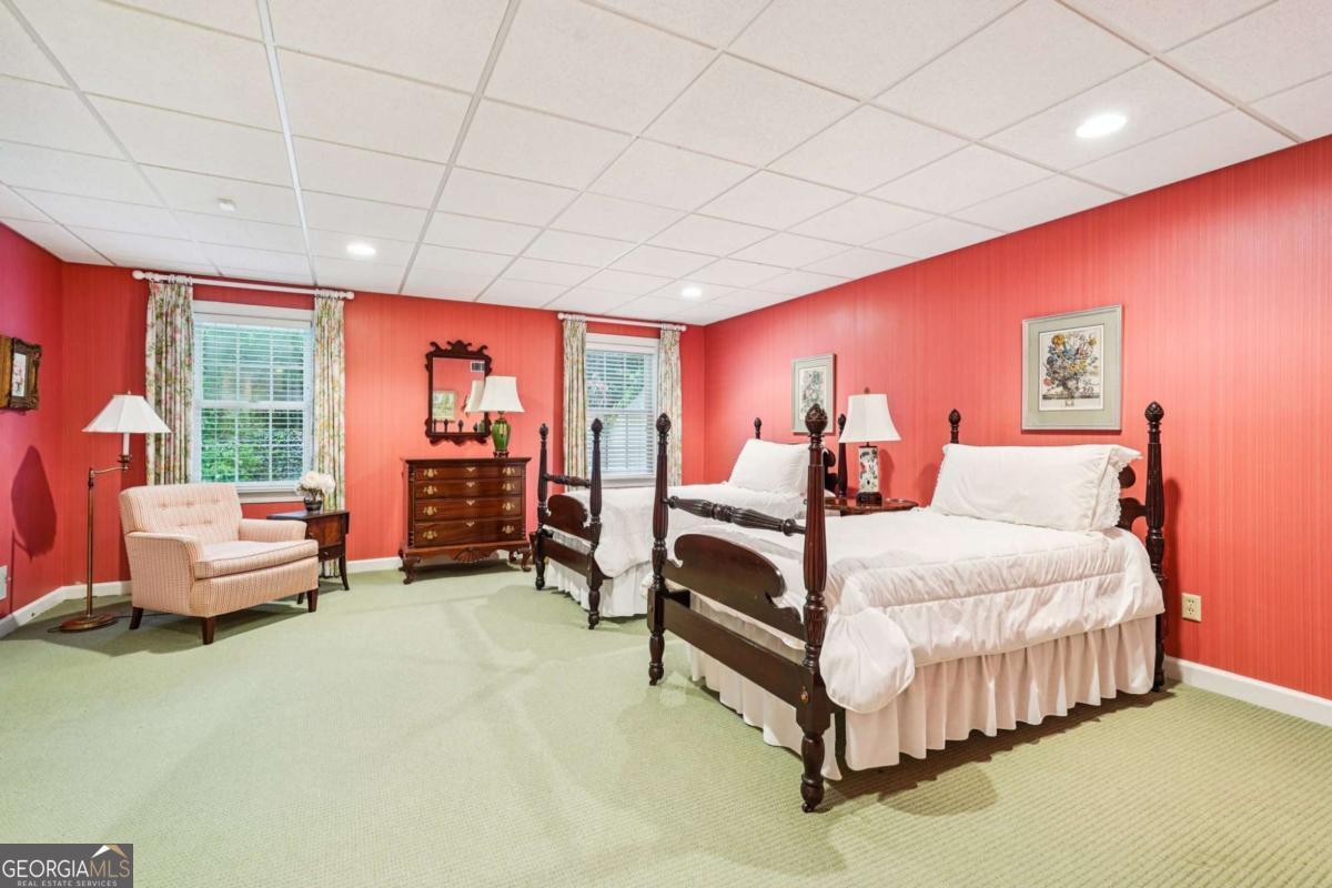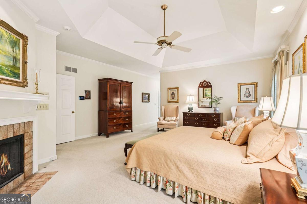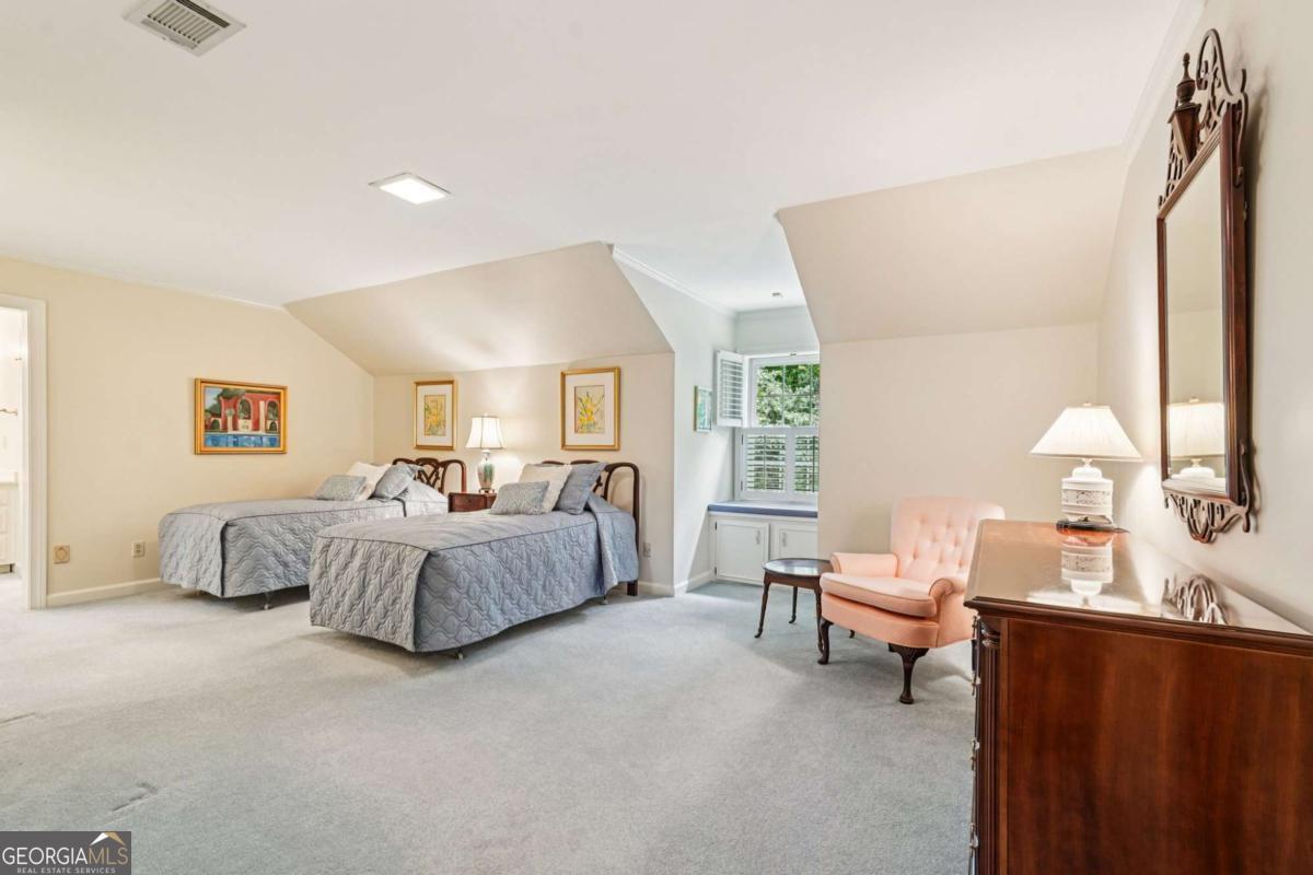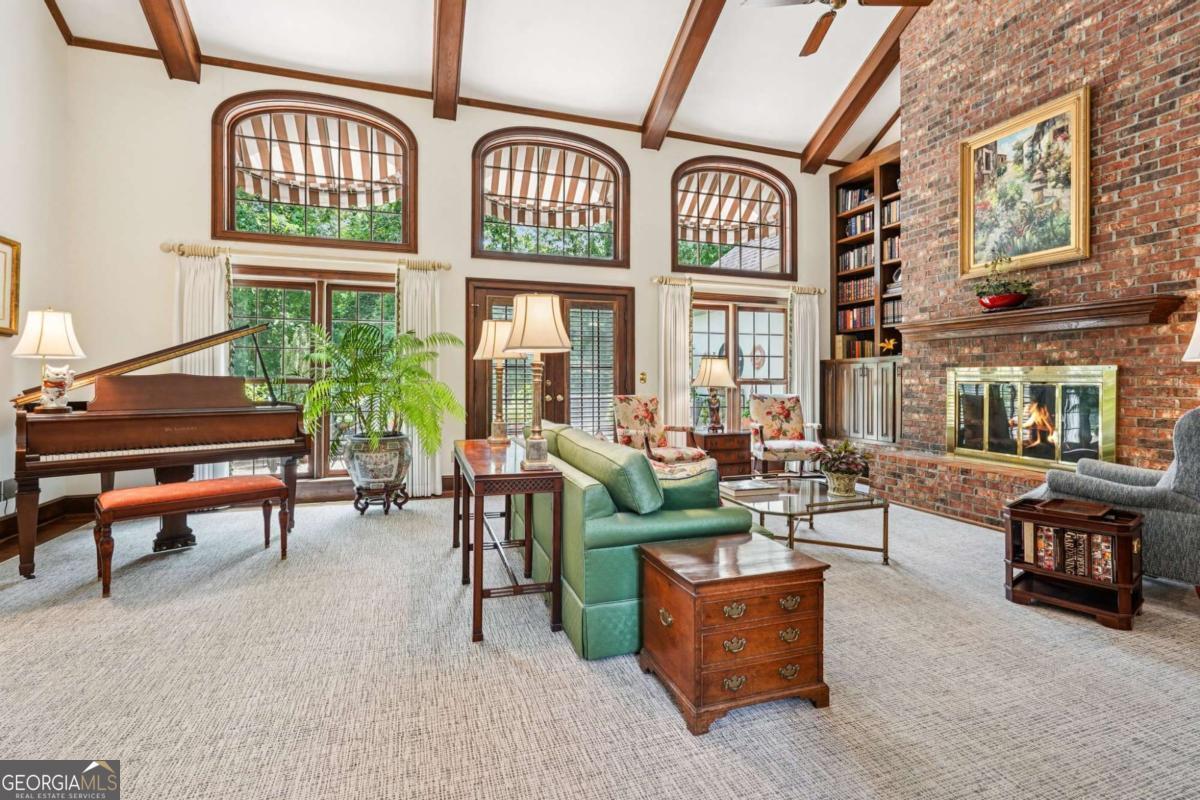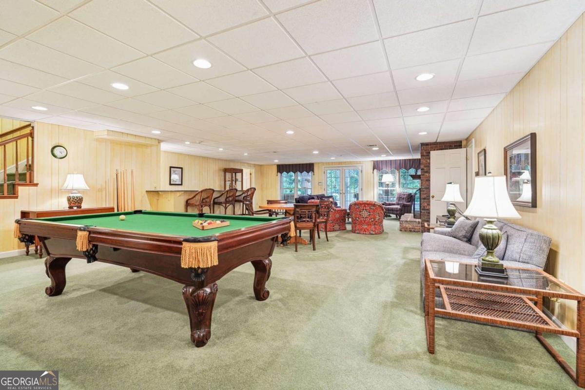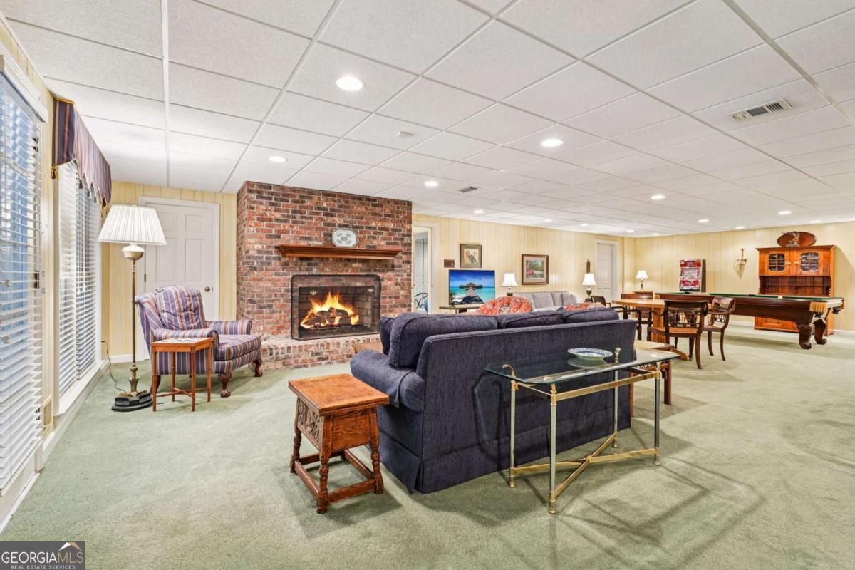 Resort-style living in the heart of Sandy Springs! This timeless European-style home is tucked away on a quiet cul-de-sac and offers 1.3 private acres with a heated saltwater pool, greenhouse, and turf side yard. A two-story foyer welcomes you into a bright, open layout. The updated kitchen features white cabinetry, quartz countertops, double ovens, two pantries, and a large island, opening to a sun filled keeping room. The vaulted family room boasts a brick fireplace, custom built-ins, and a chic beverage bar with storage and wine fridge. The main-level primary suite is a true retreat with its own fireplace, deck access, dual vanities, whirlpool tub, and steam shower. Formal living and dining rooms, a private home office, two half baths, and a spacious laundry room complete the main floor. Upstairs, generously sized bedrooms all have walk-in closets, while the finished basement offers a large rec room, fireplace, kitchenette, gym, bedroom, full bath, and a covered terrace overlooking the pool. Perfect for entertaining, the outdoor spaces feature a resort-style pool, expansive deck, and peaceful garden areas. Ideally located minutes from Chastain Park, The Battery, shopping, dining, hospitals, top schools, and major highways, this home blends space, privacy, and convenience in one of Sandy Springs most desirable locations.