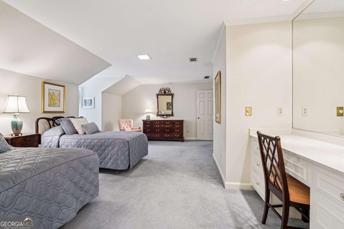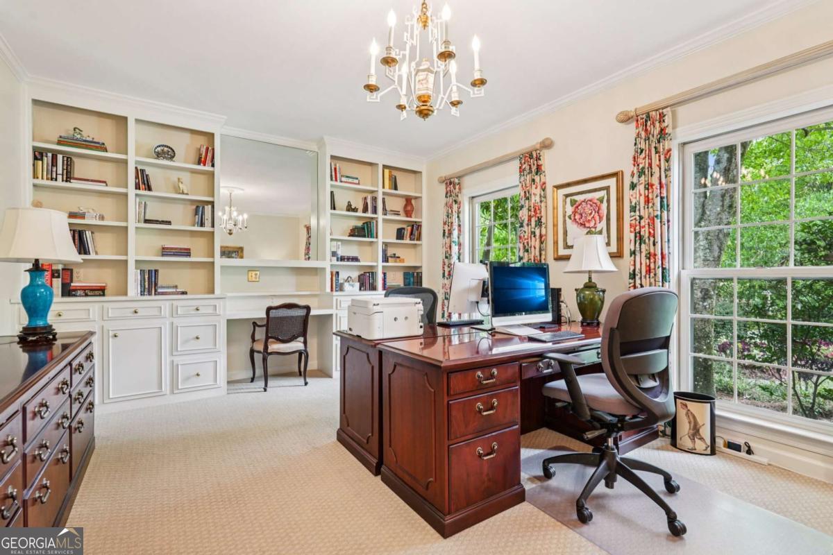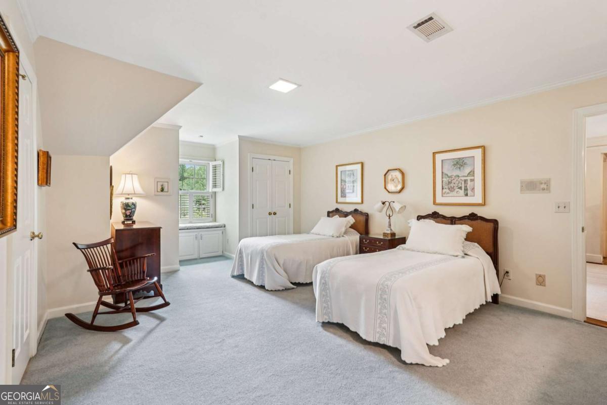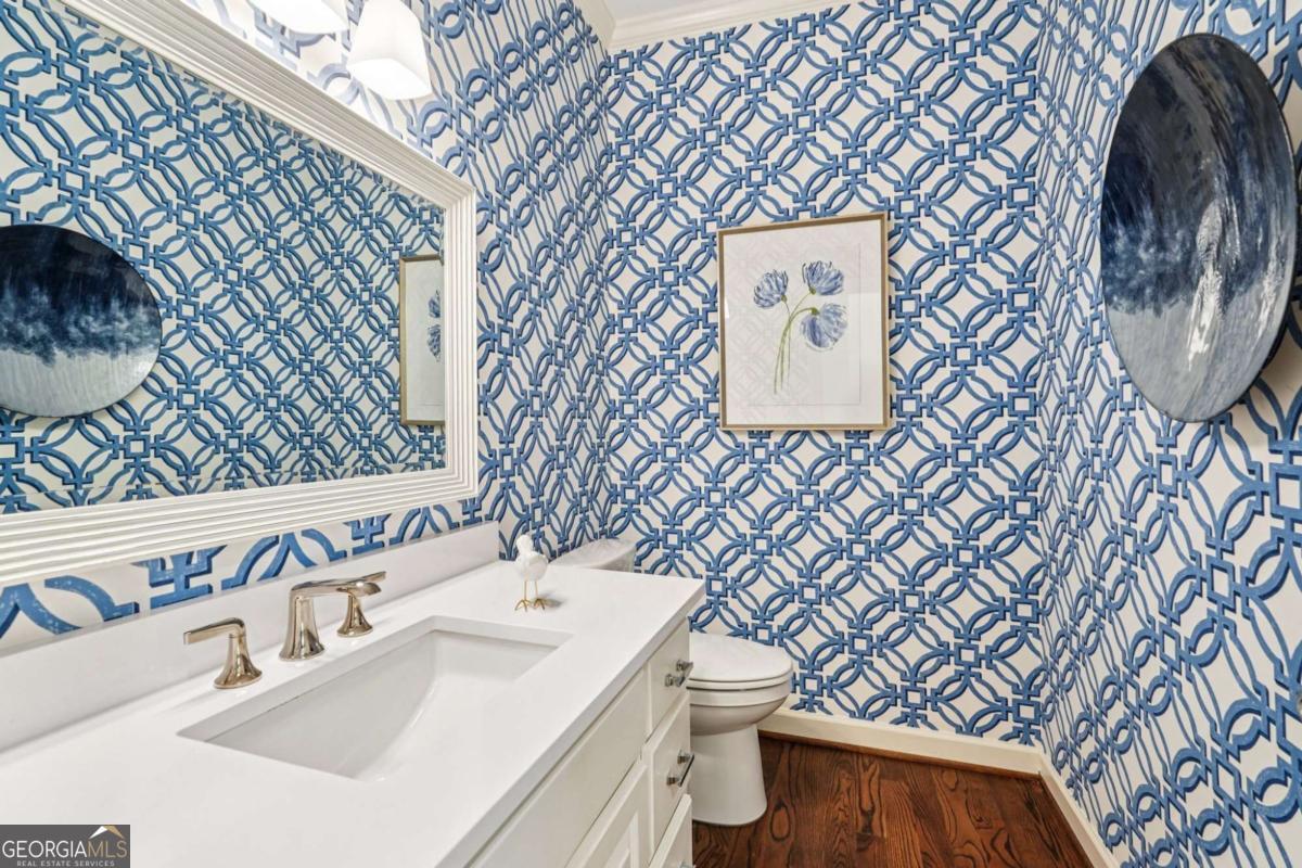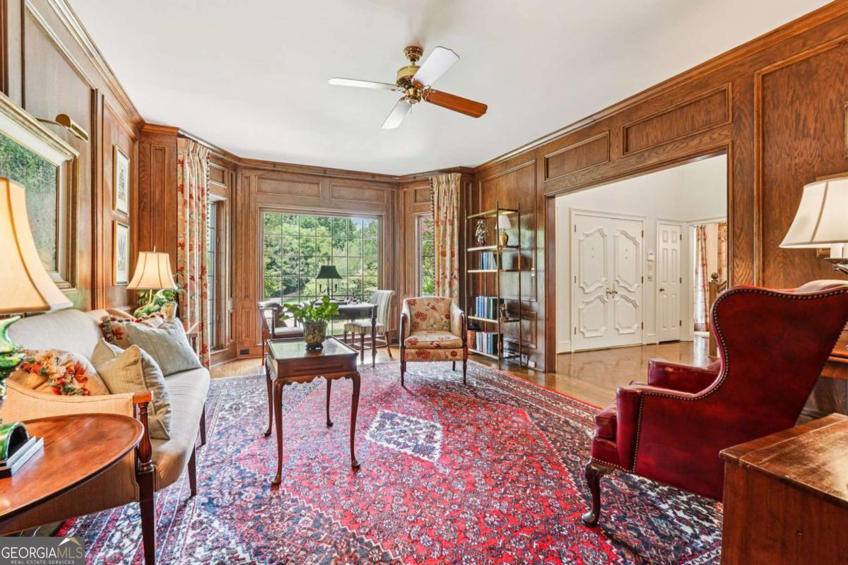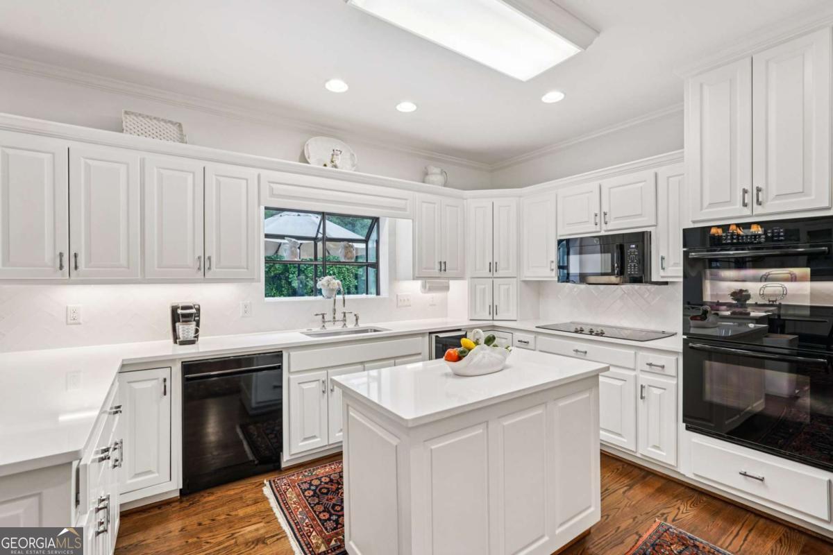 Resort-style living in the heart of Sandy Springs! This timeless European-style home is tucked away on a quiet cul-de-sac and offers 1.3 private acres with a heated saltwater pool, greenhouse, and turf side yard. A two-story foyer welcomes you into a bright, open layout. The updated kitchen features white cabinetry, quartz countertops, double ovens, two pantries, and a large island, opening to a sun filled keeping room. The vaulted family room boasts a brick fireplace, custom built-ins, and a chic beverage bar with storage and wine fridge. The main-level primary suite is a true retreat with its own fireplace, deck access, dual vanities, whirlpool tub, and steam shower. Formal living and dining rooms, a private home office, two half baths, and a spacious laundry room complete the main floor. Upstairs, generously sized bedrooms all have walk-in closets, while the finished basement offers a large rec room, fireplace, kitchenette, gym, bedroom, full bath, and a covered terrace overlooking the pool. Perfect for entertaining, the outdoor spaces feature a resort-style pool, expansive deck, and peaceful garden areas. Ideally located minutes from Chastain Park, The Battery, shopping, dining, hospitals, top schools, and major highways, this home blends space, privacy, and convenience in one of Sandy Springs most desirable locations.