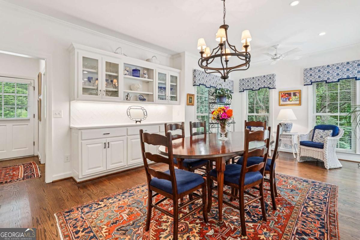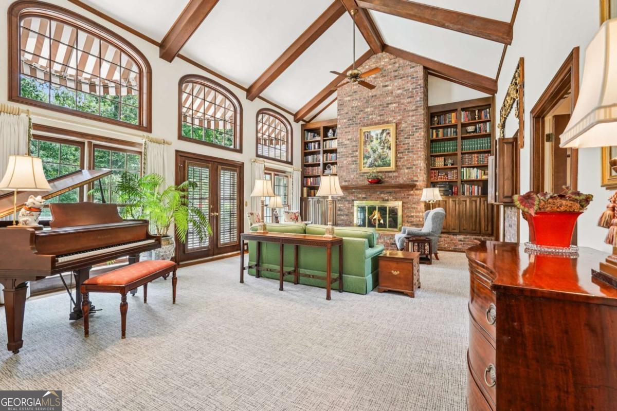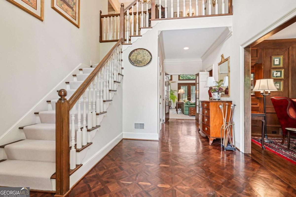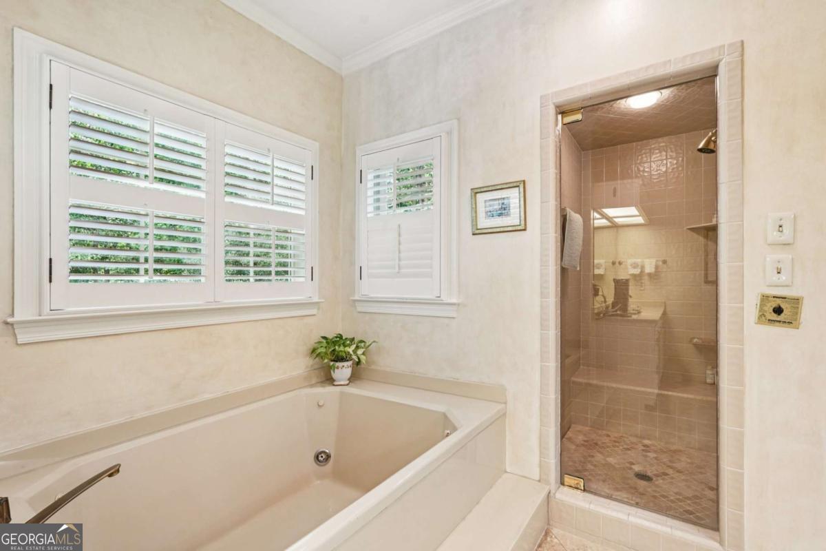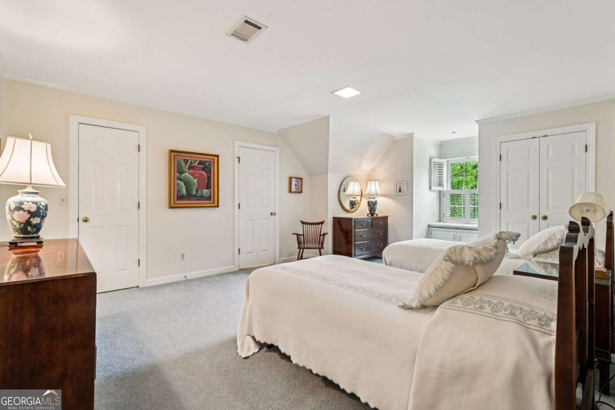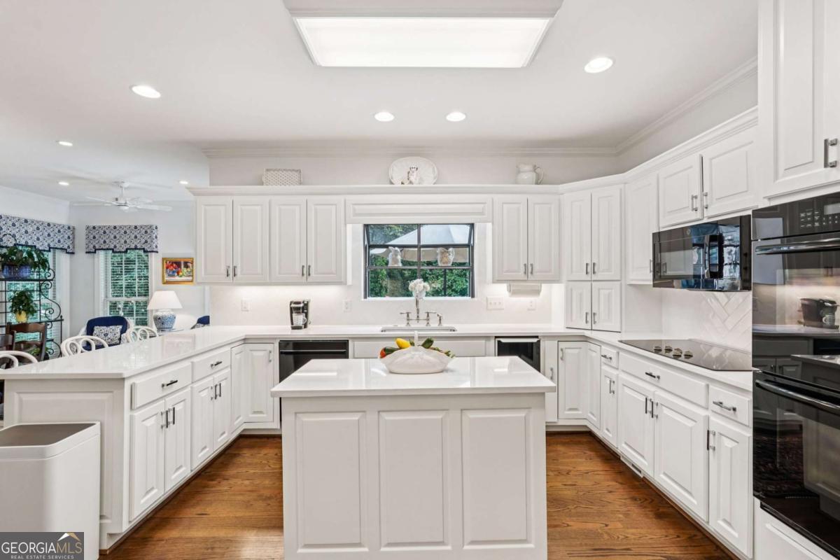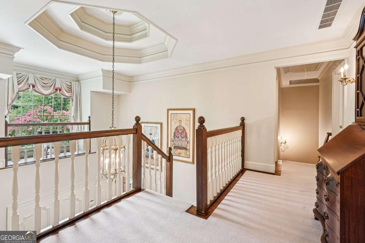Resort-style living in the heart of Sandy Springs! This timeless European-style home is tucked away on a quiet cul-de-sac and offers 1.3 private acres with a heated saltwater pool, greenhouse, and turf side yard. A two-story foyer welcomes you into a bright, open layout. The updated kitchen features white cabinetry, quartz countertops, double ovens, two pantries, and a large island, opening to a sun filled keeping room. The vaulted family room boasts a brick fireplace, custom built-ins, and a chic beverage bar with storage and wine fridge. The main-level primary suite is a true retreat with its own fireplace, deck access, dual vanities, whirlpool tub, and steam shower. Formal living and dining rooms, a private home office, two half baths, and a spacious laundry room complete the main floor. Upstairs, generously sized bedrooms all have walk-in closets, while the finished basement offers a large rec room, fireplace, kitchenette, gym, bedroom, full bath, and a covered terrace overlooking the pool. Perfect for entertaining, the outdoor spaces feature a resort-style pool, expansive deck, and peaceful garden areas. Ideally located minutes from Chastain Park, The Battery, shopping, dining, hospitals, top schools, and major highways, this home blends space, privacy, and convenience in one of Sandy Springs most desirable locations.