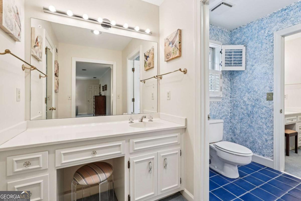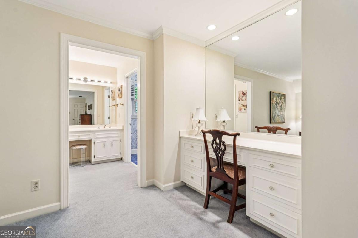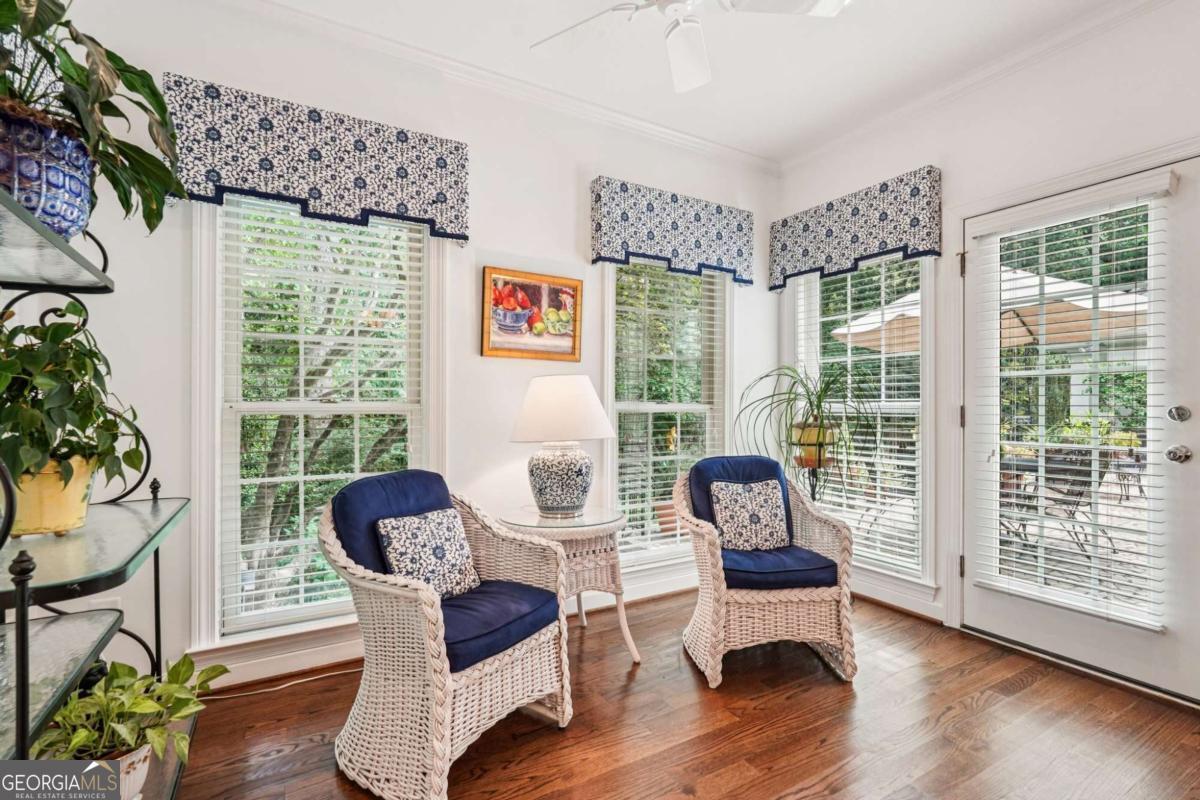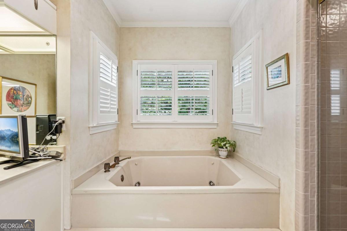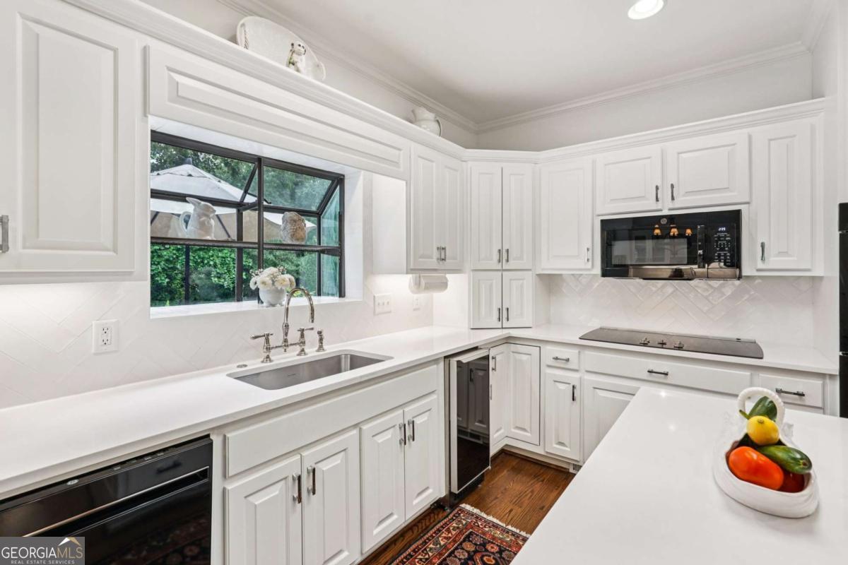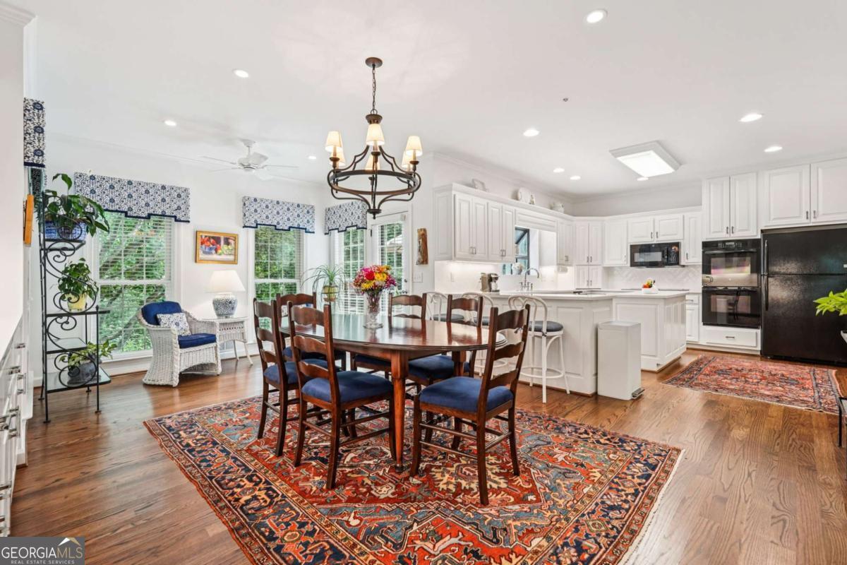 Resort-style living in the heart of Sandy Springs! This timeless European-style home is tucked away on a quiet cul-de-sac and offers 1.3 private acres with a heated saltwater pool, greenhouse, and turf side yard. A two-story foyer welcomes you into a bright, open layout. The updated kitchen features white cabinetry, quartz countertops, double ovens, two pantries, and a large island, opening to a sun filled keeping room. The vaulted family room boasts a brick fireplace, custom built-ins, and a chic beverage bar with storage and wine fridge. The main-level primary suite is a true retreat with its own fireplace, deck access, dual vanities, whirlpool tub, and steam shower. Formal living and dining rooms, a private home office, two half baths, and a spacious laundry room complete the main floor. Upstairs, generously sized bedrooms all have walk-in closets, while the finished basement offers a large rec room, fireplace, kitchenette, gym, bedroom, full bath, and a covered terrace overlooking the pool. Perfect for entertaining, the outdoor spaces feature a resort-style pool, expansive deck, and peaceful garden areas. Ideally located minutes from Chastain Park, The Battery, shopping, dining, hospitals, top schools, and major highways, this home blends space, privacy, and convenience in one of Sandy Springs most desirable locations.