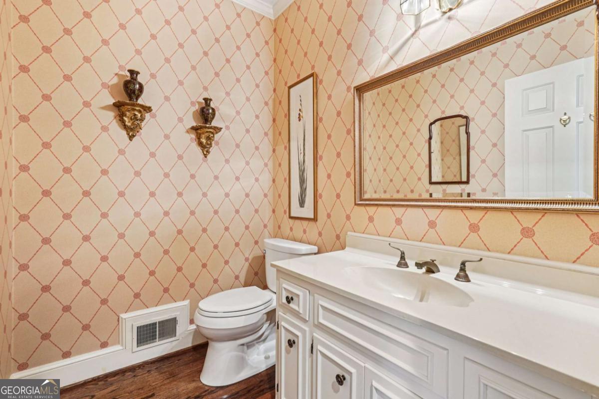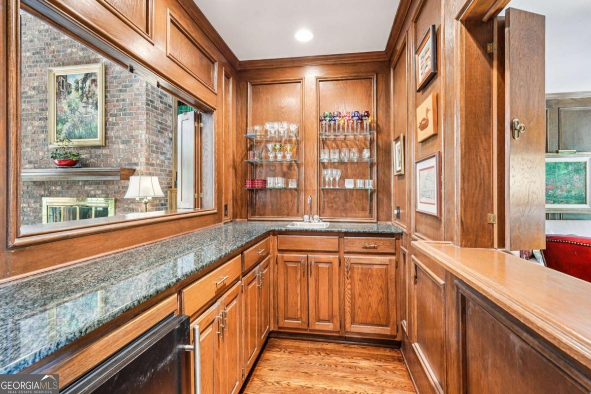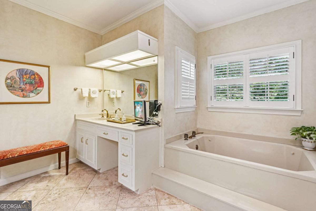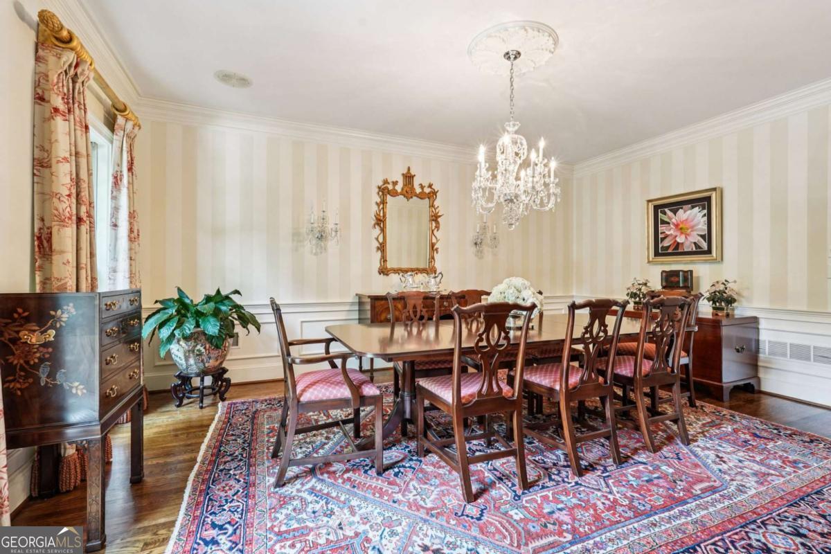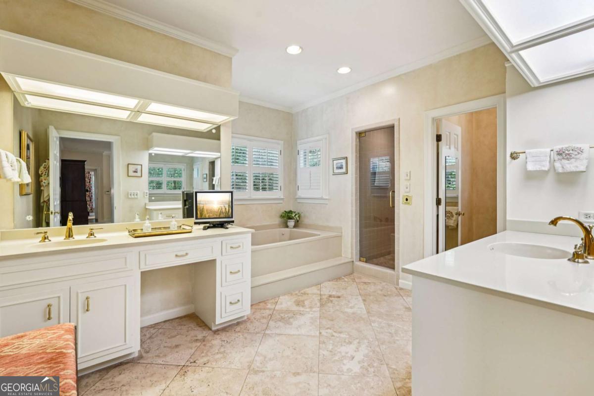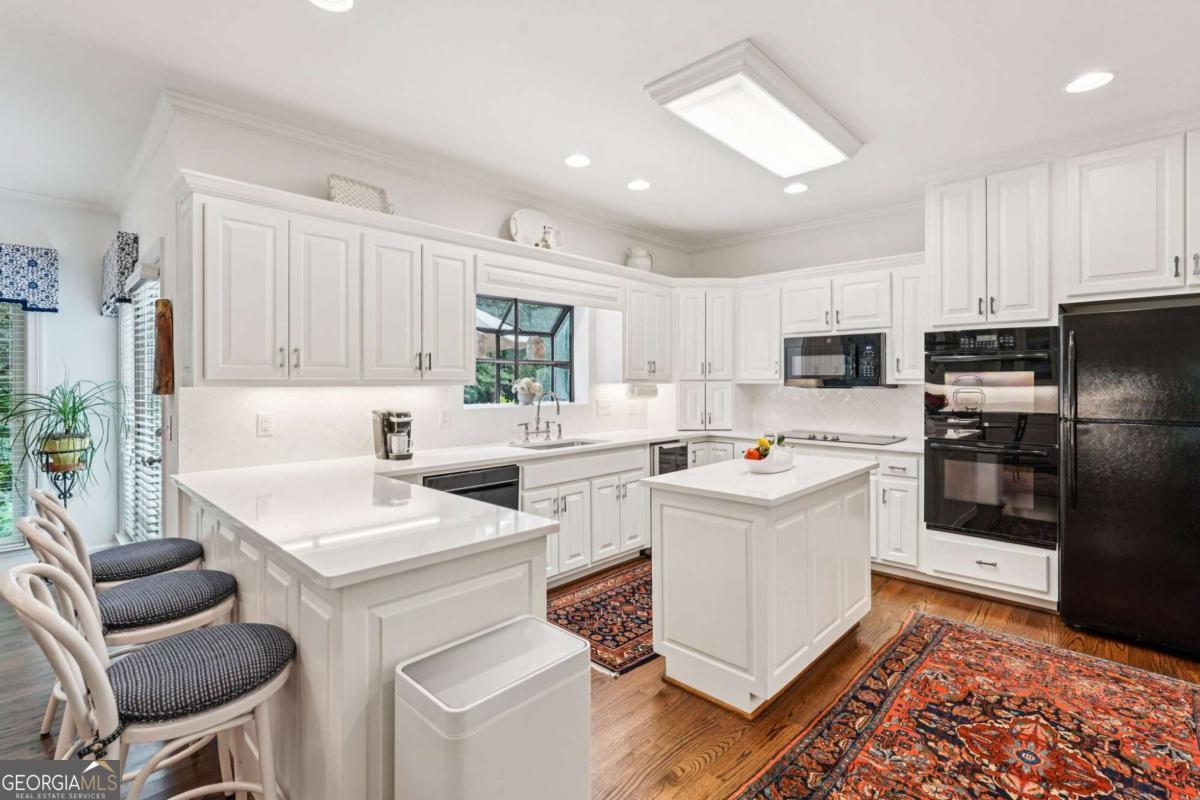 Resort-style living in the heart of Sandy Springs! This timeless European-style home is tucked away on a quiet cul-de-sac and offers 1.3 private acres with a heated saltwater pool, greenhouse, and turf side yard. A two-story foyer welcomes you into a bright, open layout. The updated kitchen features white cabinetry, quartz countertops, double ovens, two pantries, and a large island, opening to a sun filled keeping room. The vaulted family room boasts a brick fireplace, custom built-ins, and a chic beverage bar with storage and wine fridge. The main-level primary suite is a true retreat with its own fireplace, deck access, dual vanities, whirlpool tub, and steam shower. Formal living and dining rooms, a private home office, two half baths, and a spacious laundry room complete the main floor. Upstairs, generously sized bedrooms all have walk-in closets, while the finished basement offers a large rec room, fireplace, kitchenette, gym, bedroom, full bath, and a covered terrace overlooking the pool. Perfect for entertaining, the outdoor spaces feature a resort-style pool, expansive deck, and peaceful garden areas. Ideally located minutes from Chastain Park, The Battery, shopping, dining, hospitals, top schools, and major highways, this home blends space, privacy, and convenience in one of Sandy Springs most desirable locations.