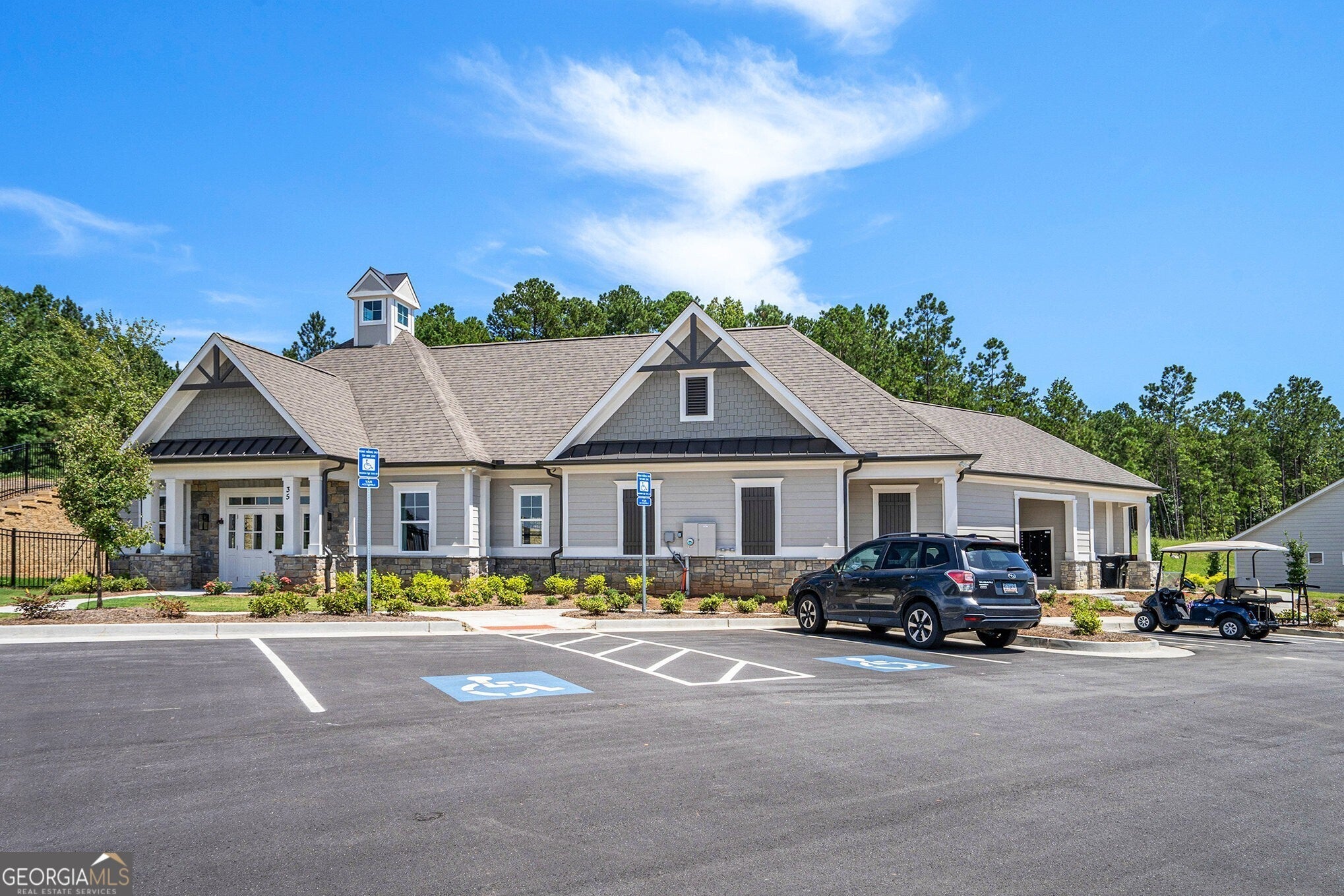 Welcome to Heritage Pointe at The Georgian, a 55+ Gated Golf Course Community! Perfectly situated next to The Frog Golf Club, a premier Tom Fazio-Designed Course, this neighborhood offers Golf Enthusiasts the chance to enjoy one of Georgia's Top-Ranked Courses right in their own backyard. Step inside to find Light-Filled Tall Ceilings, Hardwood Floors, and Crown Molding Details. The Open Concept Living flows seamlessly into the Heart of the Home the Gourmet Kitchen. Complete with Custom Cabinets, Granite Countertops, Stainless Steel Appliances, and an Oversized Island, it's ideal for Casual Meals or a cozy Breakfast. A massive Walk-In Pantry adds even more convenience. The Family Room centers around a Gas Fireplace and opens to the Covered Back Porch perfect for quiet mornings or evening sunsets. Laundry is conveniently located just off the Kitchen. The Primary Bedroom on the Main features a High Trey Ceiling, Sitting Area, Huge Walk-In Closet, and a Private Door to the Back Porch. The Ensuite Bath offers a Large Shower and Vanity for a relaxing retreat. A spacious Secondary Bedroom with a Full Bath is ready for your Guests or Family. Upstairs, you'll find a Finished Bonus Space with a Full Bath great for a Study, Office, or Guest Suite. Outside, the Backyard is just the right size for Grilling Out or Lounging under the Covered Porch. Heritage Pointe also connects you to The Georgian's Resort-Style Amenities, including Walking Trails, Tennis Courts, Playgrounds, and a Junior-Olympic Pool. Enjoy the best of both worlds peaceful, adult-focused spaces and access to a vibrant, active lifestyle you'll be proud to call home. Heritage Pointe isn't just a place to live it's a Community designed for an exceptional 55+ Lifestyle.