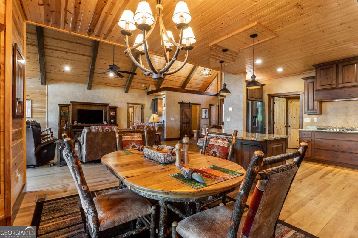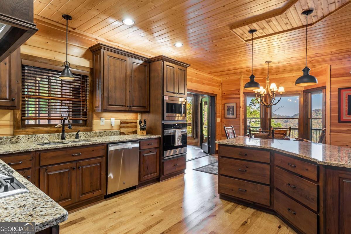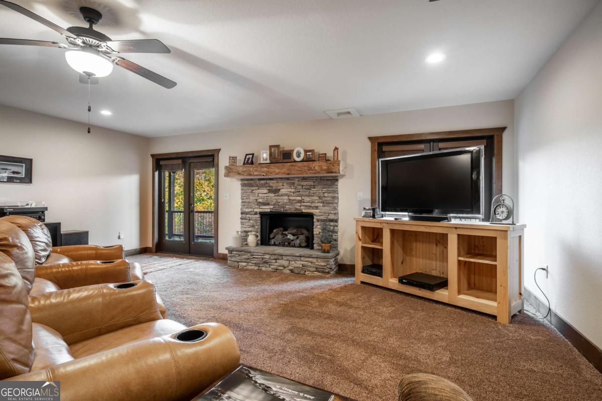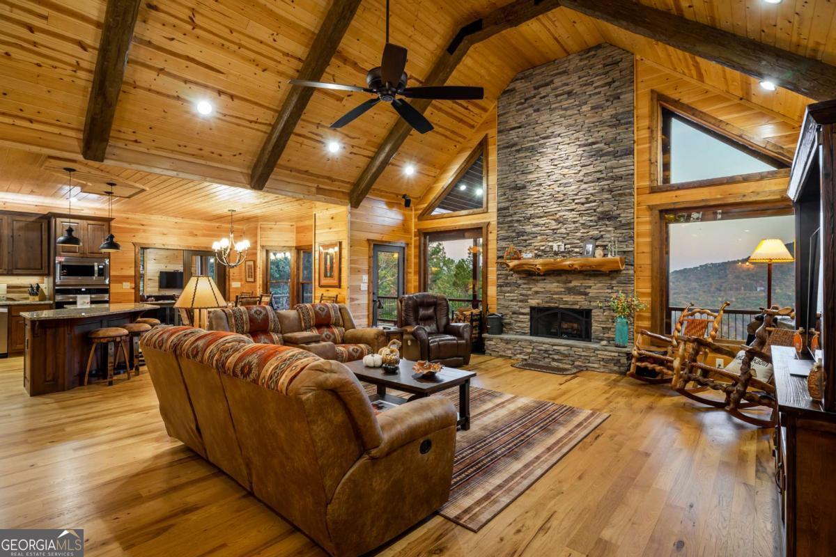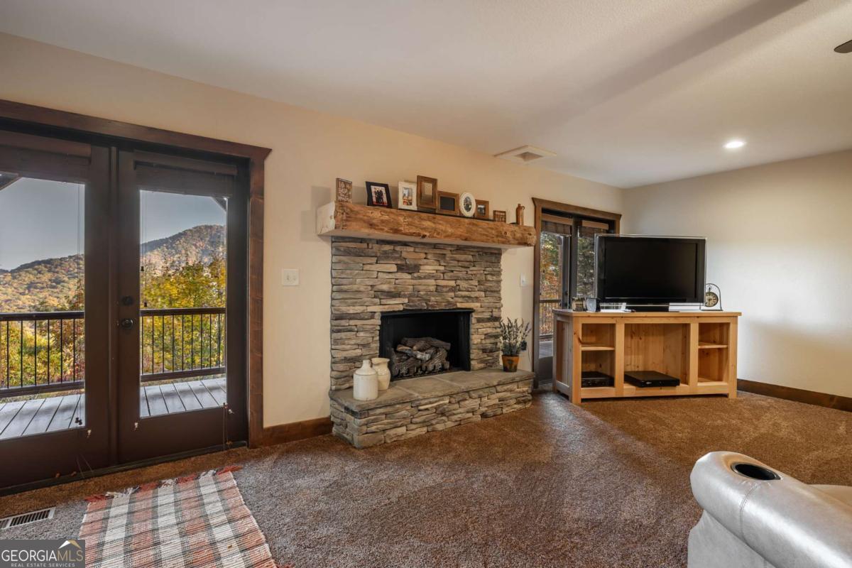 This mountainside retreat, built in 2018 by Brown Haven Homes, blends luxury, comfort, and potential on nearly 2 private acres with sweeping long-range views. With over 4,000 sq ft of living space, the home is designed for both relaxation and entertaining, featuring vaulted ceilings, floor-to-ceiling windows, and a striking stone fireplace in the great room. The kitchen flows seamlessly into a bright sunroom with its own fireplace and walls of windows, creating a perfect spot to unwind or host in every season. Multiple decks, a covered porch, and a hot tub extend the living space outdoors, where the mountain vistas set the backdrop for unforgettable moments. The main level owner's suite offers vaulted ceilings, a spa-like bath with double vanities, soaking tub, and large shower, plus private porch access for early morning coffee with a view. The terrace level adds even more space, complete with a fireplace and a flexible open design ready to be transformed into a game room, theater, or entertainment hub. Additional features include a handicap-accessible ramp, attached garage, and plenty of room to envision and create. Best of all, this property is just minutes from downtown Blue Ridge-one of the area's most desirable destinations for fine dining, boutique shopping, and vibrant tourism-as well as Lake Blue Ridge, local wineries, golf, hiking, and all the adventures that mountain living has to offer. Move in and enjoy immediately, or add your own touches to elevate this exceptional property into a true legacy home.