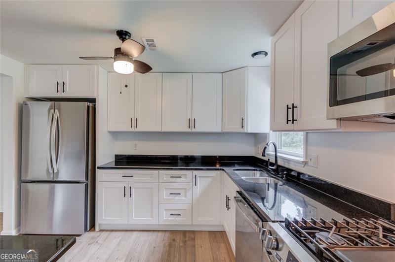 This move-in ready, beautifully renovated 3-bedroom, 2-bathroom home offers modern living space, thoughtfully updated from top to bottom. Enjoy a brand-new roof, new gutters, and a new garage door, along with fresh LVP and tile flooring throughout. The kitchen is a true highlight, featuring new cabinets, stainless steel appliances, and stylish finishes perfect for everyday living and entertaining. Bathrooms and bedrooms have been completely updated with modern touches, while new light fixtures and ceiling fans add a bright, contemporary feel.