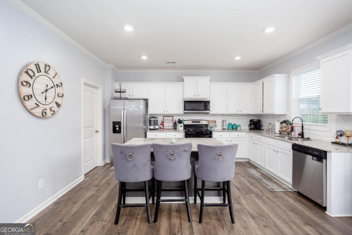 Discover the spacious Hanover plan in the sought-after Sienna Forest community-featuring an unfinished basement and located just minutes from downtown Dallas, Lake Acworth, Kennesaw Mountain, and highways 120 and 278. Step inside to find a welcoming family room with a cozy corner fireplace and a chef-inspired kitchen complete with white cabinetry, crown molding, granite countertops, subway tile backsplash, a large island, and stainless steel appliances. A guest bedroom with a full bath is conveniently located on the main floor. Upstairs, enjoy a versatile loft space perfect for relaxing, working, or entertaining, along with a dedicated laundry room. The luxurious primary suite boasts an oversized walk-in closet, a dual-sink vanity, soaking tub, and separate shower. Designed with Smart Home Technology, this home blends modern convenience with timeless style. Additional highlights include soaring 9-foot ceilings, waterproof laminate vinyl flooring on the main level, elegant crown molding, and a grand entryway. The fully fenced backyard offers privacy and plenty of room for outdoor living. Whether you're hosting guests or enjoying quiet evenings at home, this property has it all. Ideally situated near shopping, dining, outdoor recreation, and entertainment, this stunning home offers the perfect combination of comfort, function, and location. Schedule your private tour today and make it yours!