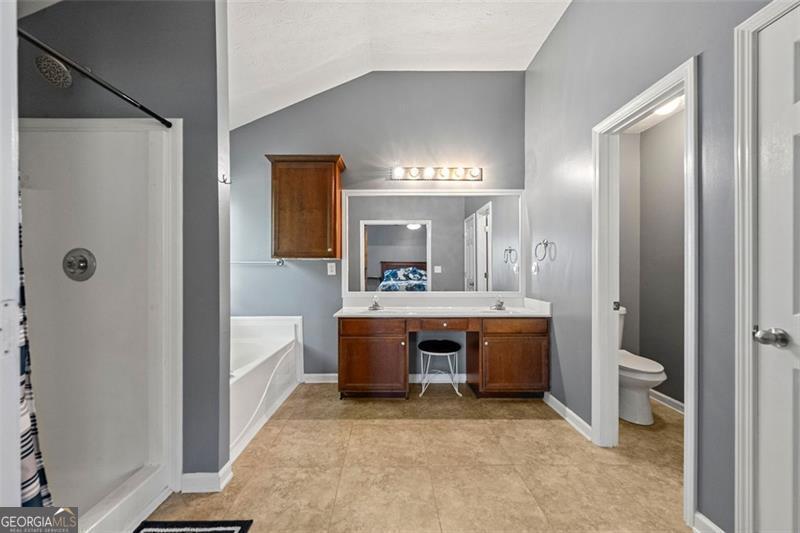 - Interior FeaturesPulldown Attic Stairs, Bookcases, Double Vanity, Master On Main Level, Soaking Tub, Separate Shower, Vaulted Ceiling(s), Walk-In Closet(s)