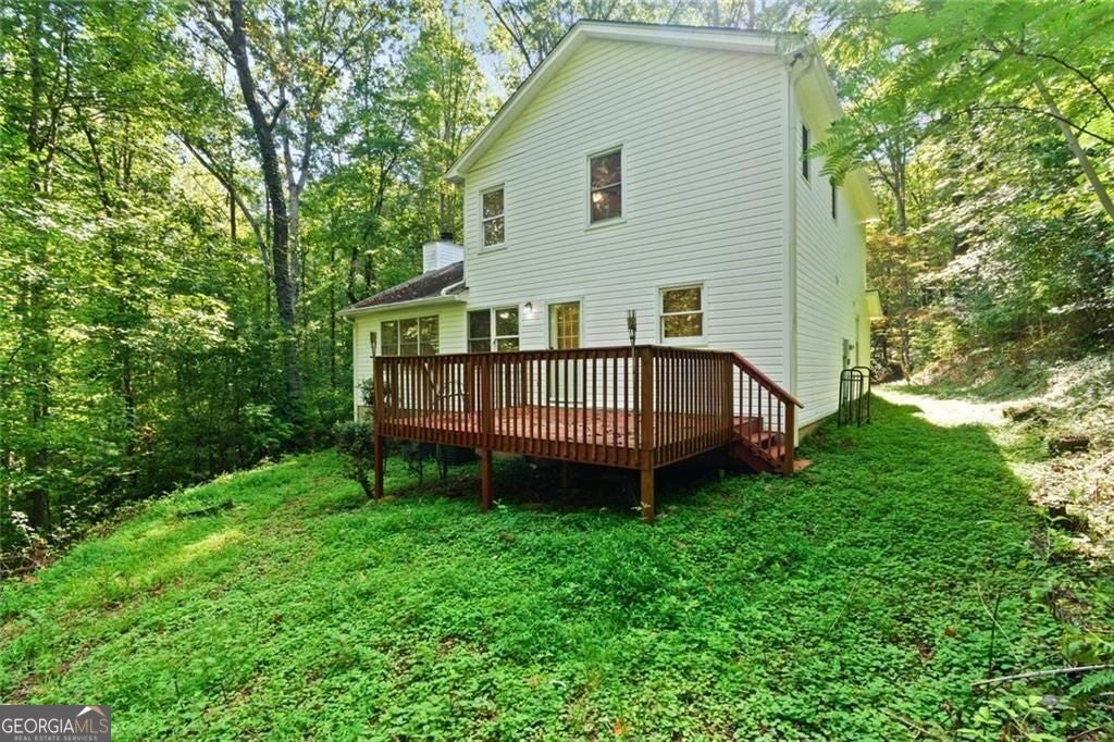 NEW PRICE - Your Dahlonega Dream Home Awaits! Fall in love with the peaceful charm of Dahlonega living in this move-in ready sanctuary, ideally situated on over 2 wooded acres in the desirable Martins Grove community. Enjoy a rare blend of tranquil seclusion and unbeatable convenience-just 6 minutes from Downtown Dahlonega, the University of North Georgia, and local wineries. The open-concept main level is bathed in natural light, featuring a bright living area with a stone fireplace, dining space, and a well-appointed kitchen. Step outside to relax or entertain on the spacious back deck, beautifully surrounded by trees. A versatile main-level suite with a private entrance is perfect for guests, in-laws, or a dedicated home office. Upstairs, the primary suite offers serene views of the trees and a full ensuite bath. Two additional bedrooms and a hall bath provide ample space for family or visitors. Recent updates, including fresh interior paint, new lighting, and ceiling fans, ensure you can move right in and immediately embrace the mountain lifestyle. This charming retreat is free from the constraints of an HOA or rental restrictions, making it an ideal full-time residence or a savvy investment property. Homes in this highly sought-after area are rarely available, especially at this price. Come see why this exceptional property feels like home the moment you arrive!