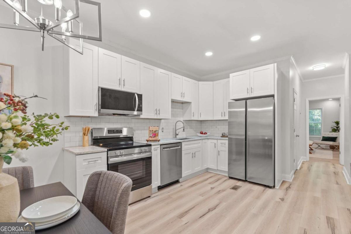 Welcome to this beautifully renovated 4 bedroom, 2.5 bath retreat perfectly situated just steps from the Proctor Creek Trail and the expansive Westside Park at Bellwood Quarry, with all the dining, shopping, and nightlife of West Midtown only minutes away. Inside, an open-concept living, dining, and kitchen area creates the ideal space for both entertaining and everyday living. The stunning kitchen features crisp white shaker cabinets, gleaming quartz countertops, and brand-new stainless steel appliances. The main level offers a spacious owner's suite with a private bath, along with a second bedroom and convenient half bath. A separate laundry/mudroom complete with washer and dryer adds to the home's functionality. Upstairs you'll find two additional bedrooms and a full bath, providing plenty of space for family, guests, or even a roommate. Outdoors, the home sits on a serene, wooded green lot with fresh sod and new landscaping out front that makes for a welcoming curb appeal. Affordable, stylish, and move-in ready, this home is your chance to enjoy one of Atlanta's fastest-growing communities with parks, trails, and vibrant city living right at your doorstep
