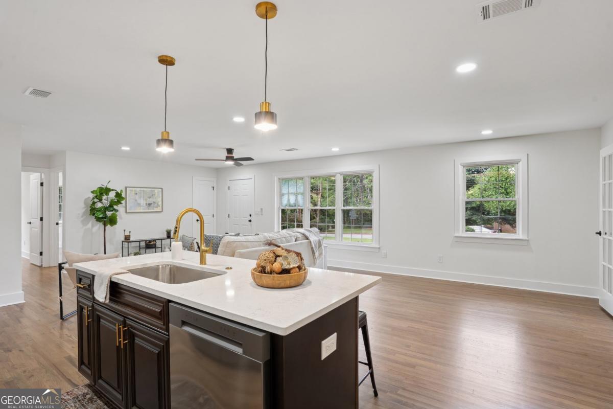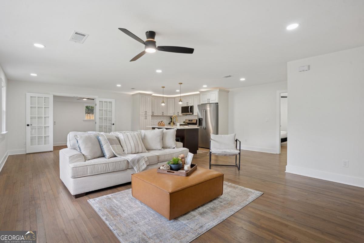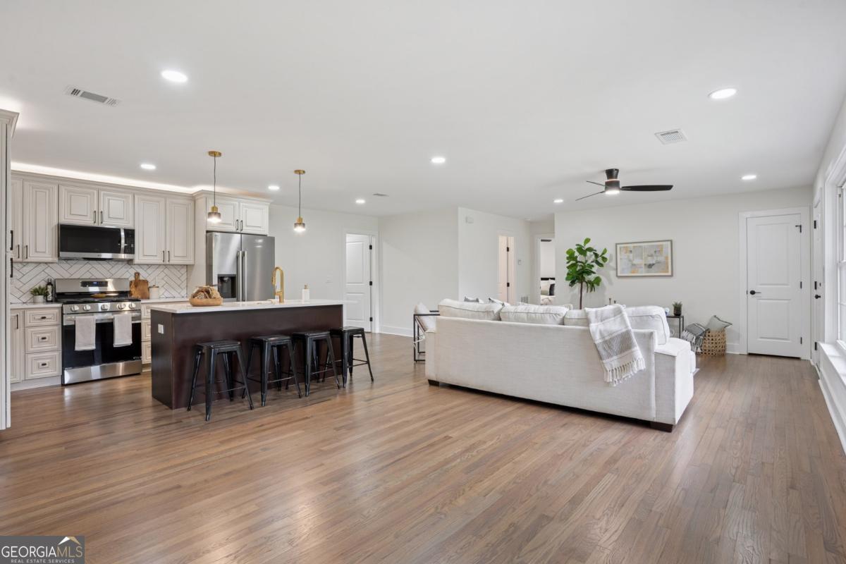 Welcome to this stunning 4-bedroom, 2-bathroom ranch-style home, thoughtfully renovated with modern elegance and comfort in mind. From the moment you step inside, you'll be greeted by an open floor plan that flows seamlessly, perfect for both everyday living and entertaining guests. The chef's kitchen is the heart of the home, featuring high-end appliances, sleek countertops, custom cabinetry, and an island that invites family and friends to gather. Every detail has been carefully designed, from the stylish lighting fixtures to the timeless flooring that carries throughout the space. The spacious owner's suite offers a private retreat with a beautiful bathroom, while three additional bedrooms provide plenty of room for family, guests, or a home office. Both bathrooms boast luxurious finishes and thoughtful touches that make daily routines feel like a spa experience. Step outside to enjoy the private backyard, perfect for relaxing or entertaining. With its modern updates, designer finishes, and single-level living, this home is truly move-in ready. Don't miss the opportunity to make this beautifully renovated ranch your new home!