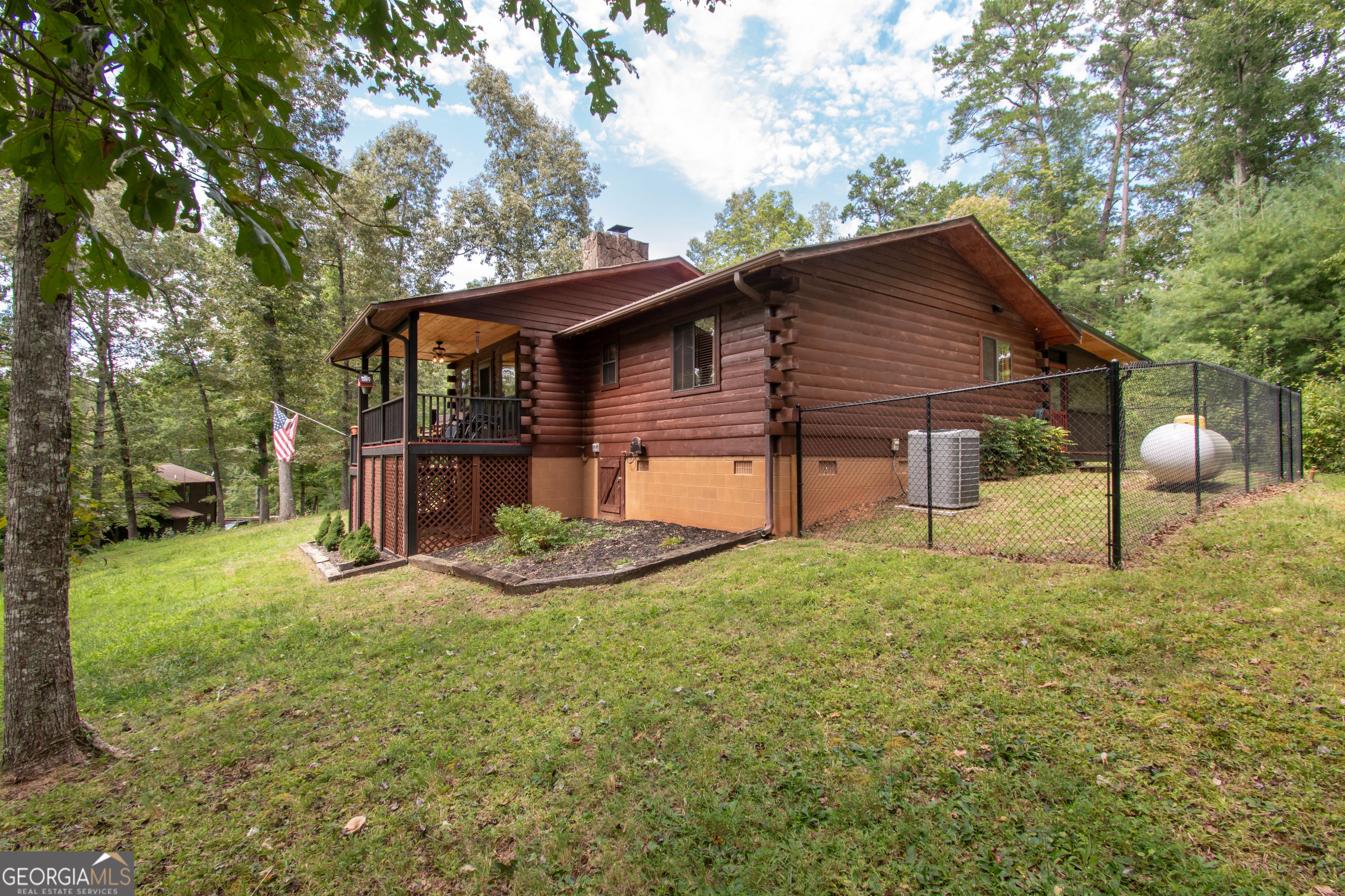 Welcome to your mountain retreat! This furnished beautiful 2-bedroom, 2-bathroom log cabin offers the perfect blend of rustic charm and modern updates. Situated on a large, level lot, you'll enjoy a fully fenced backyard ideal for pets or play, and a massive screened-in back porch that's perfect for entertaining year-round. Step inside to discover an open-concept living, kitchen, and dining area with warm wood accents and plenty of natural light. The updated bathrooms add a modern touch, while the abundance of closets and a cozy den/family room provide ample storage and flexible living space. Enjoy relaxing mornings or evenings on the wrap-around front deck and porch, taking in the peaceful surroundings. Parking is no issue with a 2-car attached garage, additional 2-car detached carport, and a storage building for all your tools and toys. Located just minutes from downtown Murphy, Tri-County Community College, Erlanger Hospital, and the renowned John C. Campbell Folk School-this property offers convenience with a country feel. Don't miss this one-of-a-kind mountain getaway!