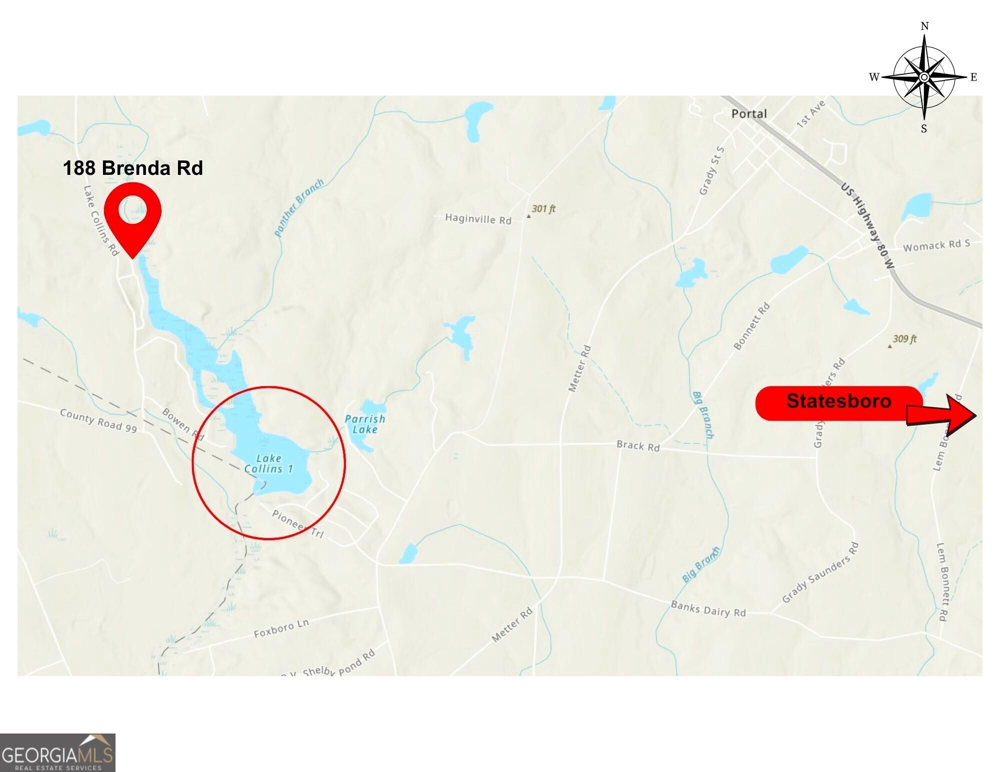 Enjoy water rights and Year-Round recreation at the Beautiful Lake Collins in Portal GA. This 214 Acre Lake has been in existence since the late 1800s and has some of the best Fishing and Duck Hunting in the County with an abundance of Wildlife, seasonal Duck Holes, secluded pockets of Water, well developed access points and gorgeous Views. 188 Brenda Rd has a total of .75 Acre, Deep Water Access, Community Water Utility, an old M/H with large Screened Porch, a Dock that can be restored already on the Property, two Driveways in place and there are existing Septic Tanks on Lots 13 & 14, which can be grandfatherd in with the Lots of Record. Lake Collins is quiet, serene and home to Sun-drenched cypress knees, glassy, still water with beautiful reflections. Dam and Spillway Bridge recently restored after Hurricane Helene. Lake will be full again by end of Sept 2025. Come check it out, you wont have to worry about getting waxed at Lake Collins!