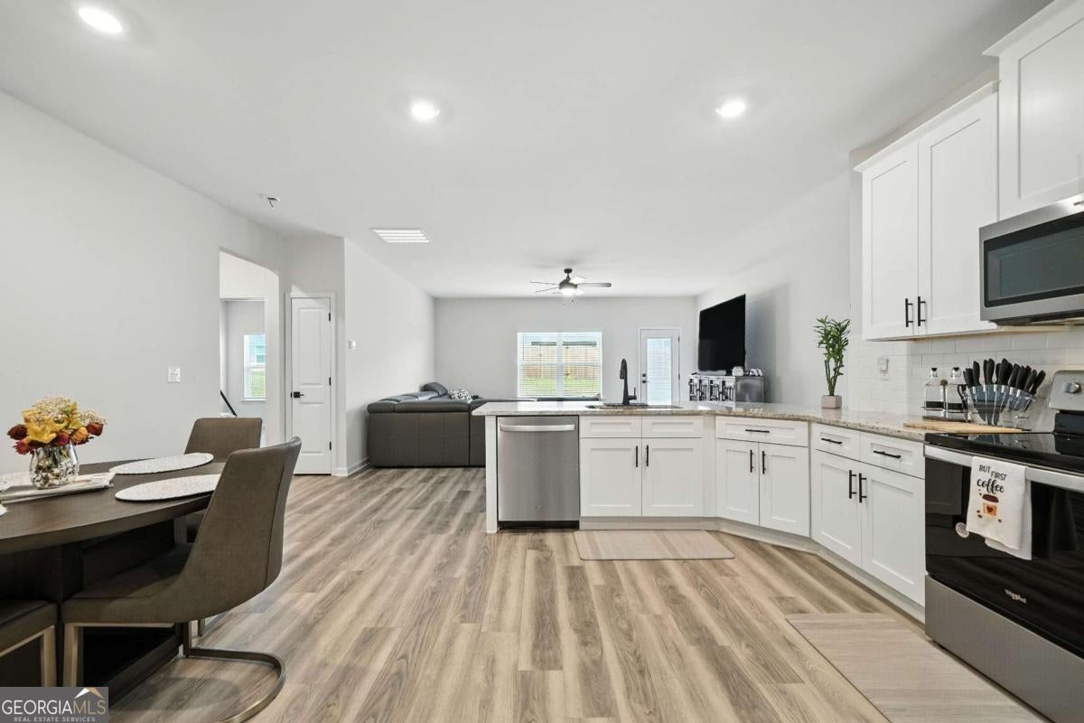Modern Comfort Meets Small-Town Charm in Bold Springs Farm! Welcome home to this beautifully designed 4-bedroom, 2-bath ranch located in the desirable Bold Springs Farm community in Dacula, GA. Built with care and meticulously maintained, this nearly new home offers the perfect balance of modern features and easy, single-level living. Step inside to an inviting open floor plan filled with natural light, highlighted by luxury vinyl flooring, soft carpeted bedrooms, and recessed lighting throughout. The heart of the home is the spacious kitchen featuring granite countertops, sleek cabinetry, and a large island perfect for casual meals or entertaining. Granite extends to the bathrooms as well, adding an elegant touch. The generous layout provides room for everyone, with four well-sized bedrooms, including a serene primary suite for your private retreat. Outside, enjoy a friendly and active community with fantastic amenities including a playground, basketball court, and pickleball court-all just steps from your front door. Whether you're relaxing at home or enjoying the neighborhood, this property offers the lifestyle you've been looking for-modern, low-maintenance living in a vibrant and growing area of Dacula. Preferred lender, Don Thelen, with Guaranteed Rate Affinity, will offer up to $2,500 in lender credit for closing costs, pre-paids, escrows or home warranty with approved offer. Conditions apply.