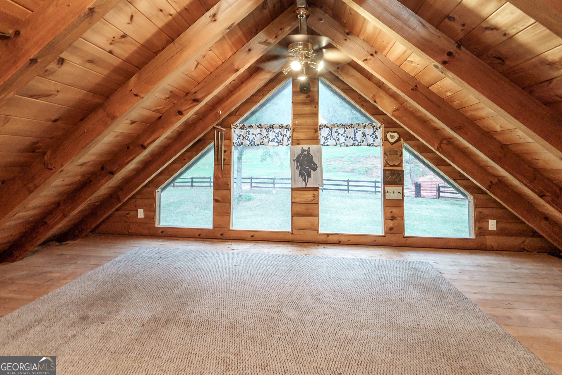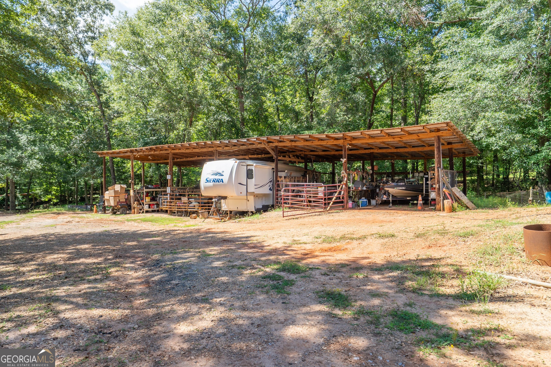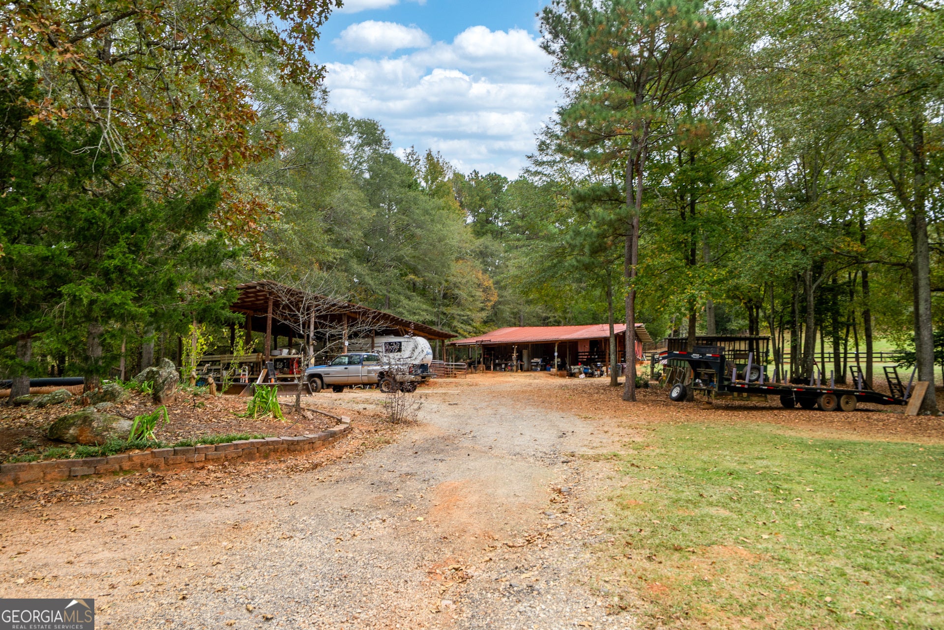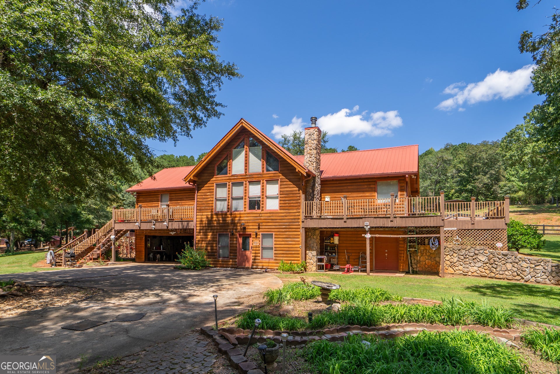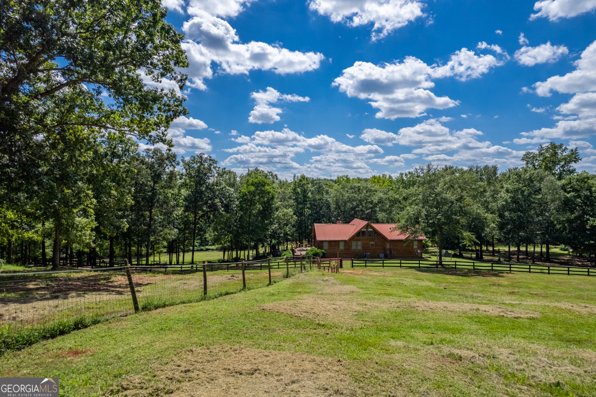Escape to your own private retreat with this stunning 3-bedroom, 3-bathroom log cabin nestled on 17.62 acres of picturesque land backing up to the serene Alcovy River. Designed with natural beauty and tranquility in mind, this home blends rustic charm with modern comforts-ideal for those seeking peace, space, and the perfect setting for horses or outdoor living. Step inside to find warm wood finishes, an open-concept living area, and plenty of natural light. The spacious floor plan includes a cozy stone fireplace, a well-appointed kitchen, and generous bedrooms with plenty of storage. Outside, the land speaks for itself. Most of the property is fully fenced-perfect for horses-and features both a 16x16 pole barn and a dedicated horse barn for your equestrian needs. Whether you're looking to ride, garden, entertain, or simply enjoy nature, this property offers endless possibilities. With direct river access, expansive views, and ample space to roam, this one-of-a-kind property is more than a home-it's a lifestyle.