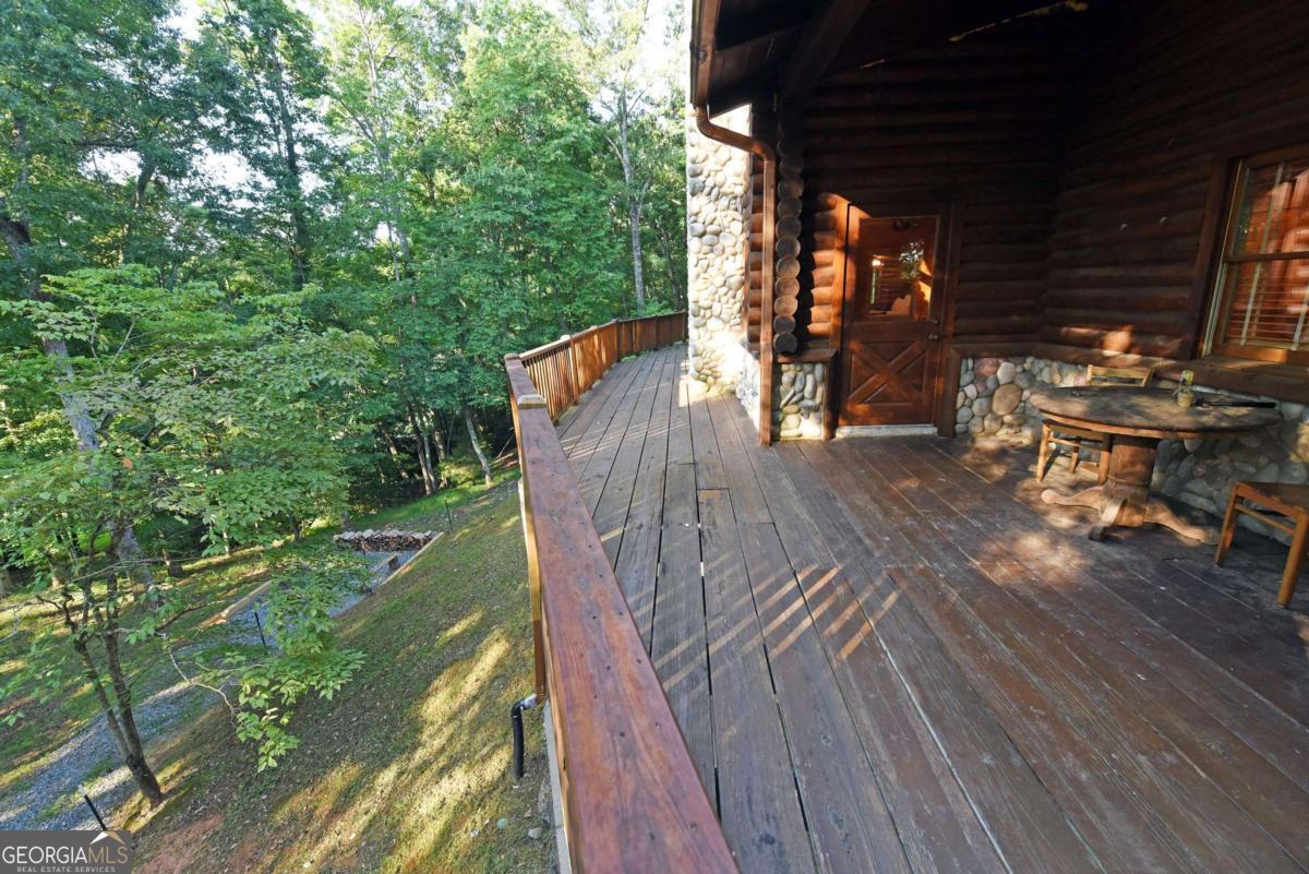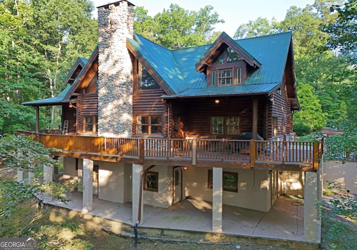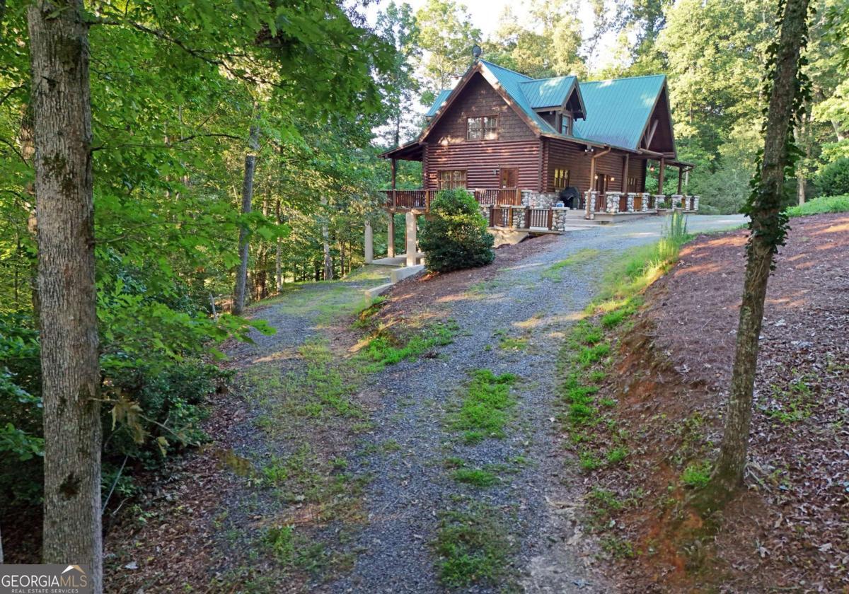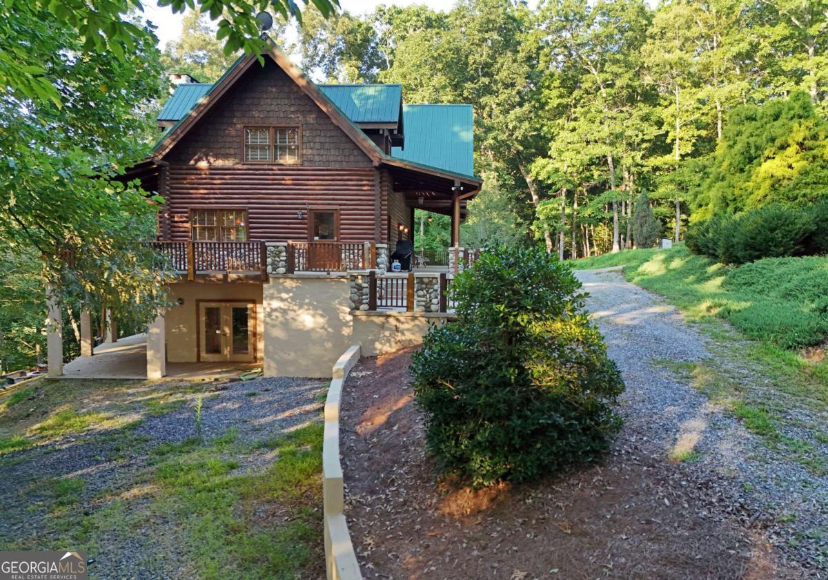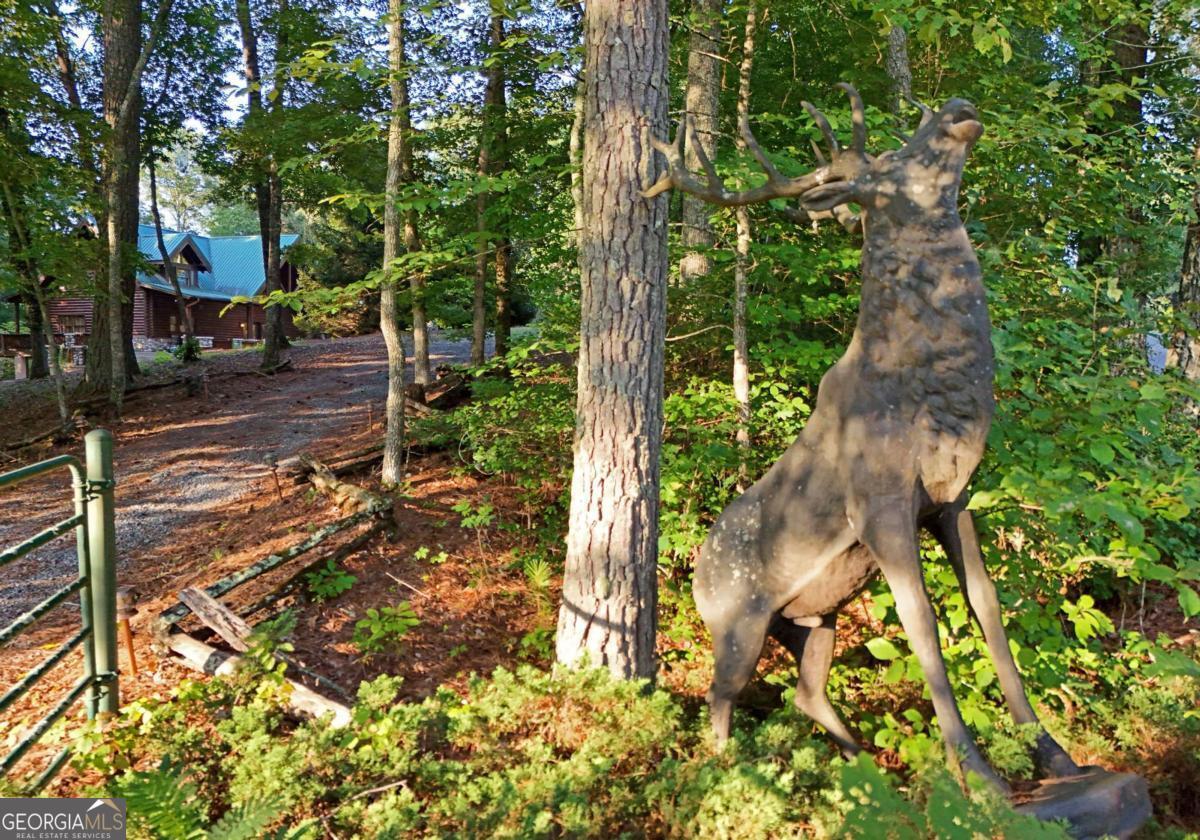 Let this majestic elk welcome you to your North Georgia Mountain getaway. This is the perfect property for those looking for a fulltime residence or an investment rental property. Paved road to property, circular driveway for easy access. The 1.5 acre lot is very close to town yet offers privacy and nice landscaping. Three bedrooms, 2.5 baths, spacious living room with majestic river rock fireplace, oak floors and easy access to wrap around decks. Dining room seats six. Home offers two exterior fireplaces, one on deck and another outdoor firepit. High vaulted ceilings, large windows, separate laundry room, all this and completely furnished and ready to move in. Basement offers opportunity to add additional living space (approx. 1530 sf), electric and plumbing in place.