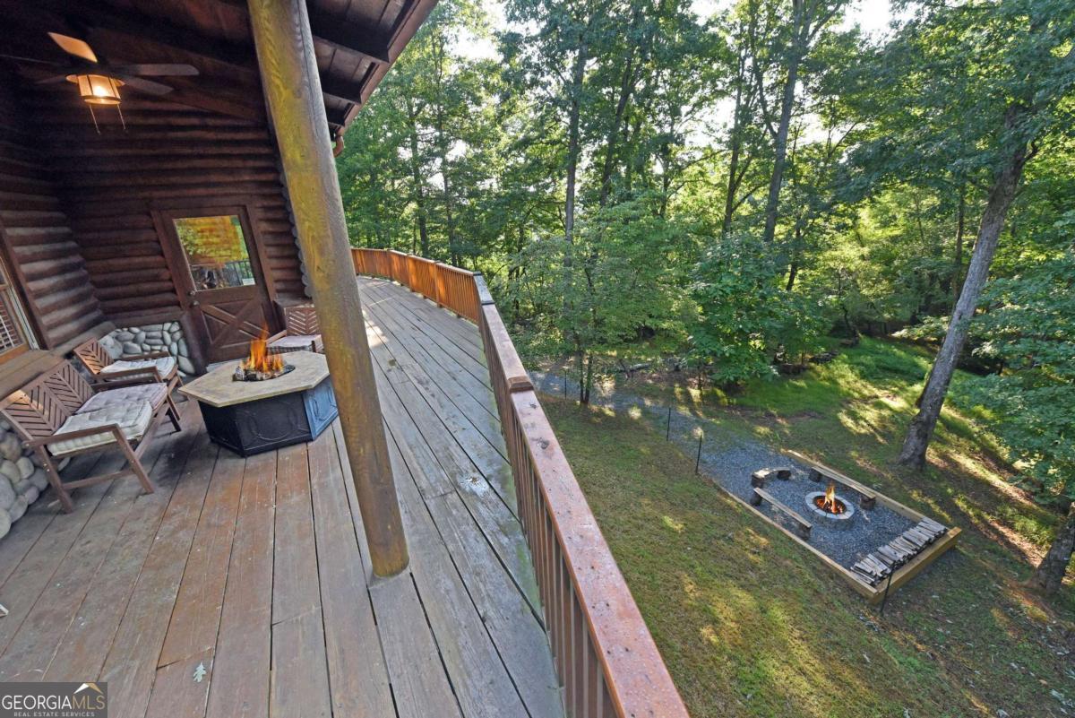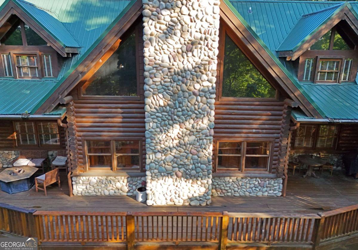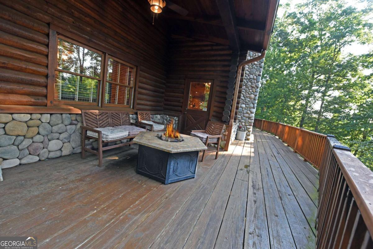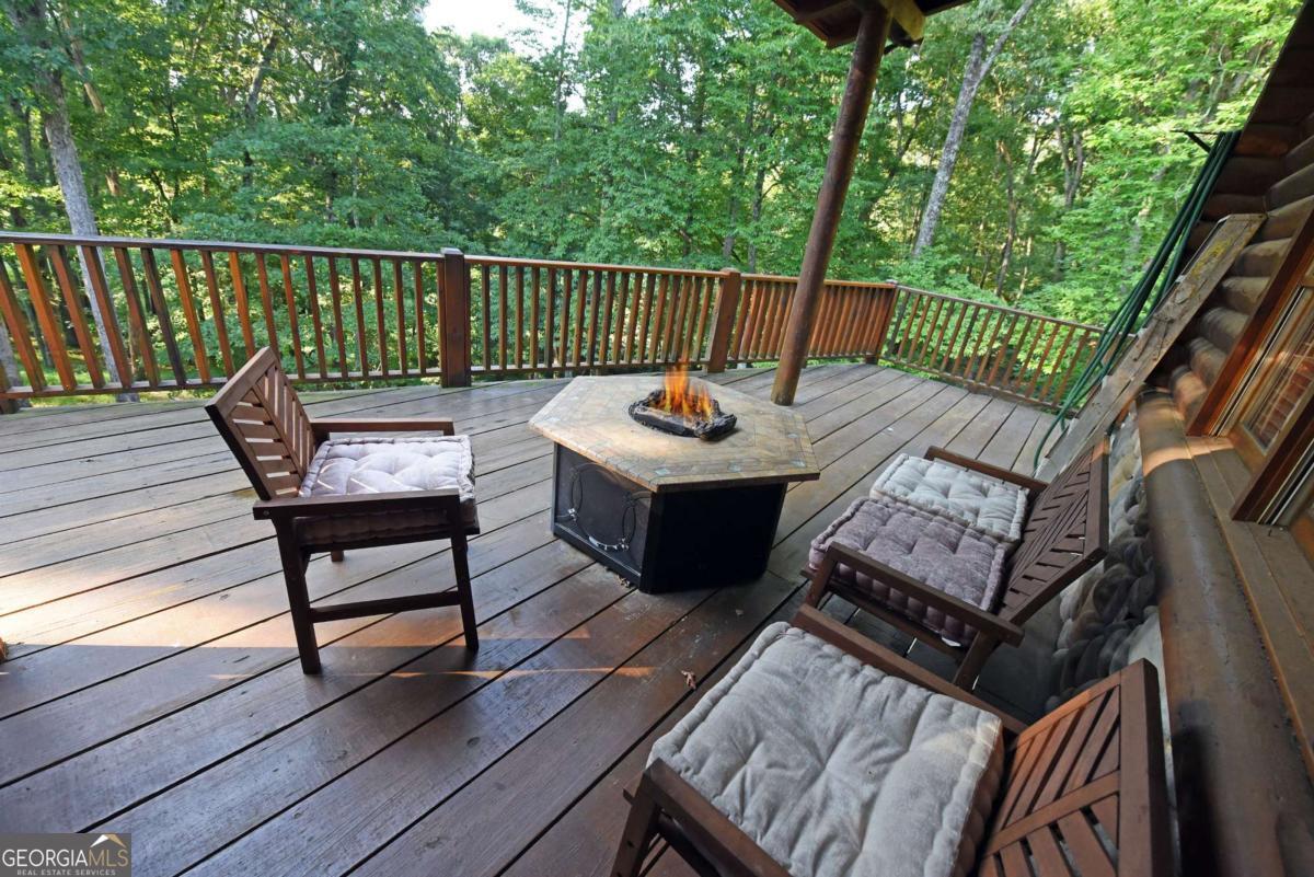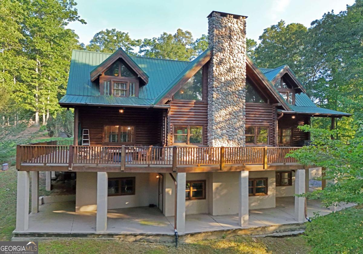 Let this majestic elk welcome you to your North Georgia Mountain getaway. This is the perfect property for those looking for a fulltime residence or an investment rental property. Paved road to property, circular driveway for easy access. The 1.5 acre lot is very close to town yet offers privacy and nice landscaping. Three bedrooms, 2.5 baths, spacious living room with majestic river rock fireplace, oak floors and easy access to wrap around decks. Dining room seats six. Home offers two exterior fireplaces, one on deck and another outdoor firepit. High vaulted ceilings, large windows, separate laundry room, all this and completely furnished and ready to move in. Basement offers opportunity to add additional living space (approx. 1530 sf), electric and plumbing in place.