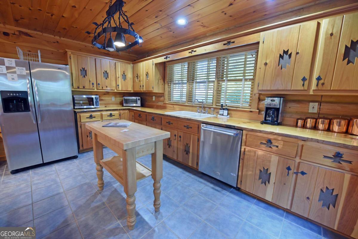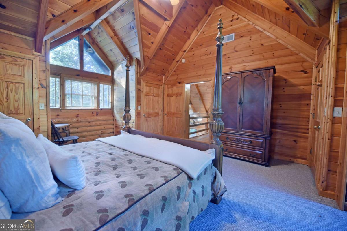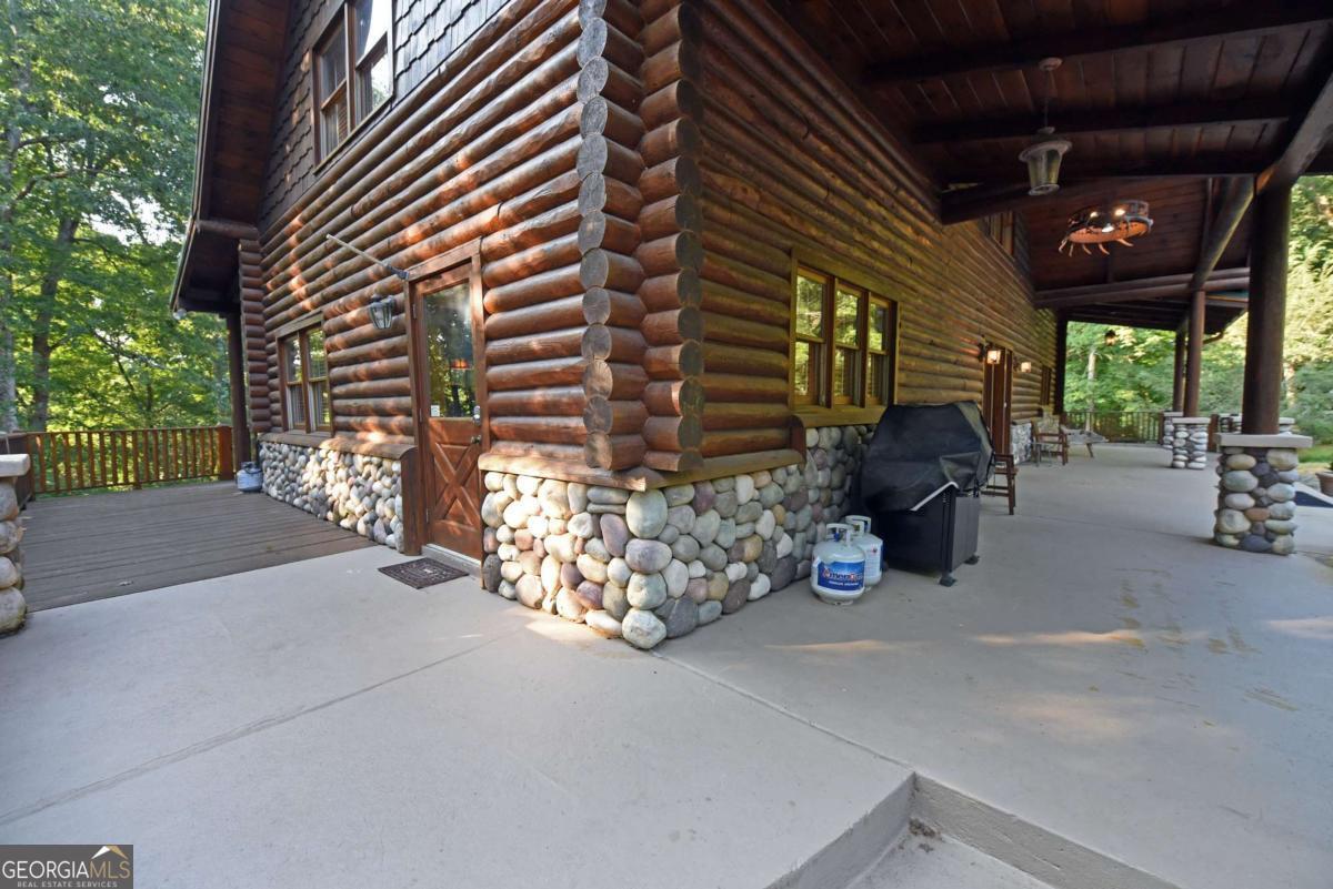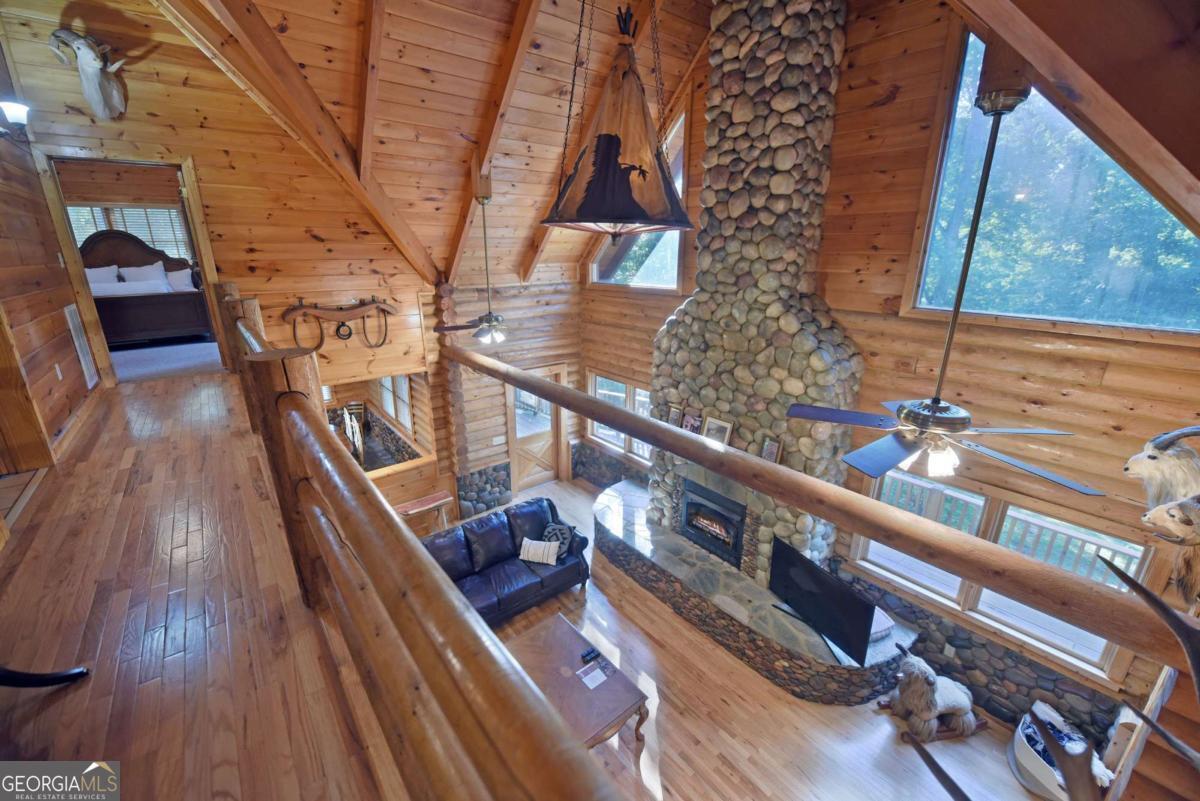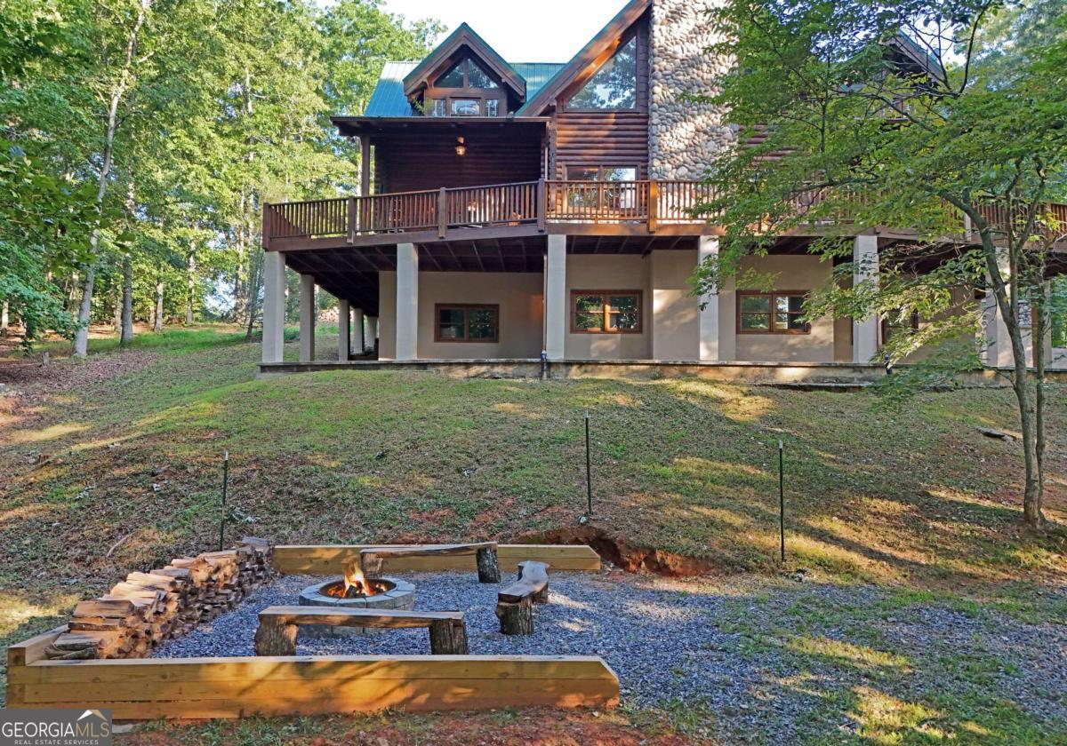 Let this majestic elk welcome you to your North Georgia Mountain getaway. This is the perfect property for those looking for a fulltime residence or an investment rental property. Paved road to property, circular driveway for easy access. The 1.5 acre lot is very close to town yet offers privacy and nice landscaping. Three bedrooms, 2.5 baths, spacious living room with majestic river rock fireplace, oak floors and easy access to wrap around decks. Dining room seats six. Home offers two exterior fireplaces, one on deck and another outdoor firepit. High vaulted ceilings, large windows, separate laundry room, all this and completely furnished and ready to move in. Basement offers opportunity to add additional living space (approx. 1530 sf), electric and plumbing in place.