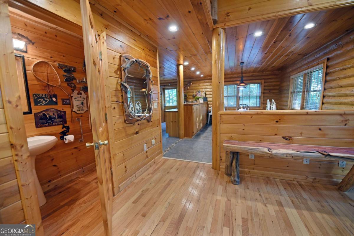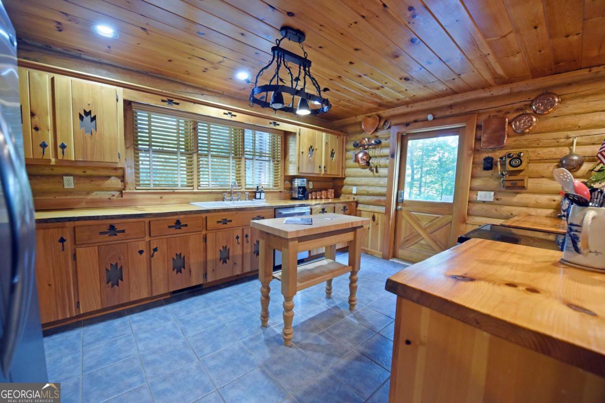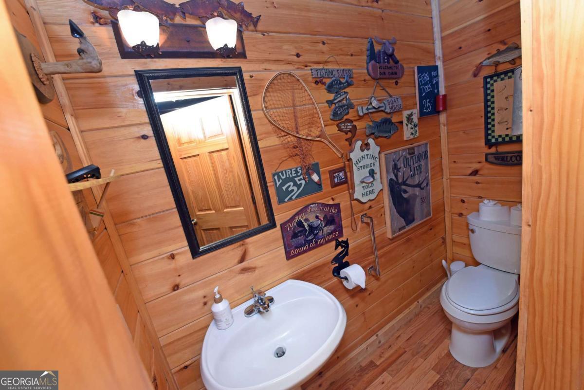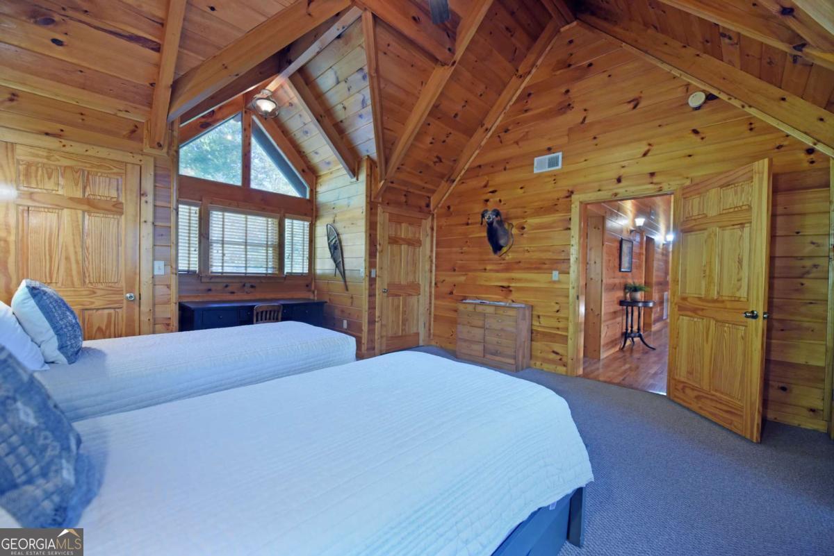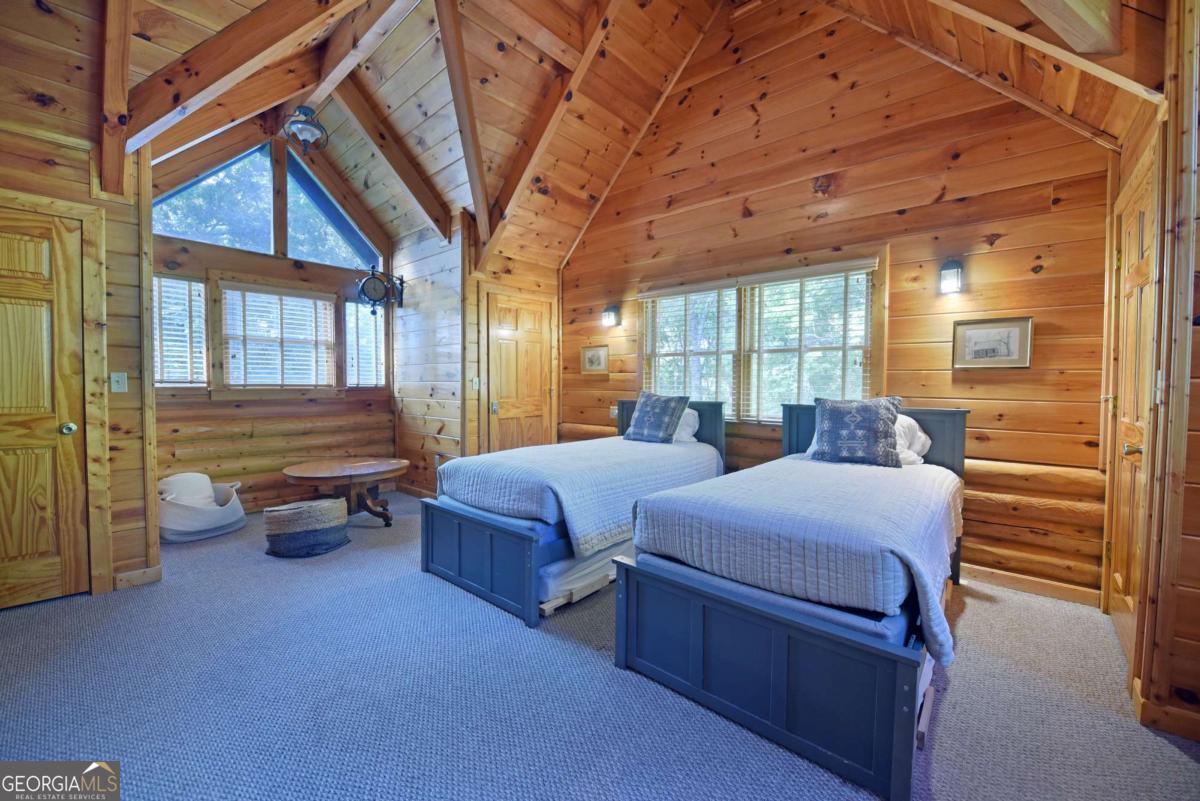 Let this majestic elk welcome you to your North Georgia Mountain getaway. This is the perfect property for those looking for a fulltime residence or an investment rental property. Paved road to property, circular driveway for easy access. The 1.5 acre lot is very close to town yet offers privacy and nice landscaping. Three bedrooms, 2.5 baths, spacious living room with majestic river rock fireplace, oak floors and easy access to wrap around decks. Dining room seats six. Home offers two exterior fireplaces, one on deck and another outdoor firepit. High vaulted ceilings, large windows, separate laundry room, all this and completely furnished and ready to move in. Basement offers opportunity to add additional living space (approx. 1530 sf), electric and plumbing in place.