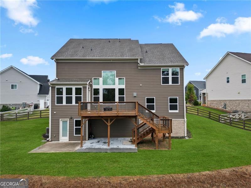 Located in North Forsyth County, a 2021 home in a cul-de-sac, a fenced backyard, and a finished basement! This home has 5 bedrooms and 5 1/2 bathrooms with a finished basement! The primary suite and 2 additional guest rooms have their own private en suite, providing plenty of space and privacy for a family or grandparents! Upgraded cabinetry and accent tile in the open kitchen! Also, the kitchen has upgraded GE Profile appliances, especially the GE Cafe' Quad Door refrigerator! A mudroom right off of the garage provides tons of storage space! The bright, sun-filled family room has oversized picture windows, giving you an amazing, private view of the naturally preserved area in the neighborhood. In the garage is a NEMA 14-50 outlet for your electric vehicle! A fenced-in backyard makes a great space for the kids and pets!