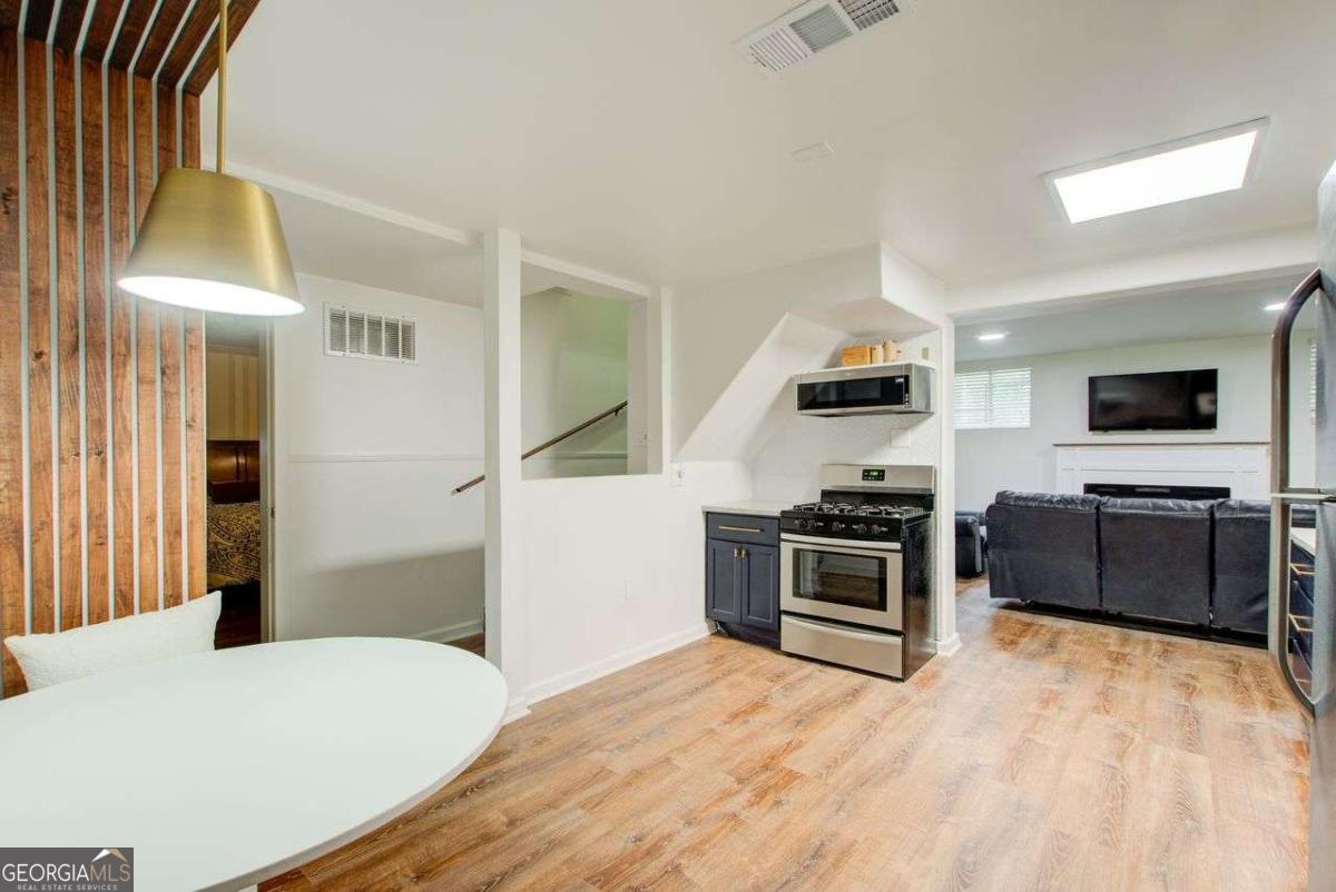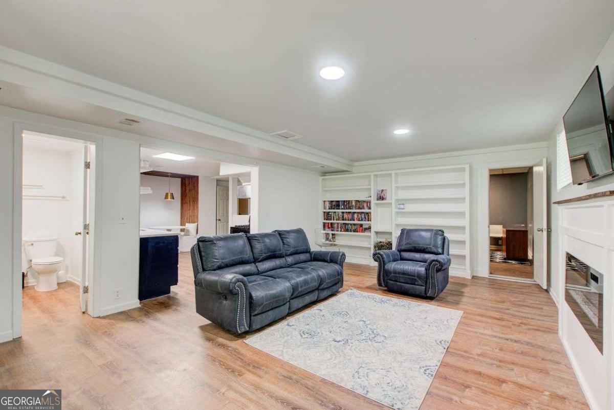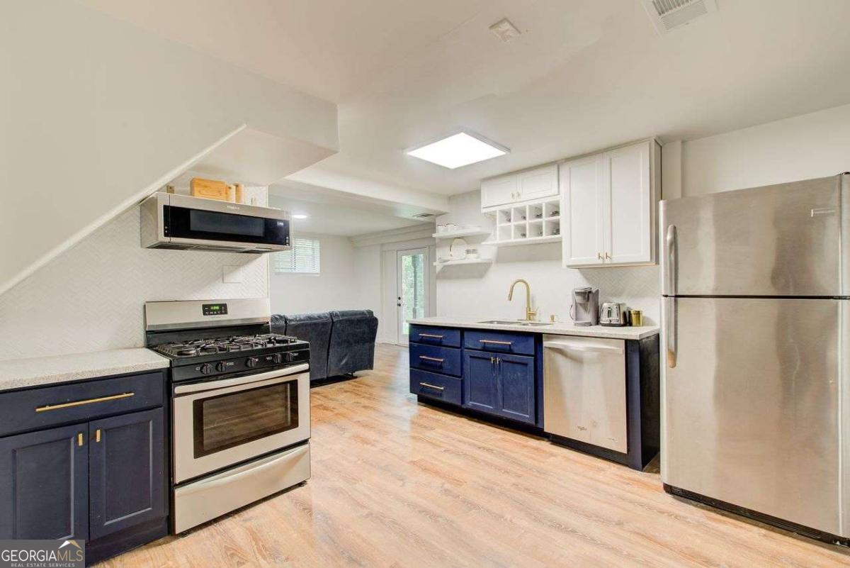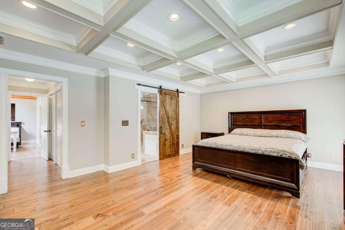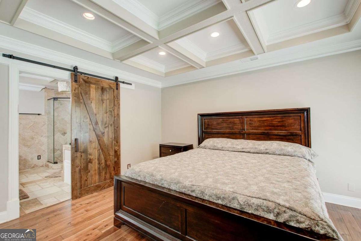 A Must See! Located in the Highly-Sought area of Smyrna, and just minutes away form the new Braves Stadium, this beautiful completely remodeled ranch home has an immaculate blend of modern luxury and timeless charm. Designed with meticulous attention to detail, features such as the exposed beam ceilings upon entry, paired with tongue and groove cedar ceilings throughout the dining room and kitchen gives this home a cozy, yet unique touch. In the family room, you will be greeted by an abundance of natural light streaming through expansive windows, illuminating the spacious interior. The remodeled eat- in kitchen boast new cabinets with granite countertops, travertine floors and a skylight over the dining area. The large primary bedroom has coffered ceilings and its own spa-like bathroom with a huge separate shower and jacuzzi soaker tub. Finished basement could be used as a rental apartment or in law suite. It has a kitchen, living room, bedroom and bathroom. This is a must see house, full of custom trim and charm. Wont last long!