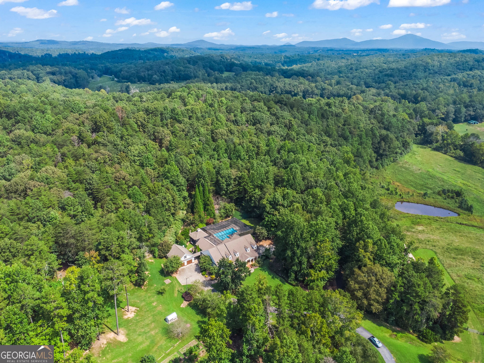 Discover your own private North Georgia retreat-an expansive 52+ acre gated and fully fenced estate. This remarkable property combines timeless craftsmanship with modern updates, creating a refined showcase of Southern charm and hospitality. The residence has been completely reimagined in recent years, rebuilt with today's preferred colors, a brand-new kitchen, and luxurious bathrooms. Inside, you'll find elegant design, balanced proportions, and meticulous attention to detail. Brand New Roof on House, Outdoor Kitchen and Garage. Outdoors, the estate offers endless amenities: a gated entry, stocked pond with trout and brim, fenced pastures for horses, wooded trails, chicken coop, rose gardens, fig trees, a pole barn, and a cow pond. Entertaining is effortless with a basketball half court, resort-style pool, putting green, waterfall, fenced dog park, and sweeping mountain views. Nature lovers will appreciate the abundance of birds, ducks, and deer throughout the grounds. Step onto the welcoming rocking chair front porch and into a vaulted foyer, framed by a formal dining room and a distinguished office. The home features seven bedrooms, including a primary suite with a fireplace, spa-like bath with soaking tub, walk-in shower, double vanities, heated floors, and custom his-and-hers closets. Two additional en-suite bedrooms and two with jack-n-jill bath on the main level. The gourmet kitchen is designed for both function and gathering, offering quartz countertops, commercial-grade appliances, custom cabinetry, and dual islands with double sinks. The light-filled great room opens to a full-length back deck, complete with screened seating, sun deck, and a covered outdoor kitchen. A fireside keeping room just off the kitchen adds warmth and convenience, with a half bath and direct pool access. The terrace level includes a media room, kitchenette/bar with wine refrigerator, fitness room with steam shower, flex space with a dog wash, and additional storage. Above the garage, a bonus room awaits-ideal for a playroom, classroom, or private office. Additional features include a whole-home generator, clean air and water purification systems, and a radon system-ensuring both comfort and peace of mind. Private dock and TROPHY BASS LAKE, designed by Aquatic Environmental Services. The lake is its own ecosystem including investment into Electofish research, 5 feeders, bluegill, crawfish, trout, strain bass, grass carp, as well as a pebble bottom and appropriate aquatic plant life. Perfectly situated, the estate offers easy access to top schools, medical centers, and is just 11 miles to Dahlonega, 5 miles to Gainesville, and only 5 miles to Lake Lanier. This rare property represents the pinnacle of country estate living-a once-in-a-lifetime opportunity to own a true North Georgia masterpiece. The driveway provides easement to a neighboring 36+ acre estate that is also on the market with another company, for those interested in a combined 88+ acre compound. Call today for an appointment to have a private showing!