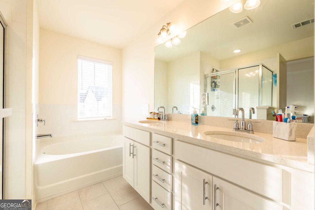 - Interior FeaturesDouble Vanity, Pulldown Attic Stairs, Roommate Plan, Tray Ceiling(s), Walk-In Closet(s)
