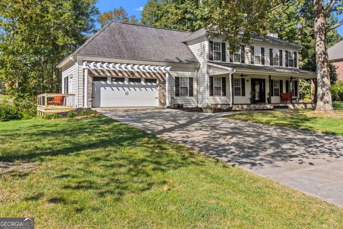WELCOME TO A BEAUTIFUL SOUGHT AFTER WESTGATE CORNER LOT HOME! VA Assumable Loan Available for Qualifying Buyers! Call for Details! Welcome! Enjoy your very own rocking chair front porch with great curb appeal. This is the perfect place to enjoy your morning coffee! This home hosts space for family gatherings and more! Gorgeous hardwood floors and tons of updates throughout! This home features a Double Master. One Master on the Main level and a Second Oversized Master upstairs. The outdoor setting includes new back deck as well as a new side deck off the garage. Inside you will also find a massive living room filled with natural light, views to the private back yard as well as views of the fountain and community lake area located just beyond the backyard. Master on main hosts a fireplace and French doors open onto a large deck overlooking your private backyard and perfect outdoor oasis! . The second Master is located on the second floor. Here, you will find large windows that fill the room with natural light, a sitting area, a renovated owner's bath complete with a large walk-in shower, dual vanities, his and hers closets, and tons of extras! The secondary bedrooms are generously-sized with large closets. New septic field lines installed with warranty transfers to new owners. This beautiful home is perfectly perched upon an oversized, corner lot and conveniently located minutes from I-75, shopping, restaurants, and more! This amazing home won't disappoint. Call today, don't let this one get away!