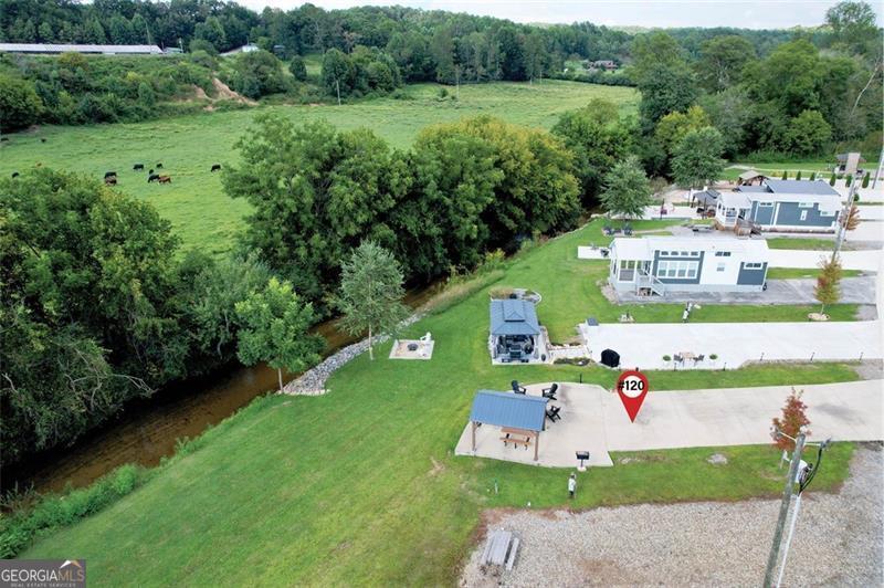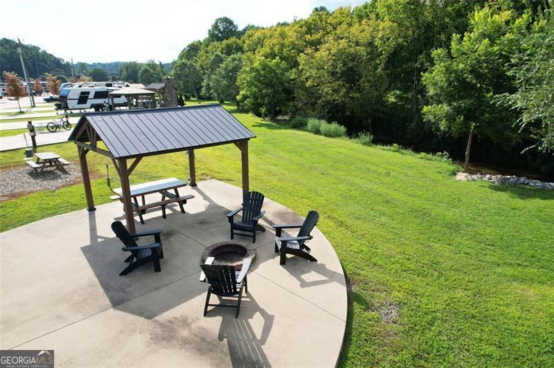 Creekside retreat - settle into the sounds of Hemptown Creek with this premium RV lot designed for relaxation and entertaining. The property features a long concrete pad to easily fit larger RVs, along with a pavilion already wired with power, making it a great spot for outdoor dining, game days, or evenings under the lights. A custom in-ground fire pit surrounded by high-quality Adirondack chairs invites you to unwind by the flames while listening to the creek just steps away. The pavilion with top-tier picnic table creates another comfortable gathering space, which is perfect for morning coffee or sunset cocktails. Nature lovers will appreciate that Hemptown Creek is stocked for trout fishing (license required), and the pastoral view across the creek adds to the peaceful setting. Make this spot your home base, or a desirable investment property - the choice is yours. Short and long term rentals allowed. As part of the gated Waterside at Blue Ridge community, you'll also enjoy a wide variety of amenities including a pool, clubhouse, playground, pickleball, dog park, disc golf, and more. Plus, you're just minutes from the charming downtown Blue Ridge, Lake Blue Ridge, Toccoa River, orchards, wineries, waterfalls, and hiking trails. This lot isn't just a place to park your RV, it's a creekside retreat where mountain living meets comfort and style. Be a part of this tight-knit community and enjoy multiple events throughout the year.
