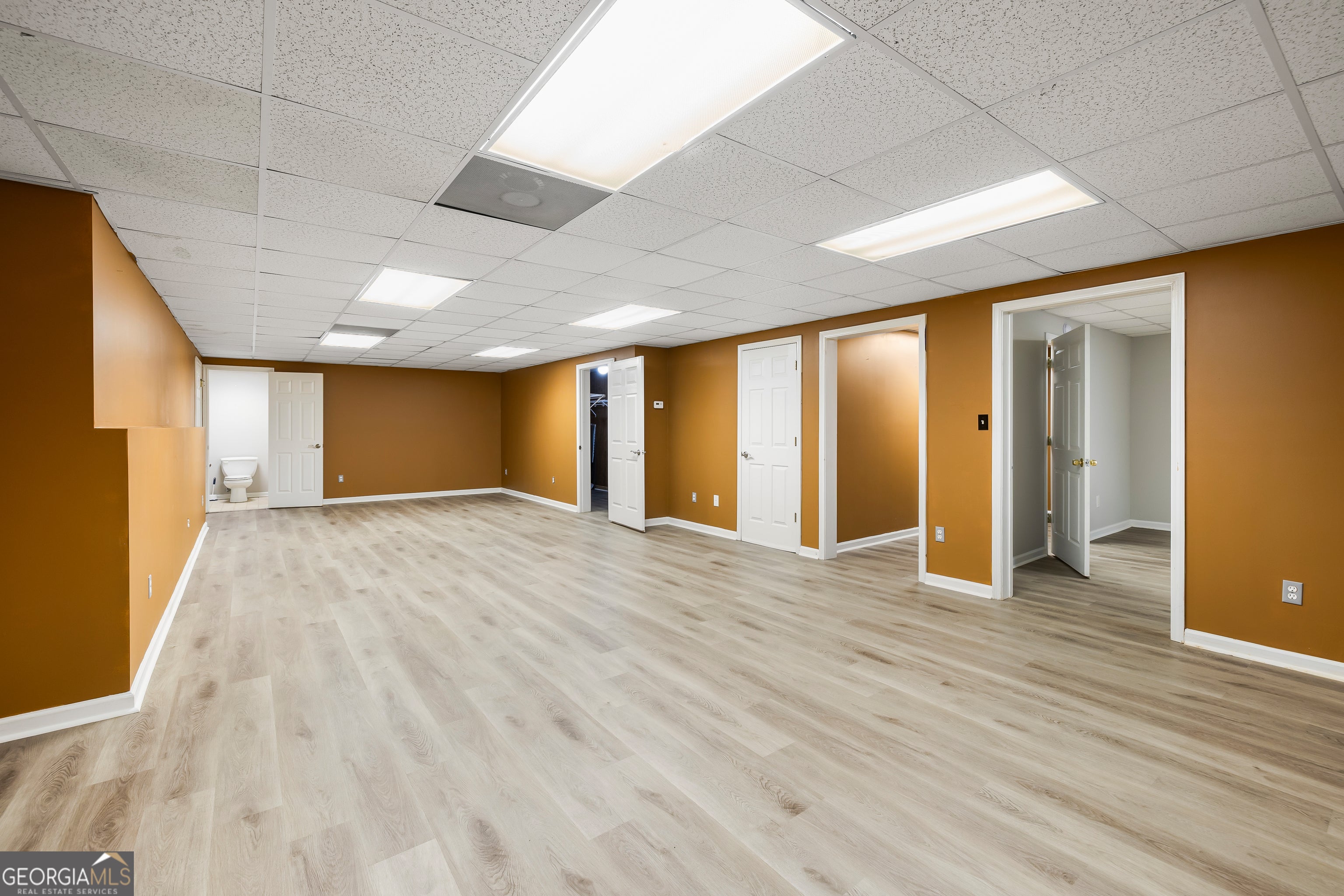 Move-in ready, primary bedroom on main, and a full, finished basement, with storage options galore, and flex-space on all 3 levels?! Sign me up, please! Conveniently located right at the front entrance of the peaceful, quiet, Lake Dow Estates Neighborhood, 239 Darwish Dr. is not short on privacy or space from the tree-lined, 1.5+ acre corner lot. As you step into the front entrance of this home, to the right is the formal dining area and half-bath, which effortlessly flows into the eat-in kitchen and laundry/mudroom, leading out to the 2-car garage. To the left of the front entrance is a flex space, which can be used as a home office, formal living or sitting room, playroom--whichever suits your needs. The french doors to this space open up to the main living area, complete with a gas-starter fireplace, and replete with natural light, credited to 2 sets of french doors leading out to the expansive backyard deck. Featuring a tray ceiling, 2 closets (one walk-in), en-suite bath with separate Jacuzzi tub and tiled shower, granite double vanity, and plenty of natural light, the Owner's Suite is conveniently located on the main floor, making this the perfect forever-home. The main floor living space also gives access to the full walk-out basement, availing a myriad of options for storage, work, and play. Here, you'll find a full bathroom, 2 storage closets, an expansive living space with so many possibilities for entertaining, and two additional rooms--one built out as custom closet-space, and the other adjacent to a cedar-lined walk-in closet. Upstairs, you'll find another flex space (Theater room, maybe?!), 3 more generously-sized bedrooms and 2 full bathrooms, one en-suite, which gives this home options for 2 potential owner's suites, making multi-generational living a breeze! With popular retailers such as Publix, Kroger, Aldi, Ace Hardware and Tractor Supply, Starbucks, Walgreens, a variety of unique restaurants & popular fast food eateries, Peachtree Immediate Care, and the USPS all located within a 5 mile radius and 4-10 minute drive, a peaceful & serene country living experience, while enjoying the conveniences of the city, with room for all your "stuff" is guaranteed with this home!