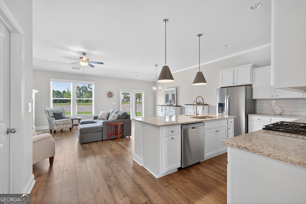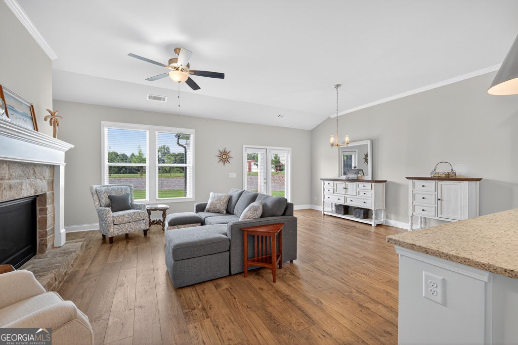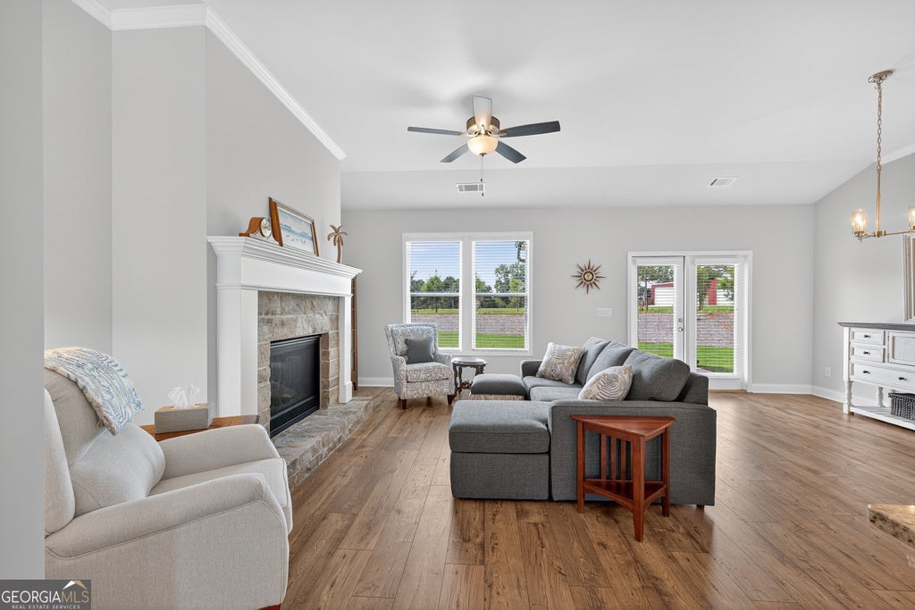 Welcome to 486 Glenside Drive in Northminster Farms, Jefferson's premier 55+ active adult community offering low-maintenance living and resort-style amenities. This beautifully designed 3 bedroom, 2 bath ranch (built in 2024) features 1,827 sq ft of open, single level living with quality finishes, a stone fireplace, and a functional flow perfect for entertaining or relaxing. Residents enjoy an unmatched lifestyle with a farmhouse-inspired clubhouse, outdoor pool, pickleball courts, walking trails, and over 2 acres of green space, with lawn care handled by the HOA. Conveniently located just minutes from I-85, charming downtown Jefferson, shopping, healthcare, and parks, this home provides the perfect blend of comfort, community, and convenience in a vibrant setting designed for active adults.