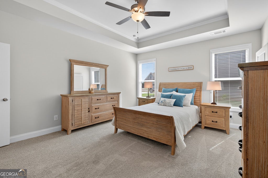 - Interior FeaturesTray Ceiling(s), High Ceilings, Double Vanity, Pulldown Attic Stairs, Separate Shower, Tile Bath, Walk-In Closet(s), Master On Main Level, Split Foyer