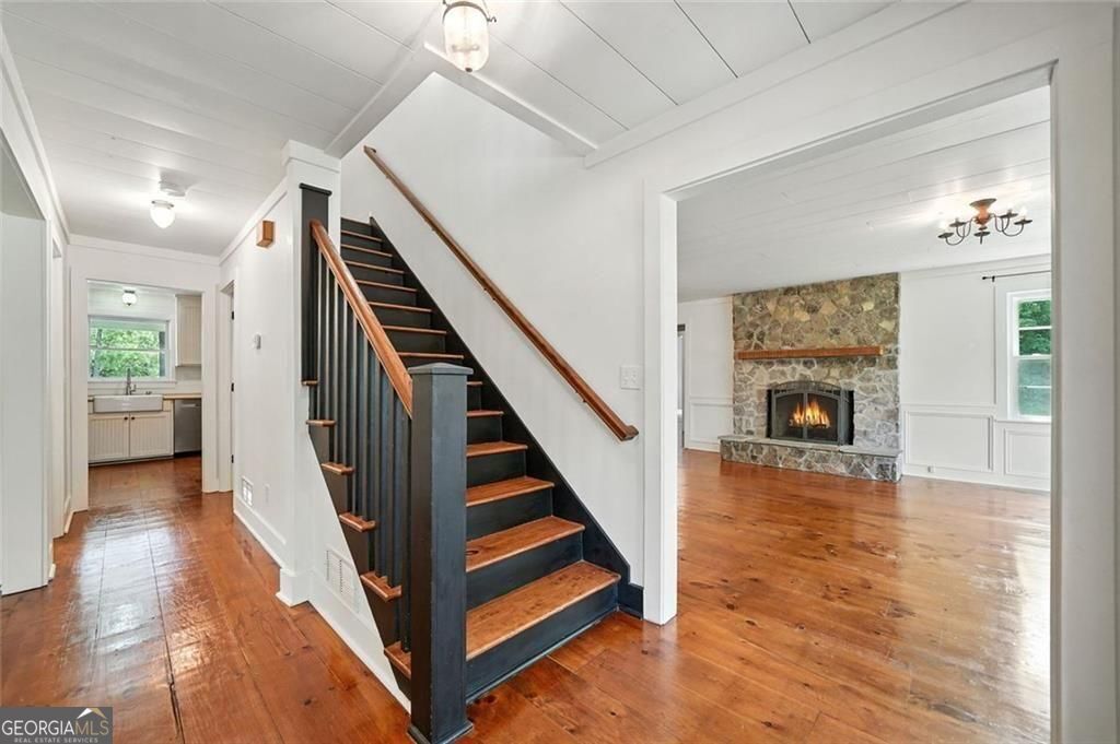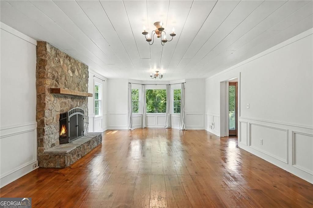 Listed below appraisal value! Set on five cleared acres in Canton, this estate pairs a saltwater pool and spa with stables, a guest house, and room to live wide open. Recent improvements include a replaced roof, new windows, fresh interior and exterior paint, a new front door, and nearly two acres of overgrowth cleared to expand the usable land. The main level centers around sun-filled living spaces with wide-plank wood floors and two stone fireplaces. The kitchen flows easily into the breakfast nook and dining room, creating an open feel for everyday living and hosting. A private in-law suite sits on this level with a renovated bath, offering updated comfort for extended stays, along with additional full and half baths for convenience. Upstairs, the primary suite serves as a true retreat with a walk-in closet and spa-style bath. Additional bedrooms provide flexibility for guests, hobbies, or a dedicated home office. A bedroom addition and expanded two-car garage enhance both function and storage. The finished basement extends the home with a full bath, fireplace-lit living area, wet bar, office, and flexible bonus space that works well for recreation or long-term guests. Outdoors, the property transforms into a private resort. The saltwater pool with spa and slide anchors the outdoor living areas, while a renovated barn wing sits just steps away. Above the pool house, a full guest suite includes a bedroom, bath, kitchen, and dining area. A back porch with a new roof overlooks the fenced acreage, creating a covered patio space to recharge and entertain with ease.