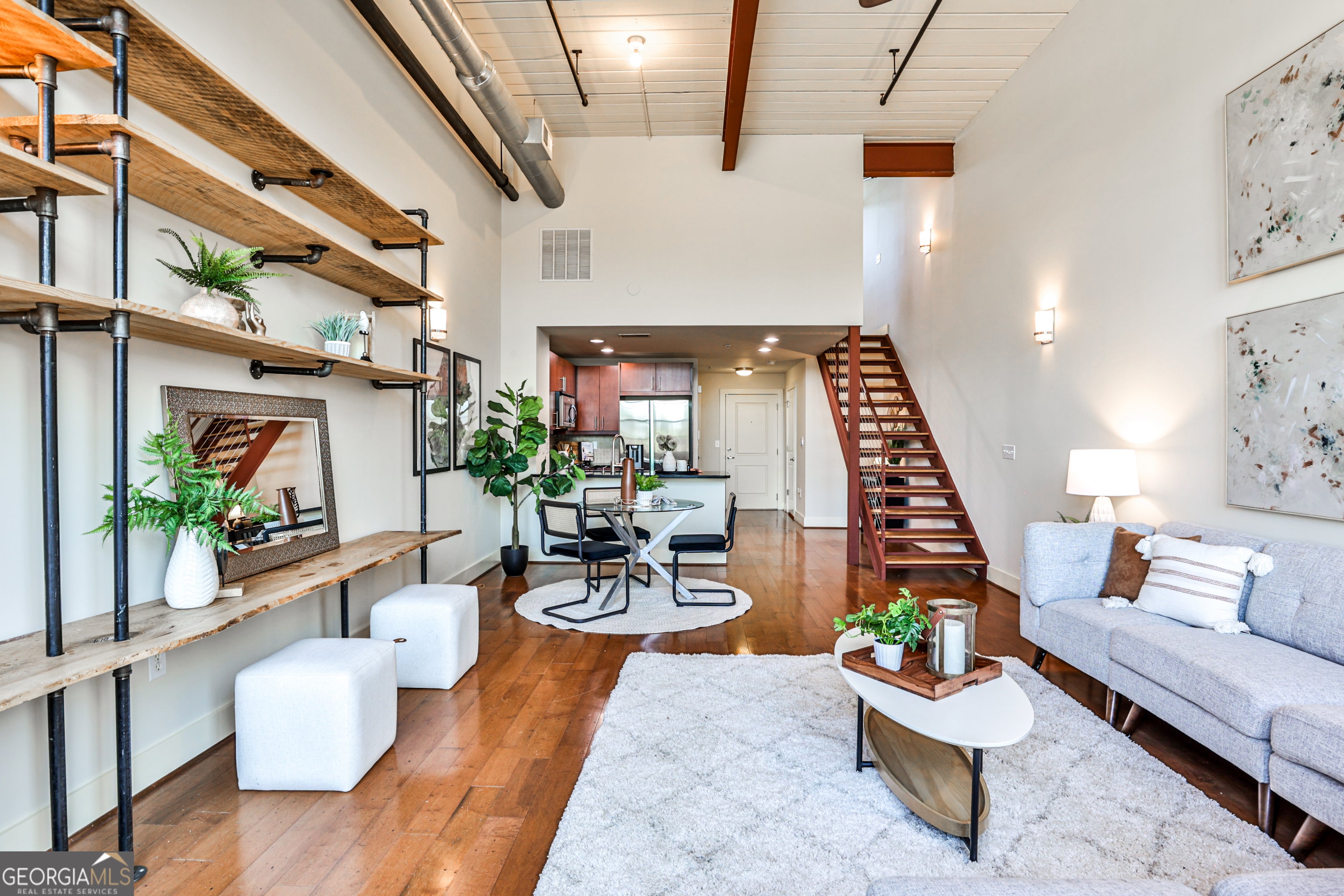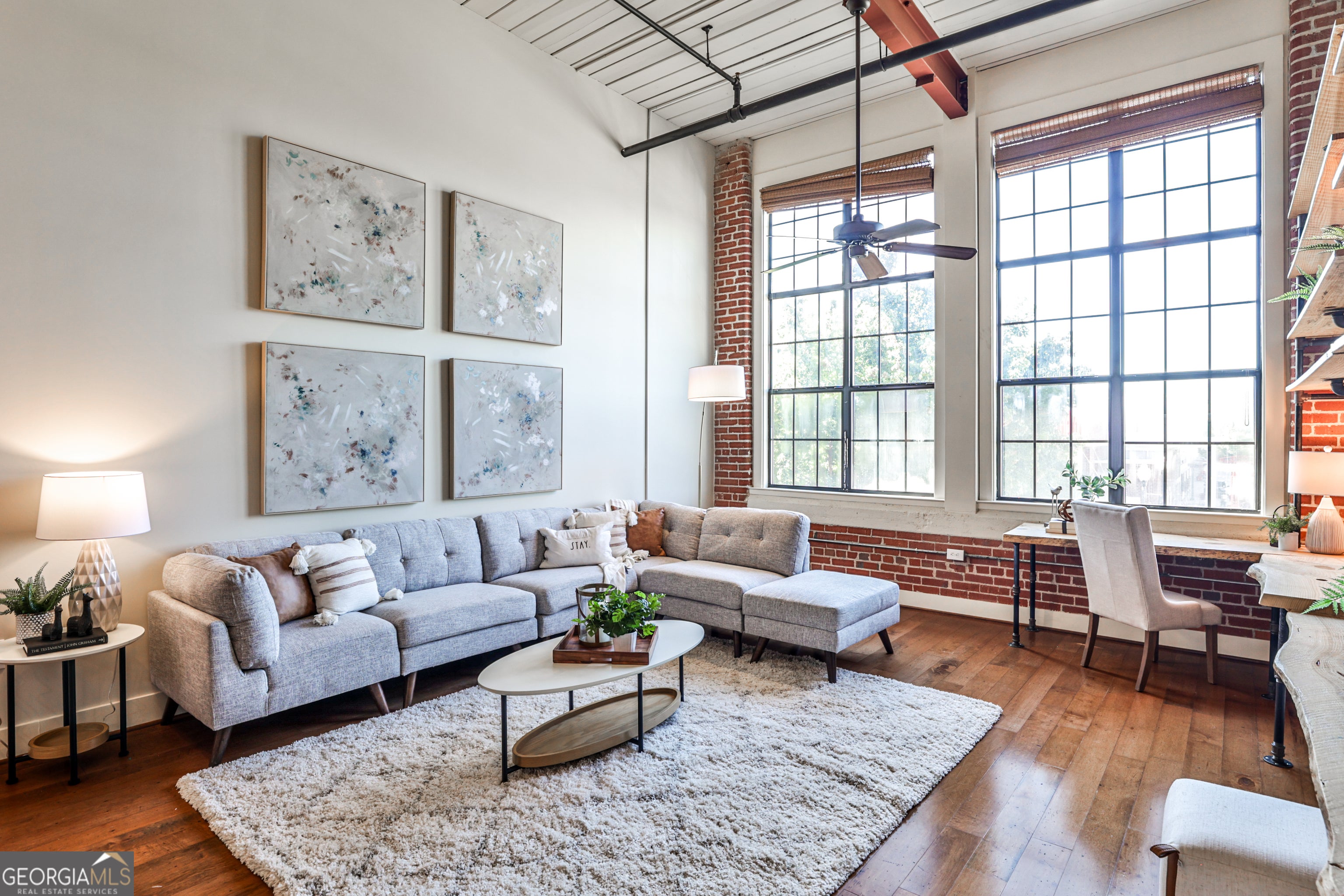 Welcome to Unit #206 at the historic Shoe Factory Lofts, where modern industrial design meets unbeatable in-town convenience. This beautifully maintained loft offers soaring ceilings, exposed brick, and oversized 15+ ft industrial-style windows that flood the space with abundant natural light. The open-concept layout seamlessly connects the living, dining, and kitchen areas-perfect for entertaining or everyday living. The sleek kitchen is outfitted with granite countertops, stainless steel appliances, and warm wood cabinetry. A nearby laundry room and main-level half bath add to the home's everyday functionality and ease. A built-in workspace with custom shelving in the living area provides the perfect spot to work from home, tucked away yet integrated into the home's thoughtful design. The lofted primary bedroom offers privacy, transom windows, vaulted ceilings, and a walk-in closet, along with a private en-suite bath featuring a granite vanity and tiled shower/tub combo. Set in a converted early 20th-century shoe factory, the building retains its historic character with original architectural details, including exposed ductwork, beams, and even preserved meter switches in the lobby-a unique nod to its industrial past. Located in the heart of Edgewood, this home offers unmatched walkability. Enjoy quick access to Edgewood Retail District, Little Five Points, Krog Street Market, the Beltline, and more. Whether you're grabbing coffee, dining out, grocery shopping, or running errands, everything you need is right outside your door. No car needed with MARTA's Edgewood/Candler Park Station just seconds away and easy access to I-20 and I-75/85, getting around Atlanta is effortless. Don't miss your chance to own a piece of Atlanta history with all the modern comforts - schedule your private showing today!